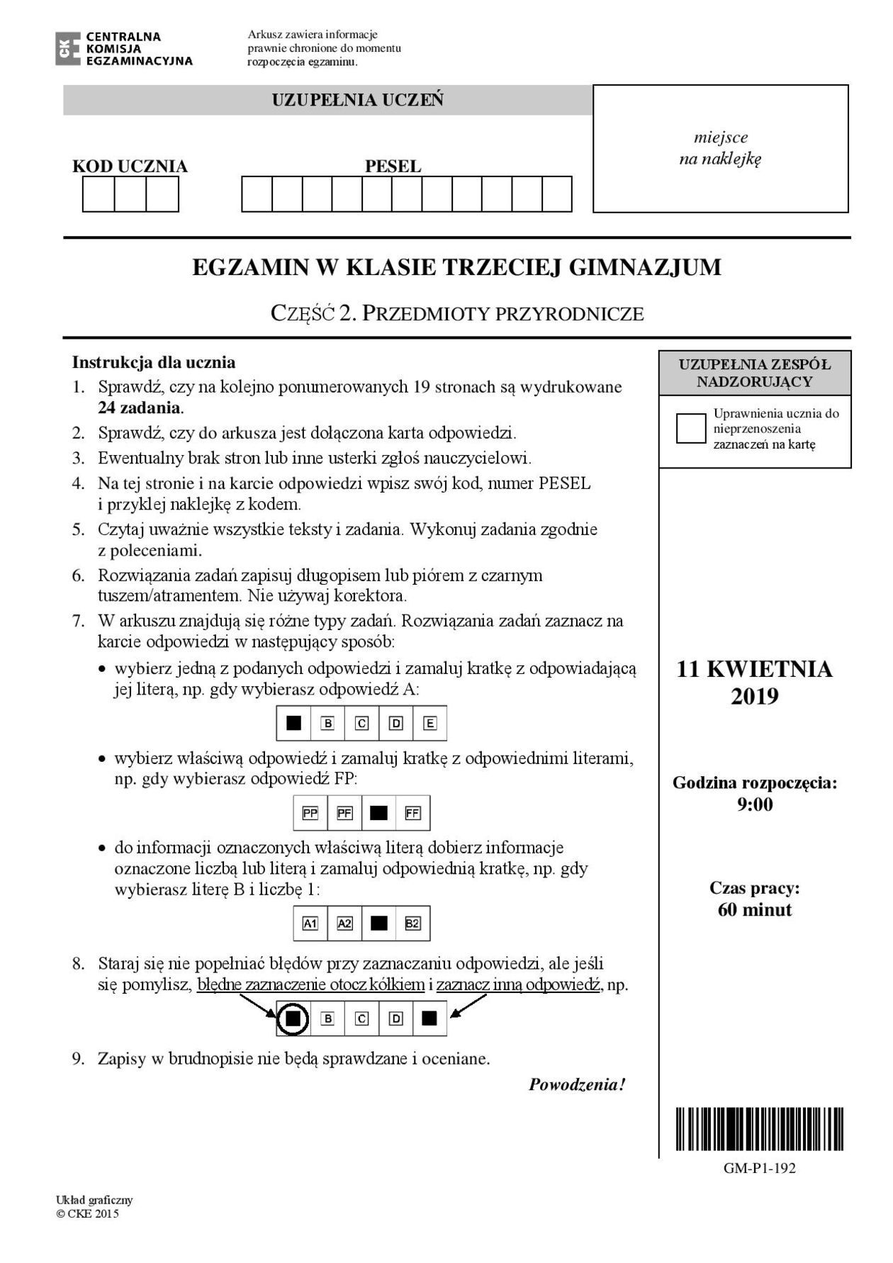 Egzamin gimnazjalny 2019. Przedmioty przyrodnicze. Arkusze CKE
