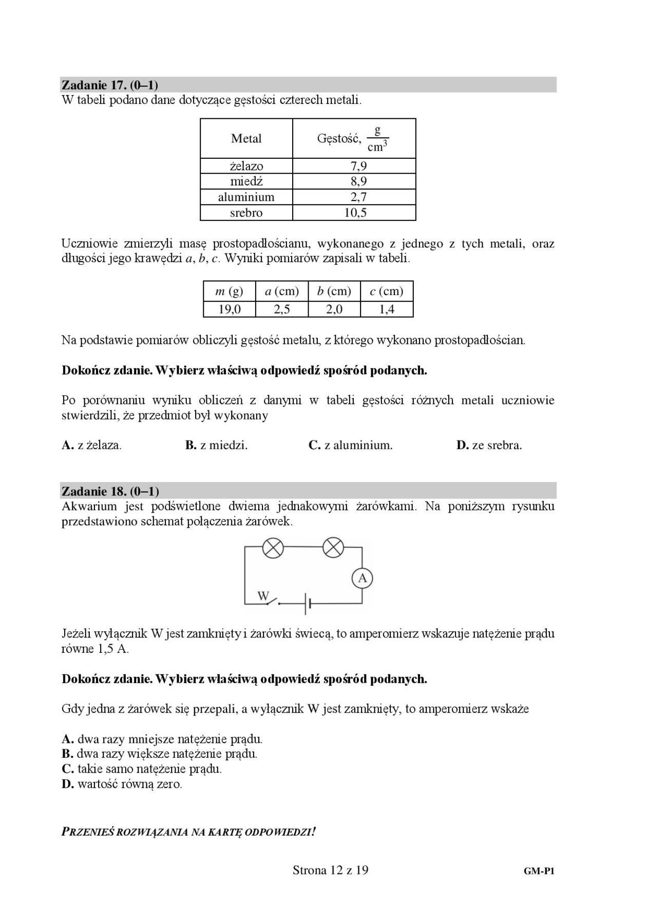 Egzamin gimnazjalny 2019. Przedmioty przyrodnicze. Arkusze C...