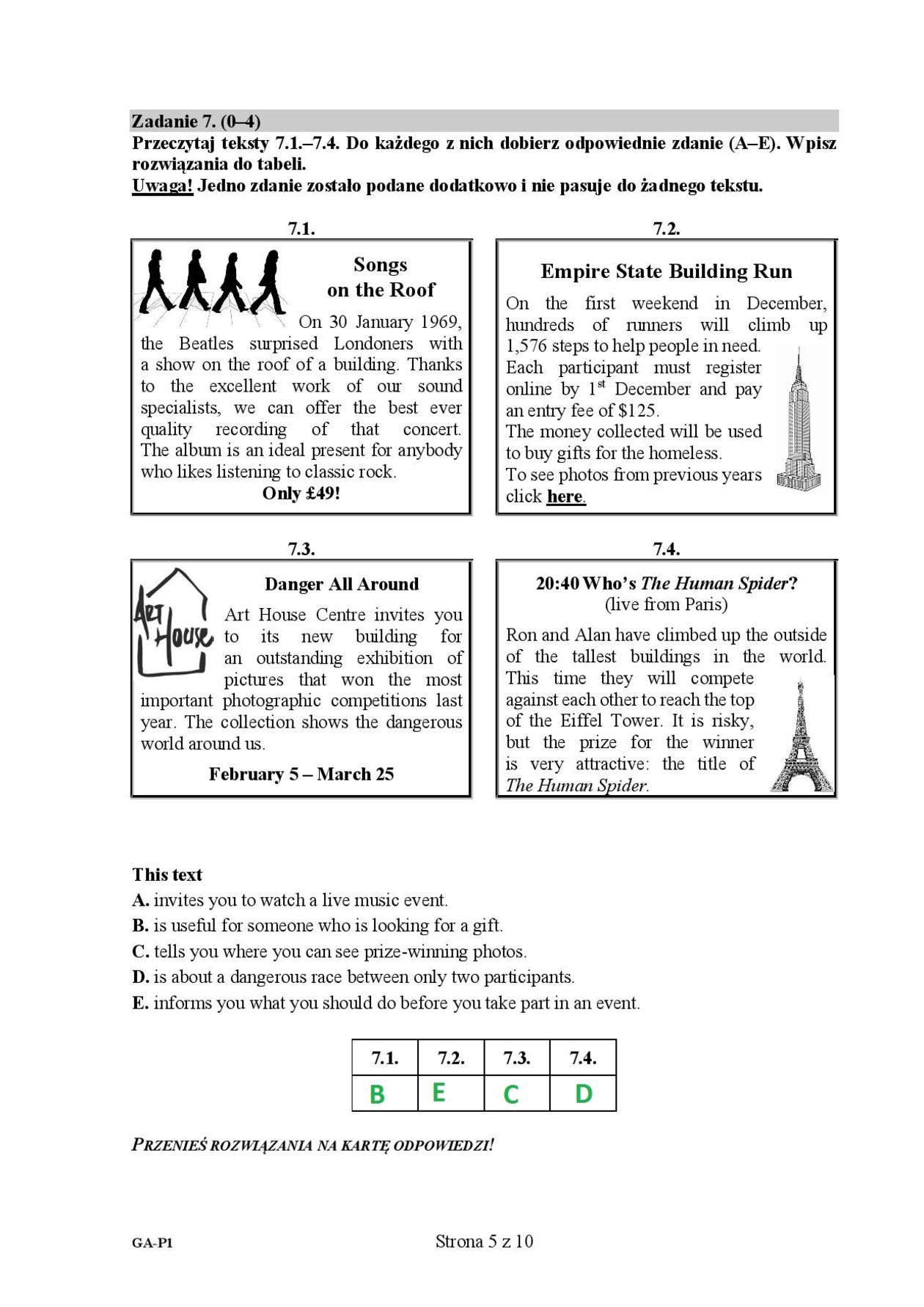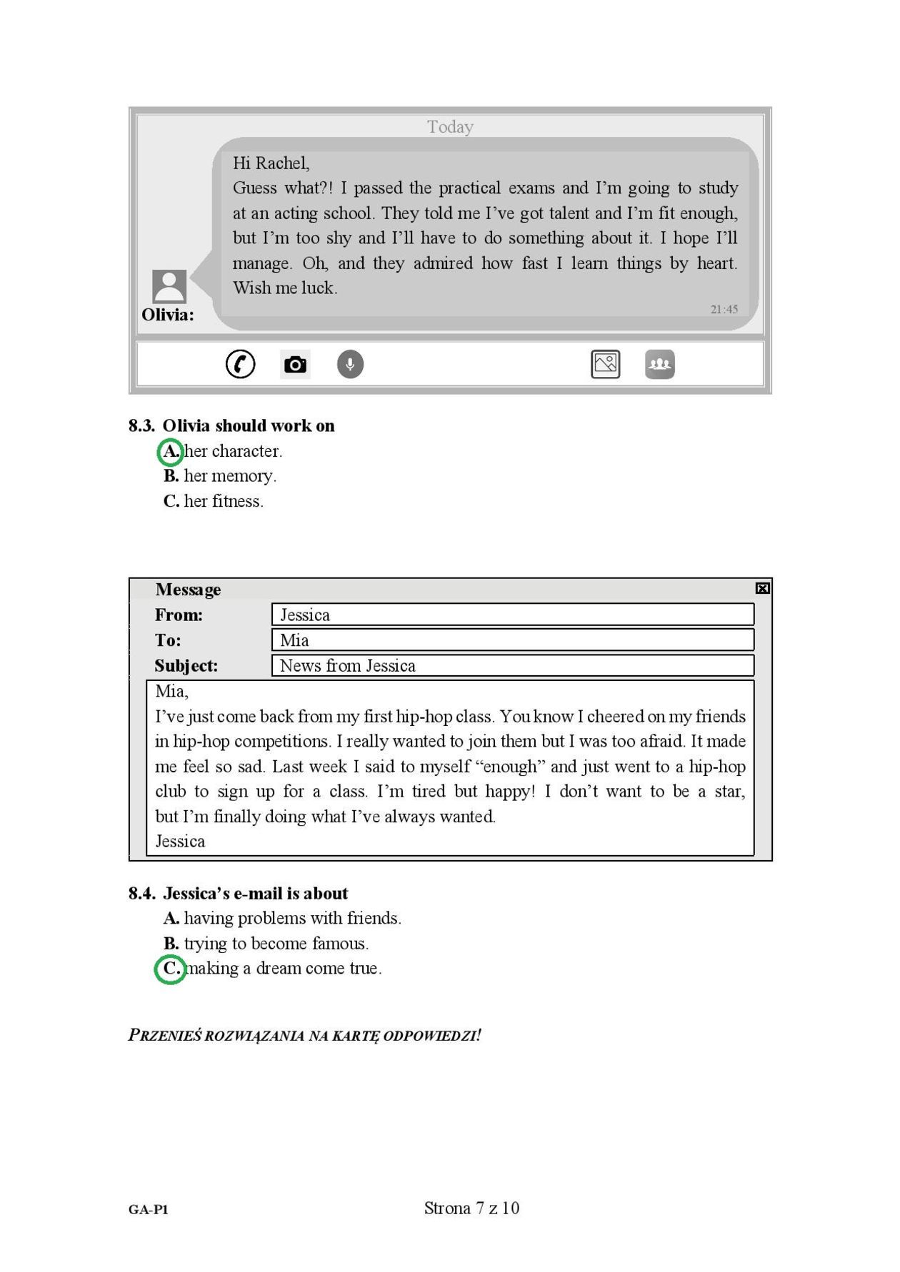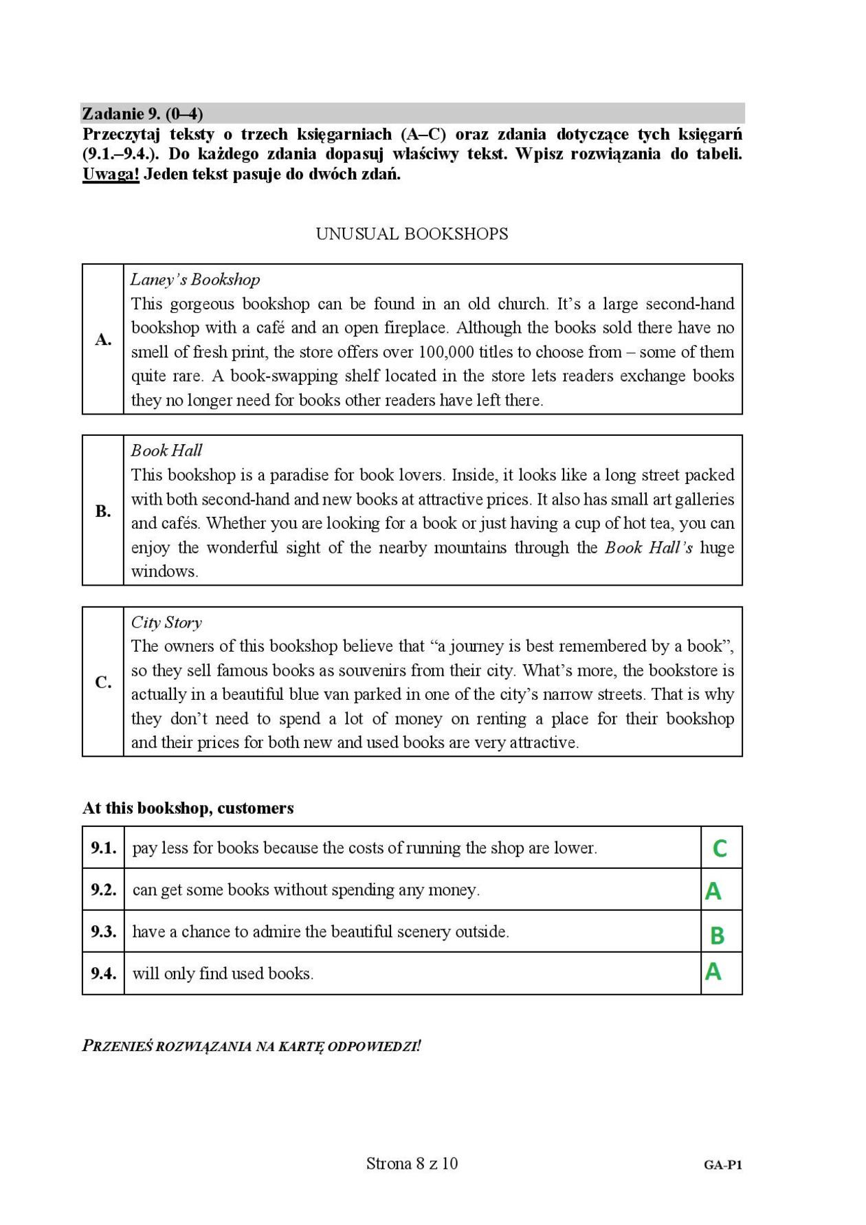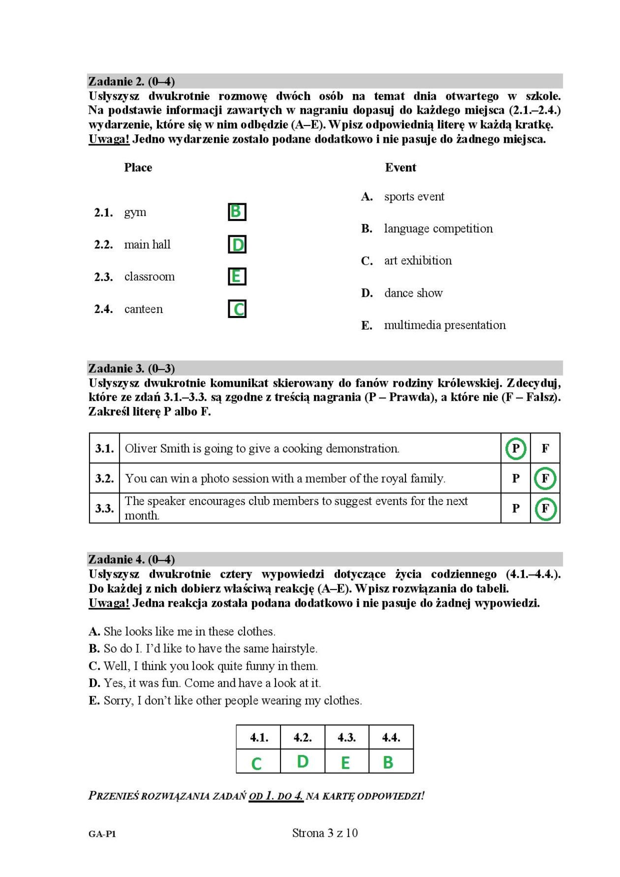 Egzamin gimnazjalny 2019. Język angielski. Odpowiedzi poziom podstawowy