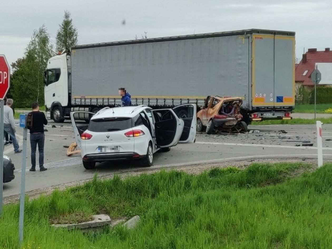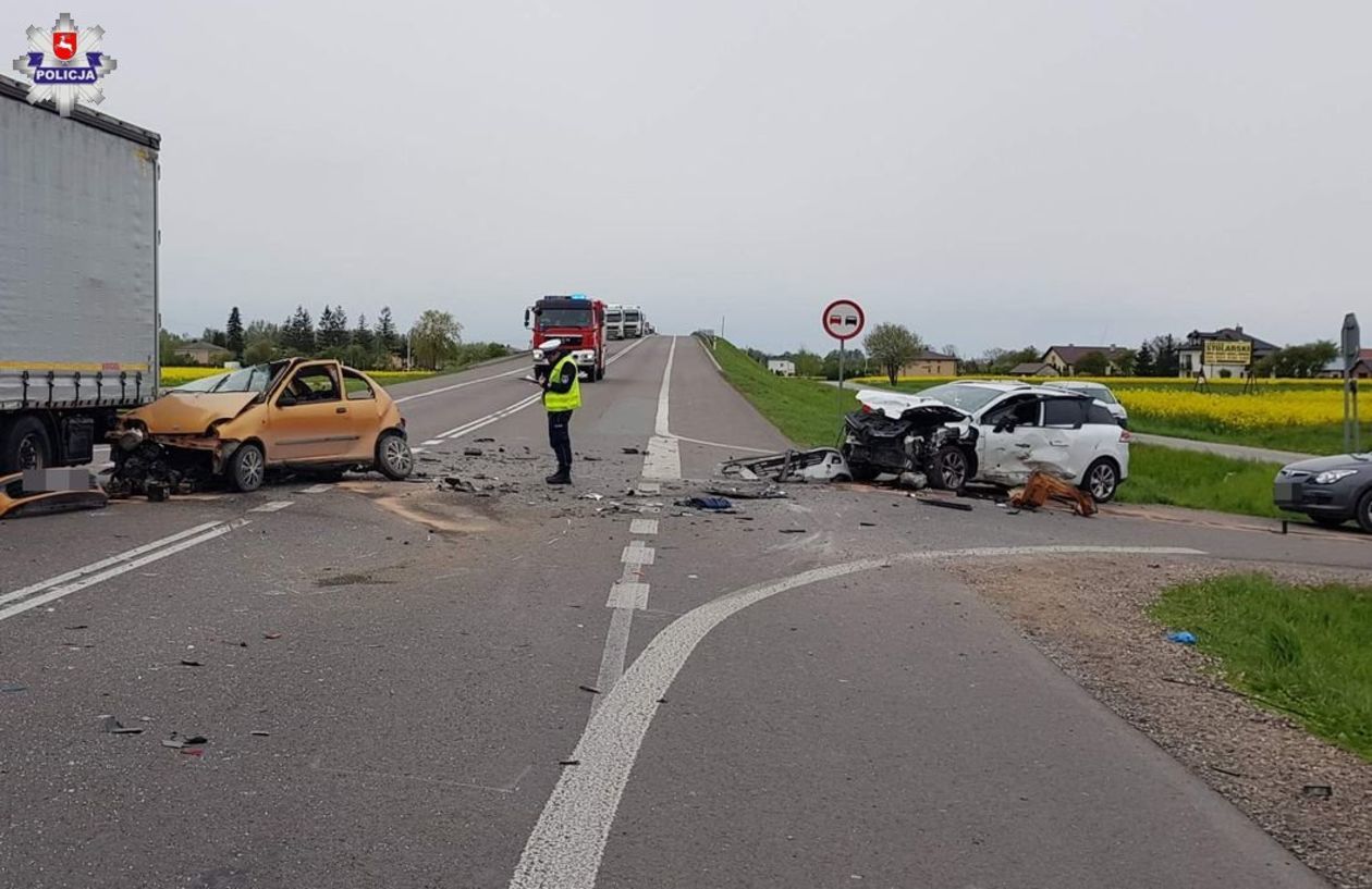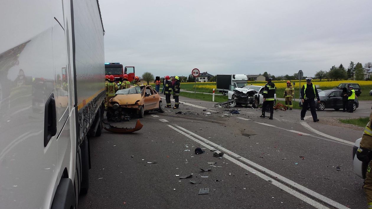 Wypadek w Niedrzwicy Dużej. Zderzenie ciężarówki i trzech aut