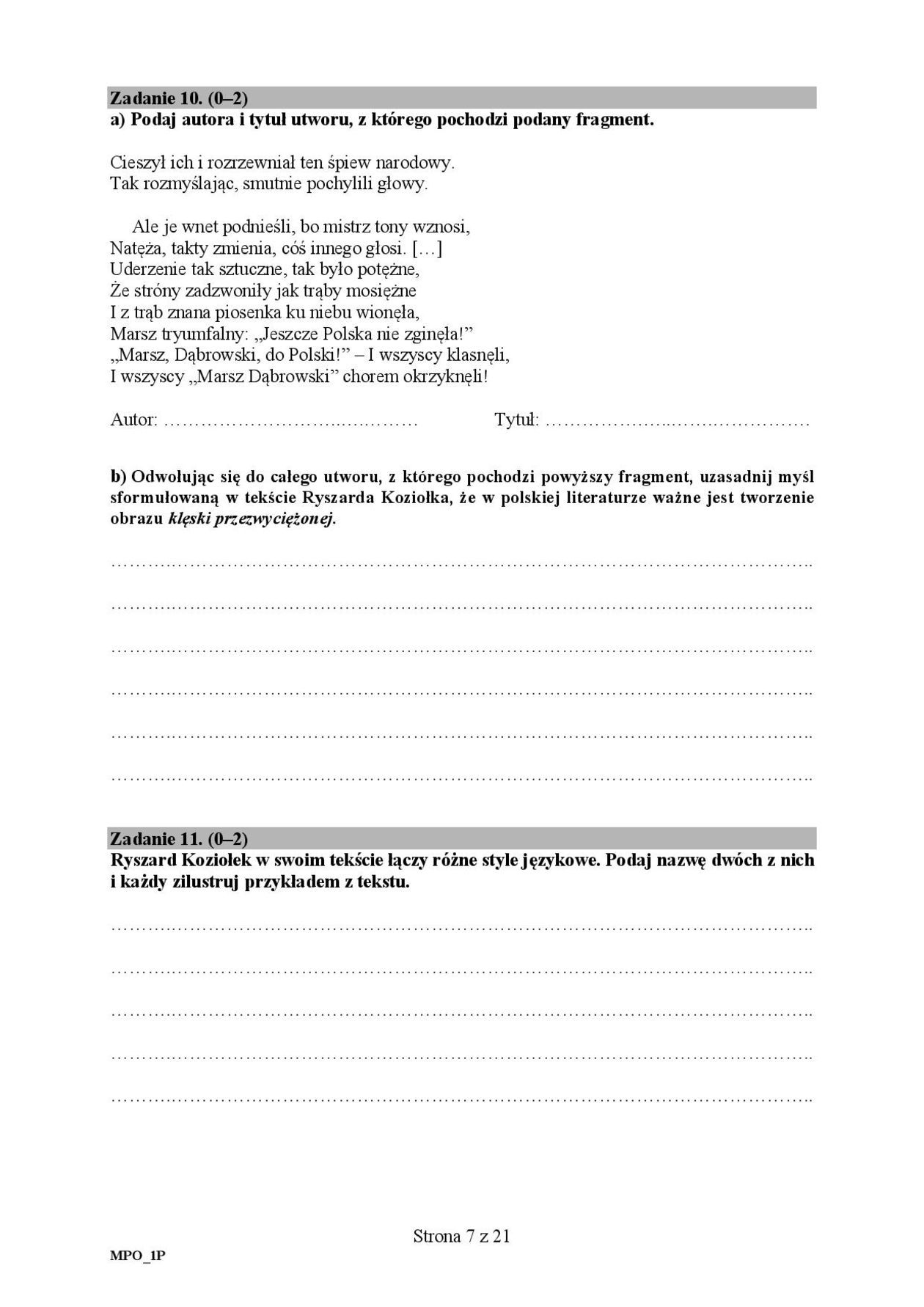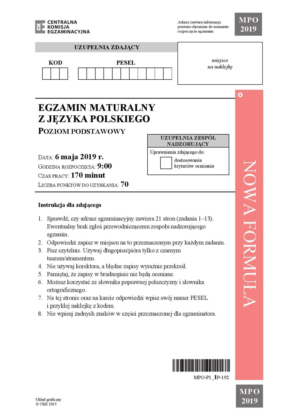 Matura 2019 POLSKI (podstawowy) arkusze CKE