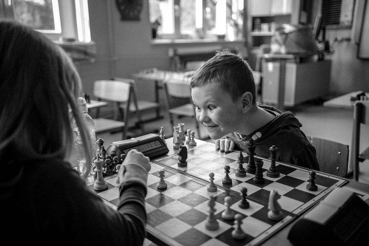 Gdańsk. Młodzi adepci gry w szachy podczas szkolnego turnieju.
