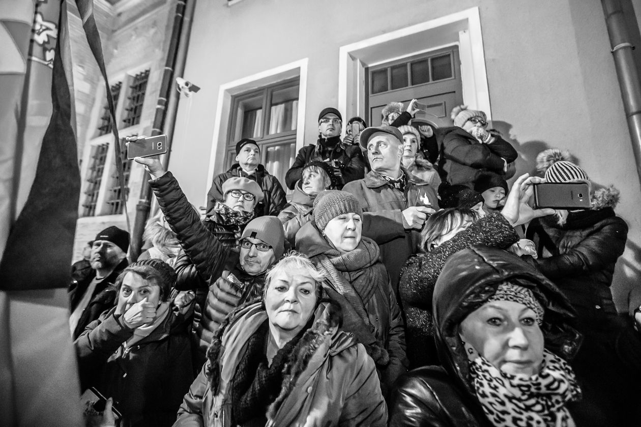 Gdańsk. 13 stycznia 2019 roku podczas finału Wielkiej Orkiestry Świątecznej Pomocy został zamordowany prezydent Gdańska Paweł Adamowicz. Przez kilka kolejnych dni Polaków ogarnęły ogromne przygnębienie, zagubienie i żałoba. Na zdjęciu: radni Gdańska po śmierci prezydenta.