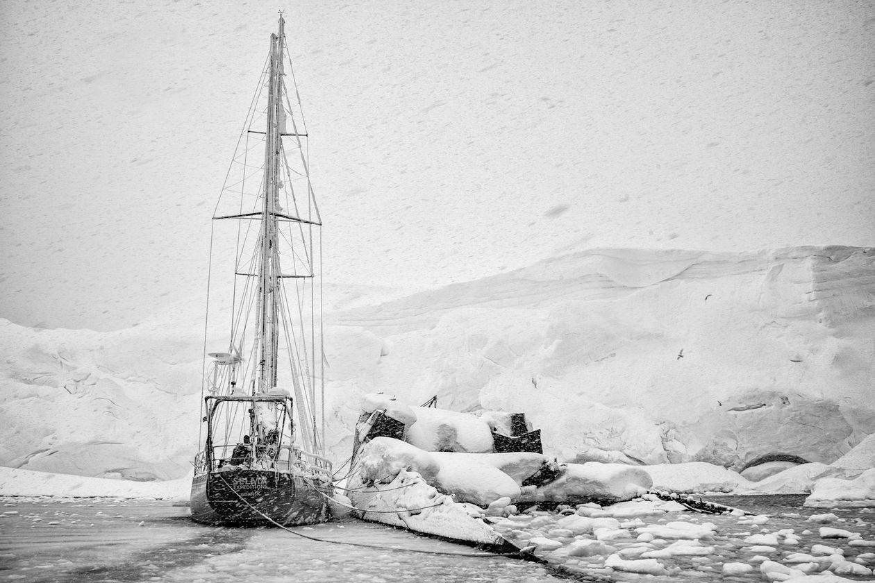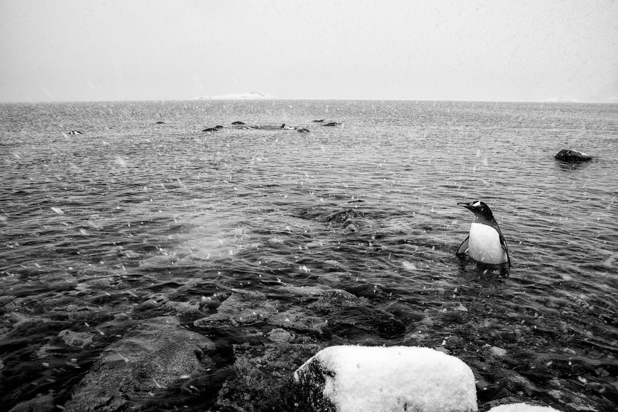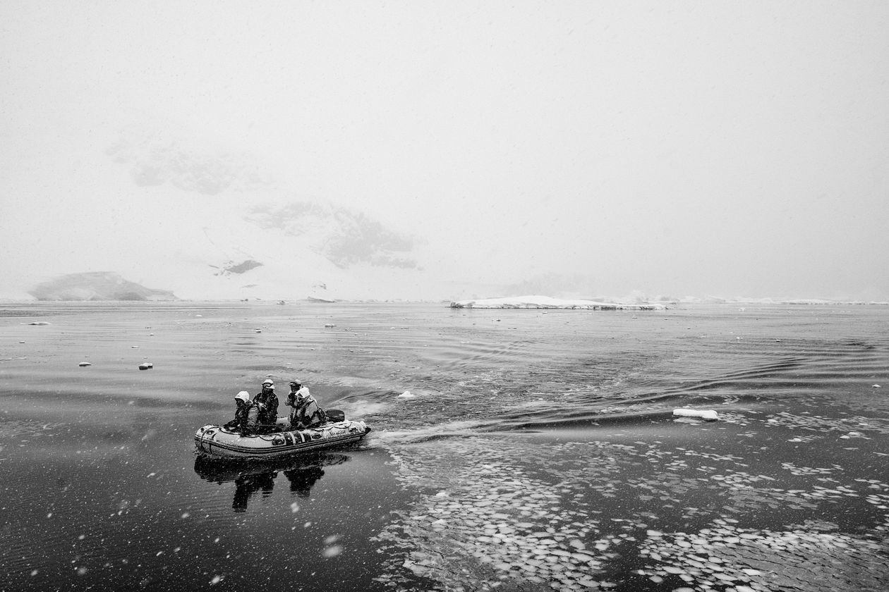 Antarktyda. Reportaż powstał podczas antarktycznego rejsu jesienią 2018 roku, autor był członkiem załogi S/Y Selma Expeditions – jachtu, który od kilkunastu lat eksploruje wody Antarktydy. Na zdjęciach kolejno: 1) Pierwsze góry lodowe po sześciu sztormowych dniach w Cieśninie Drake’a. 2) Wczesną wiosną pingwiny są jeszcze przed okresem lęgowym. 3) Muzeum Acatushún – muzeum laboratorium specjalizujące się w badaniach biologii ssaków morskich. 4) Cumujemy burtą do wraku norweskiego statku-przetwórni Governoren, jednej z niechlubnych pamiątek po erze masowych polowań na wieloryby. Governoren spłonął podczas swej ostatniej misji w 1915 roku, gdy na pokładzie doszło do pożaru, w wyniku którego zapaliły się tysiące litrów oleju wytworzonego z wymordowanych wielorybów. 5) Jedna z porannych wacht, schodzimy z kotwicy, by dalej eksplorować kanały wzdłuż Półwyspu Antarktycznego. 6) Zodiac – nieodłączny towarzysz przybrzeżnych eksploracji. 7) Czwarta nad ranem. Dryfowaliśmy z falą po nieudanej próbie dotarcia do ukraińskiej bazy antarktycznej. Kapitan nad mapą i sonarem pełni wachtę 24 h na dobę. 8) Żeglując po wodach Antarktyki, mijaliśmy góry lodowe różnej wielkości i kształtu. Ta była ogromnym regularnym blokiem. Nawet do 80 proc. góry może znajdować się pod wodą.