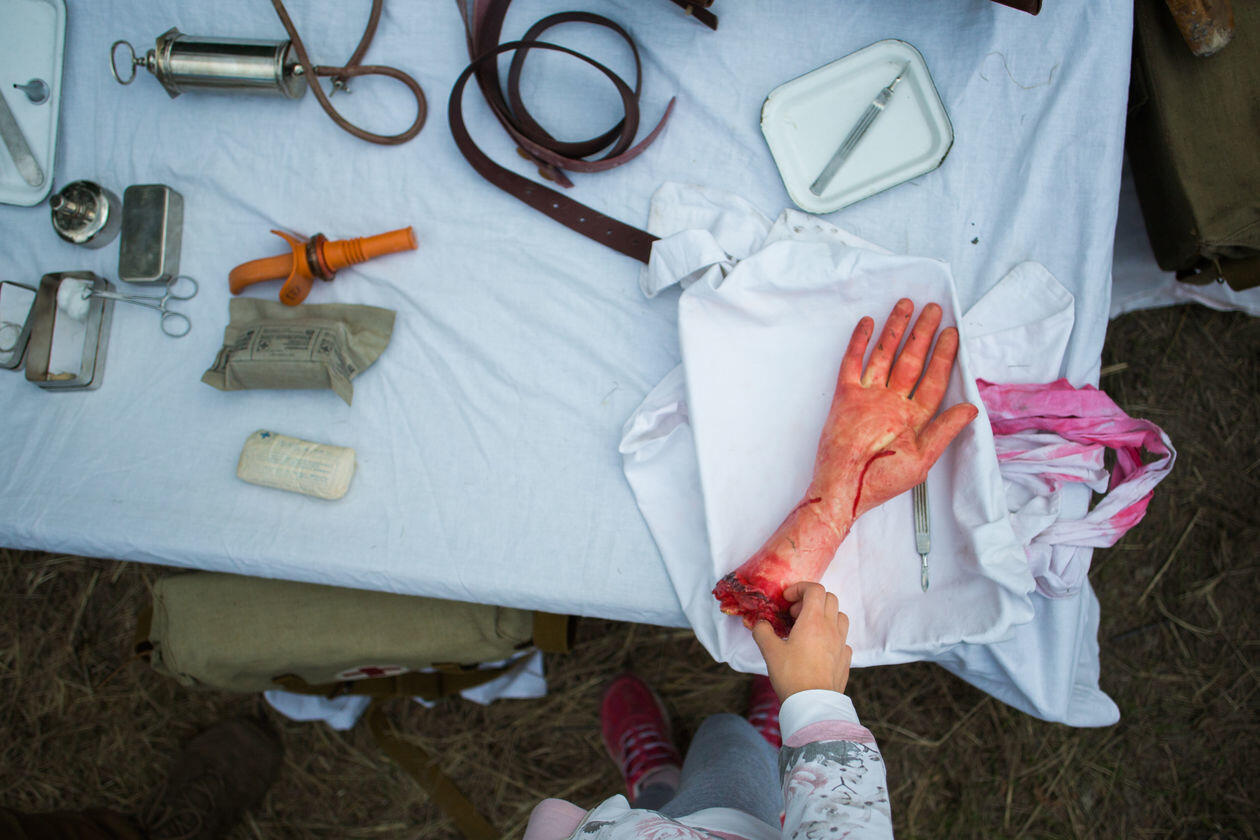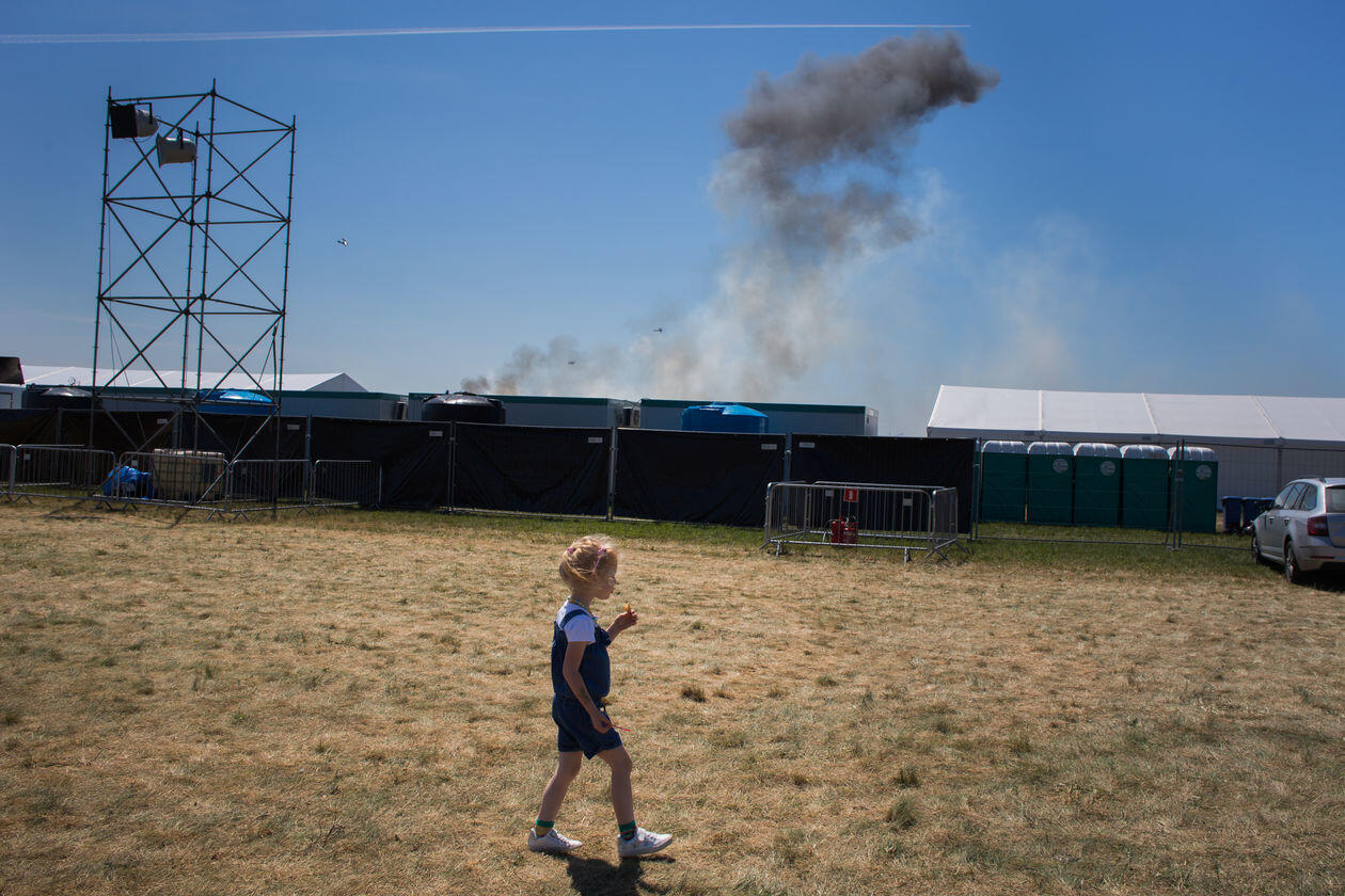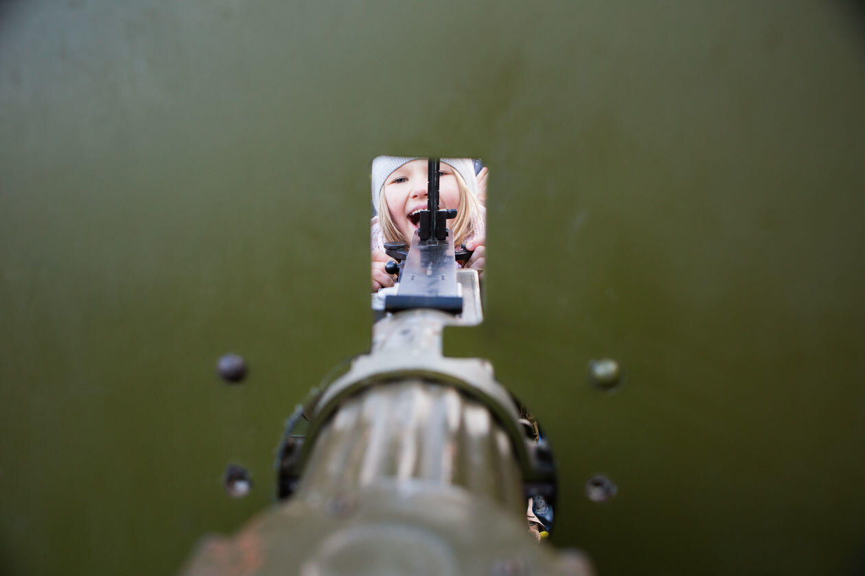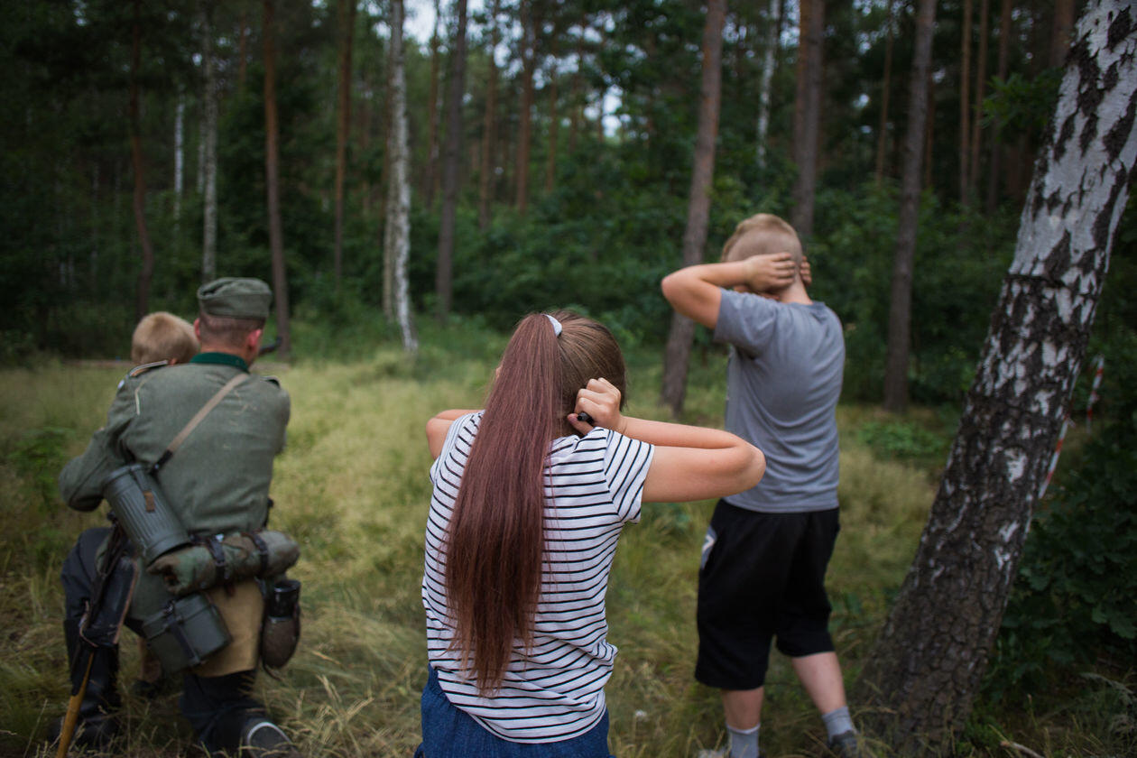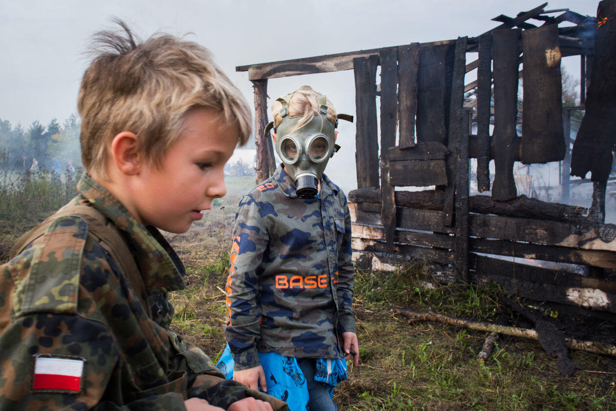 Wśród Polaków rośnie popularność masowych imprez o charakterze militarnym. Zazwyczaj przybierają formę lokalnych, weekendowych pikników, chętnie odwiedzanych przez całe rodziny. Jednym z głównych odbiorców są dzieci, zaś wydarzenia stają się narzędziem kształtowania ich historycznej świadomości i narodowej tożsamości. Na zdjęciach kolejno: 1) Warszawa. Dziewczynka sprawdza działanie historycznego sprzętu wojskowego podczas imprezy „Dotknij Niepodległości” w Muzeum Wojska Polskiego. 2) Łabiszyn. Rekonstruktor Łabiszyńskich Spotkań z Historią prezentuje możliwości broni po inscenizacji polsko-niemieckiej bitwy z września 1939 roku. 3) Poznań. Piknik towarzyszący pokazom lotniczym Poznań Air Show i odbywającej się w tle rekonstrukcji bitwy z udziałem historycznych samolotów. 4) Borne Sulinowo. Chłopiec obserwuje teren poligonu dla czołgów w czasie Zlotu Pojazdów Militarnych „Gąsienice i Podkowy”. 5) Trzebinia. Fantom urwanej ręki na stanowisku prowizorycznego szpitala polowego z czasów drugiej wojny na Zlocie Miłośników Militariów „Enigma”. 6) Porąbka. Przygotowania do inscenizacji zwycięskich walk dywizji gen. Maczka w Normandii w ramach imprezy Historie Frontowe. 7) Łomianki. Dzieci na tle spalonej scenografii „Bitwy pod Łomiankami 1939” po inscenizowanym ataku niemieckich jednostek na mazowiecką wieś. 8) Kalisz. Dziewczynka na wojskowej ciężarówce podczas Pikniku Militarnego.