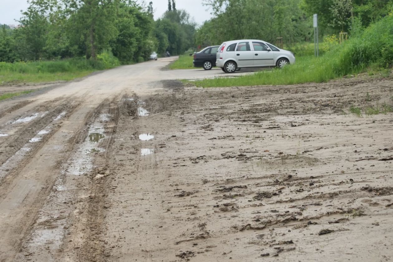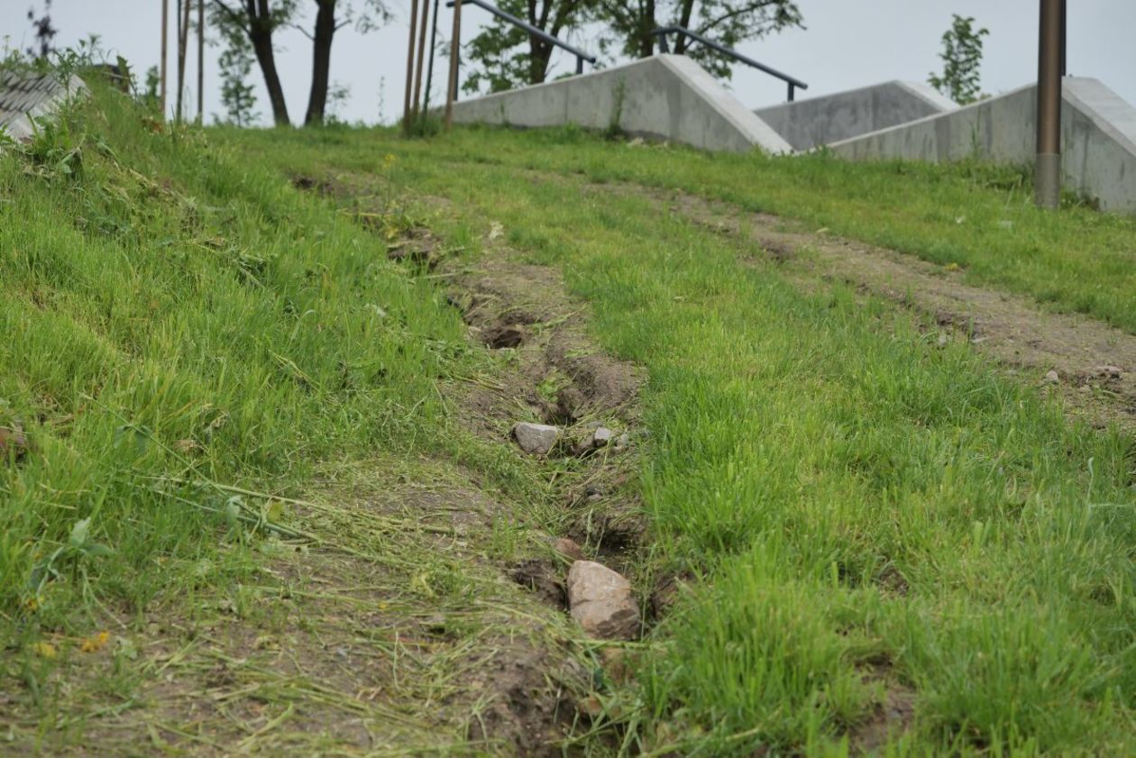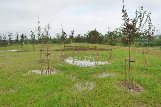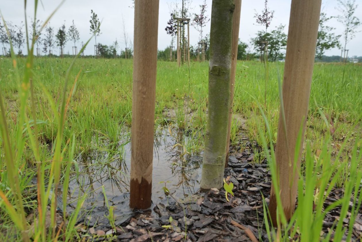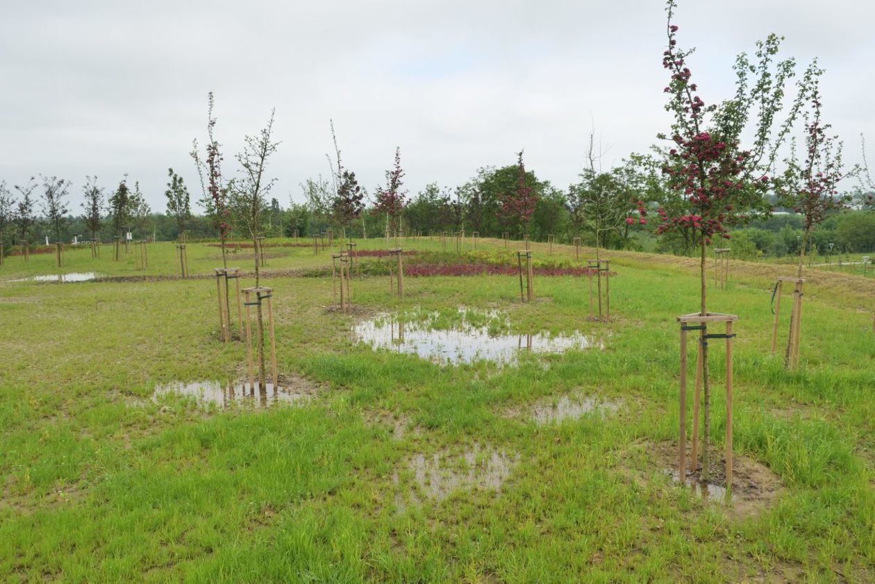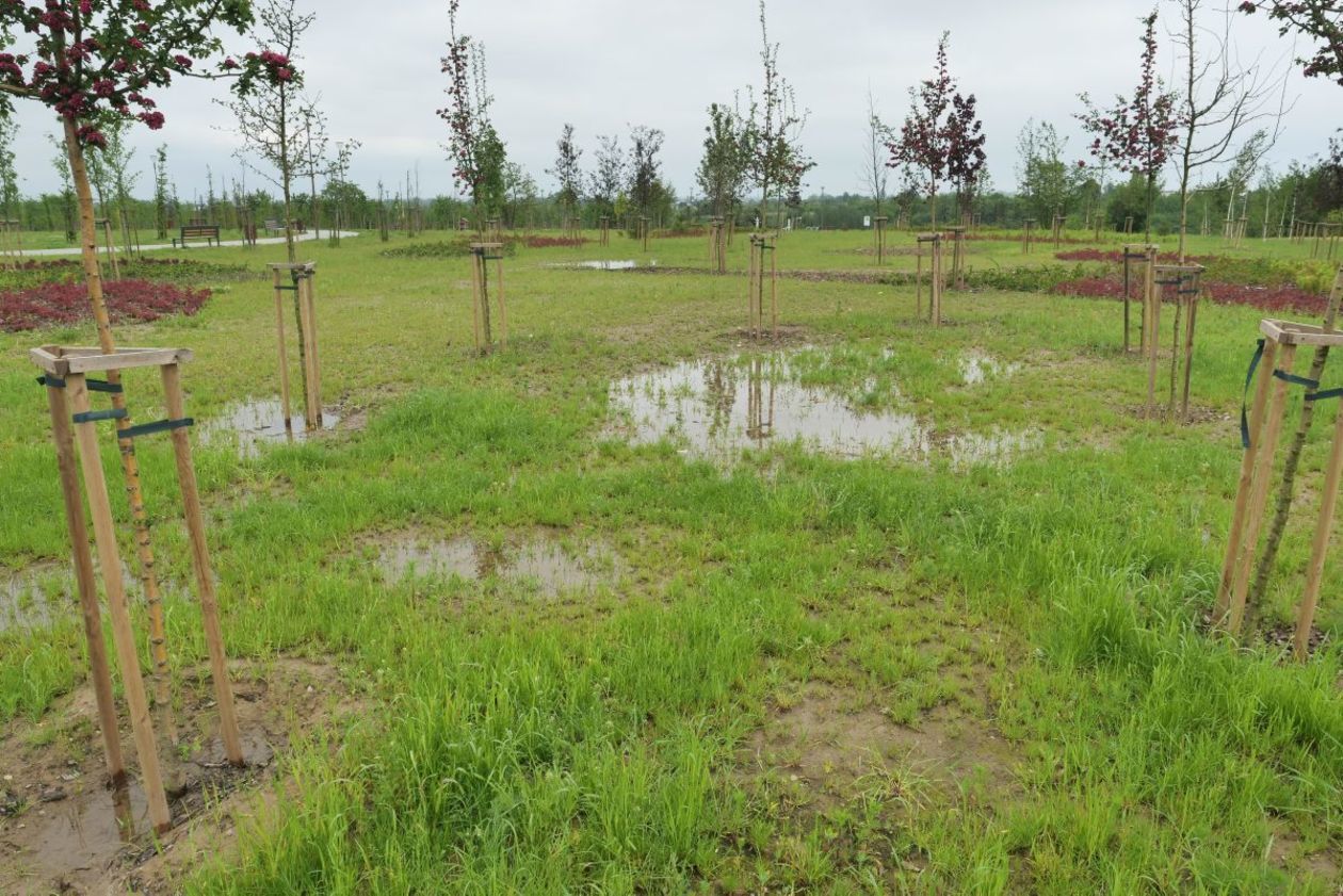 Park przy Zawilcowej po opadach deszczu