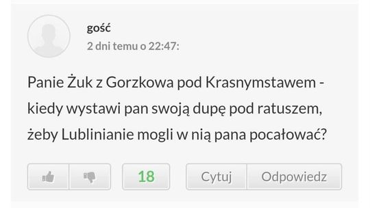 Wpisy na forach internetowych, które Krzysztof Żuk zgłosi do prokuratury
