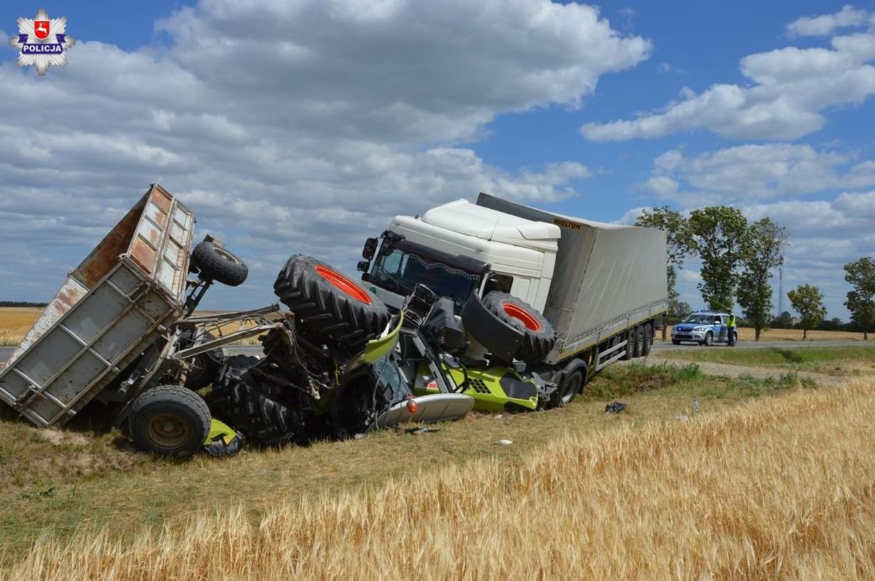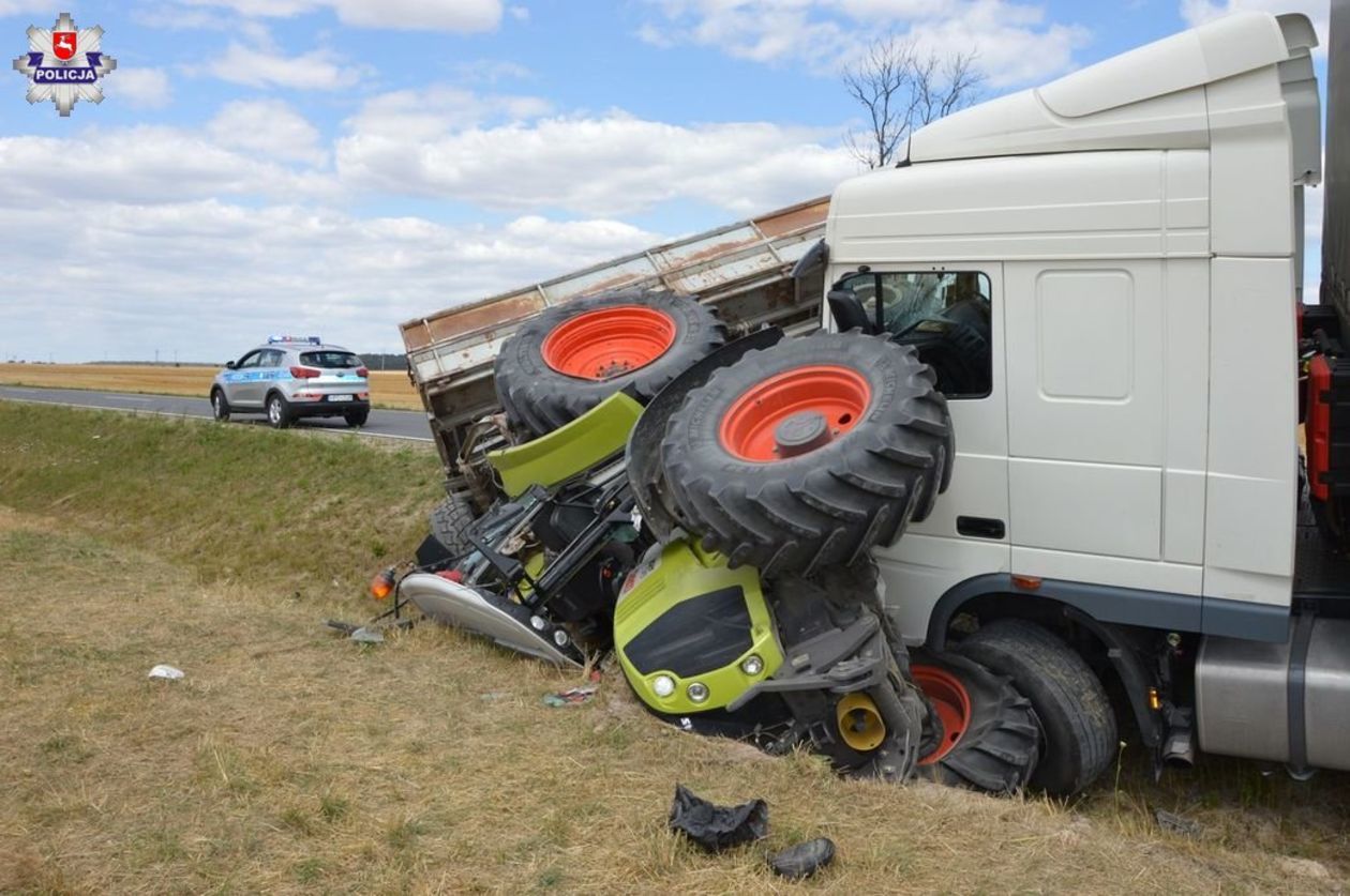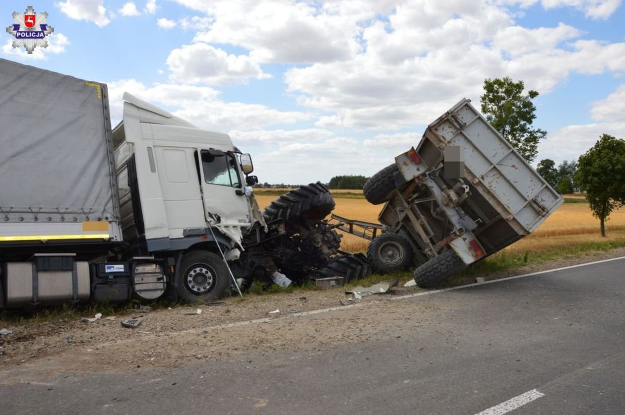 Zderzenie ciężarówki z ciągnikiem