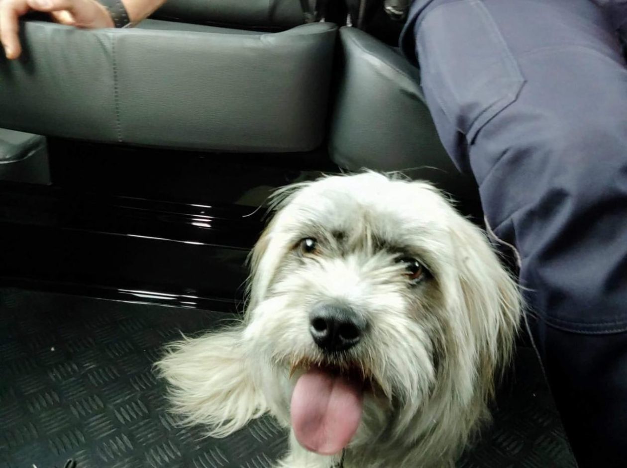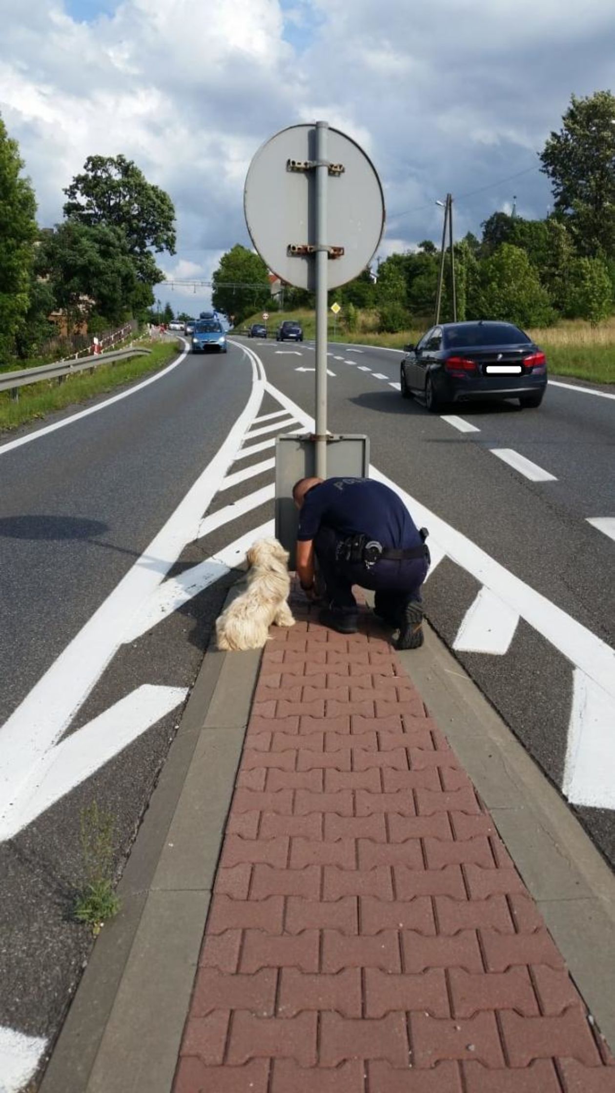 Ktoś porzucił psa na pasie oddzielającym jezdnie