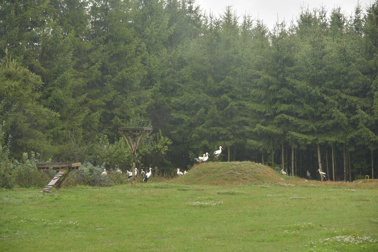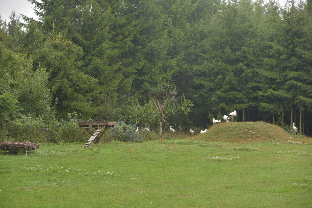 Wybieg w ośrodku Szansa dla bociana to 25 arów terenu, na którym zbudowano sztuczne gniazda na niskich podestach