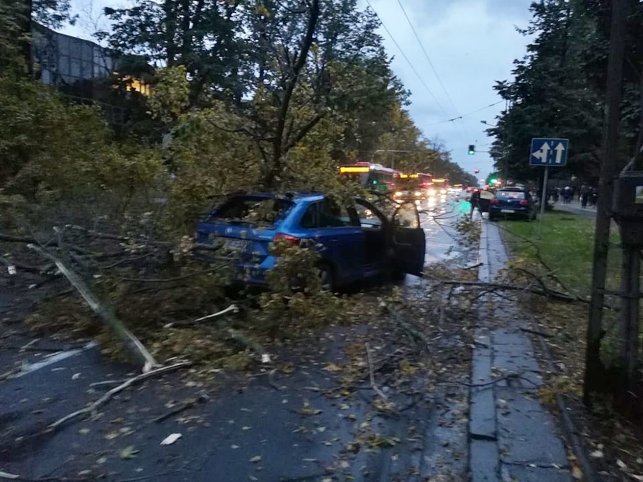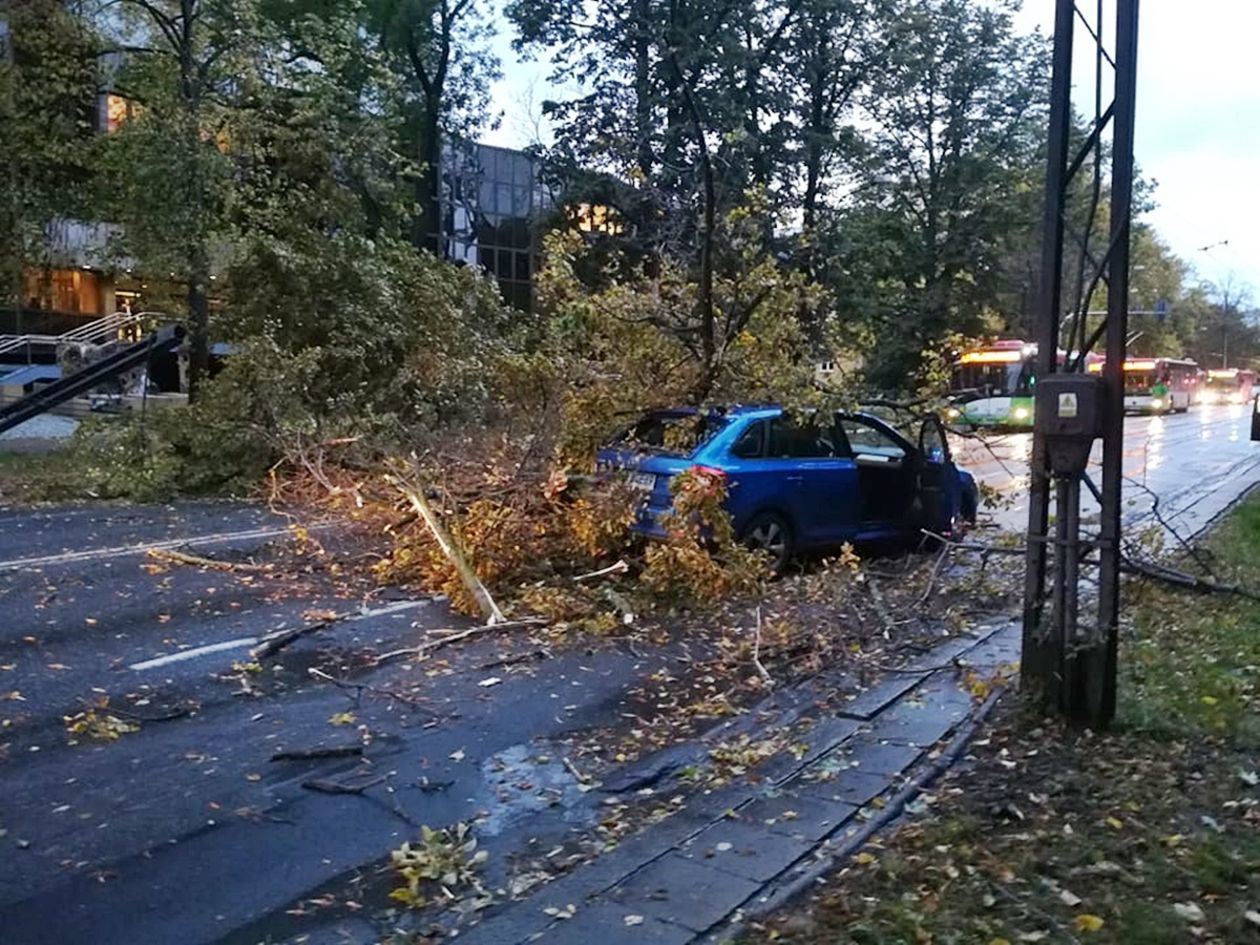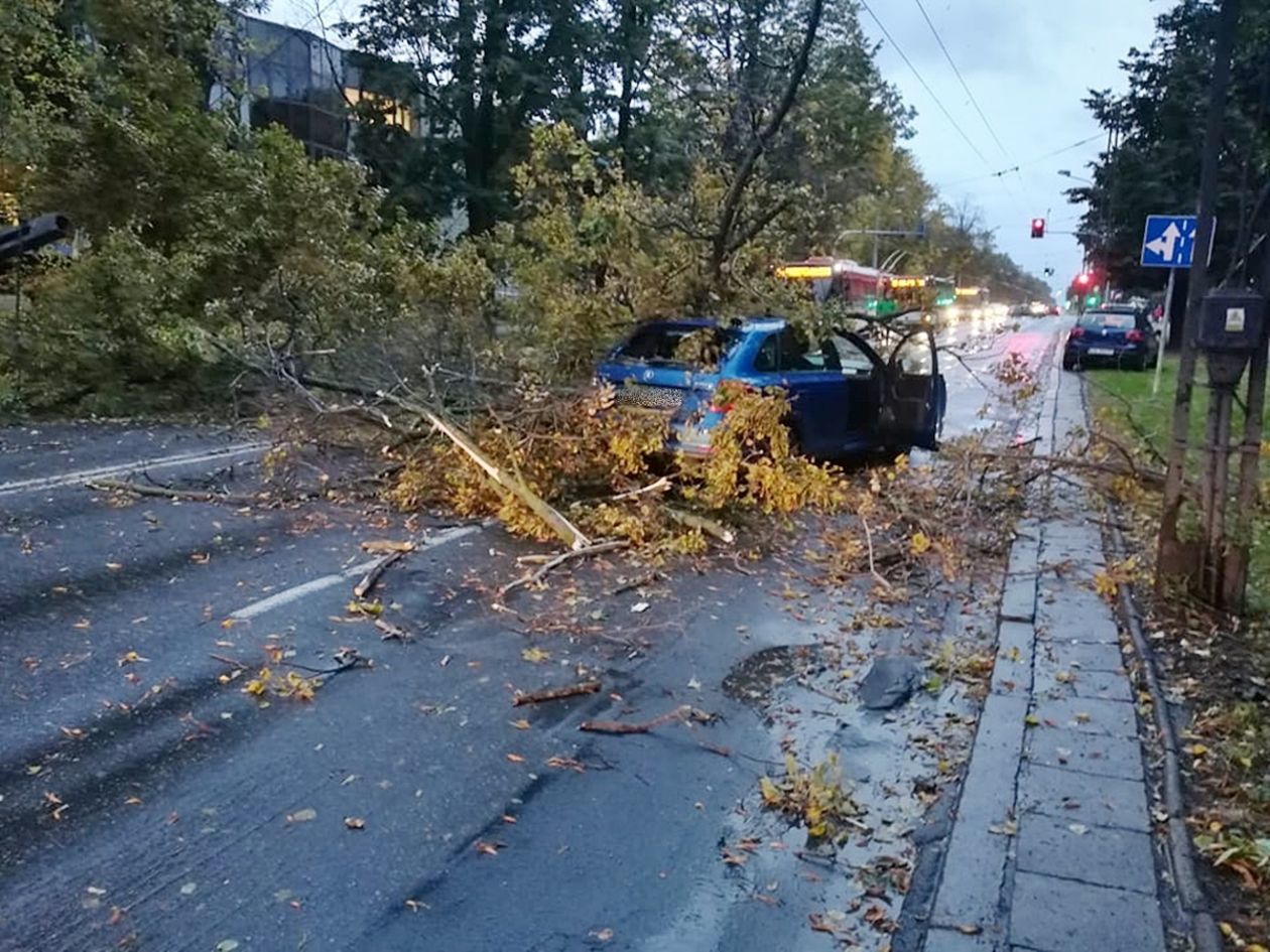 Powalone przez wichurę drzewo spadło na Al. Racławickie w Lublinie