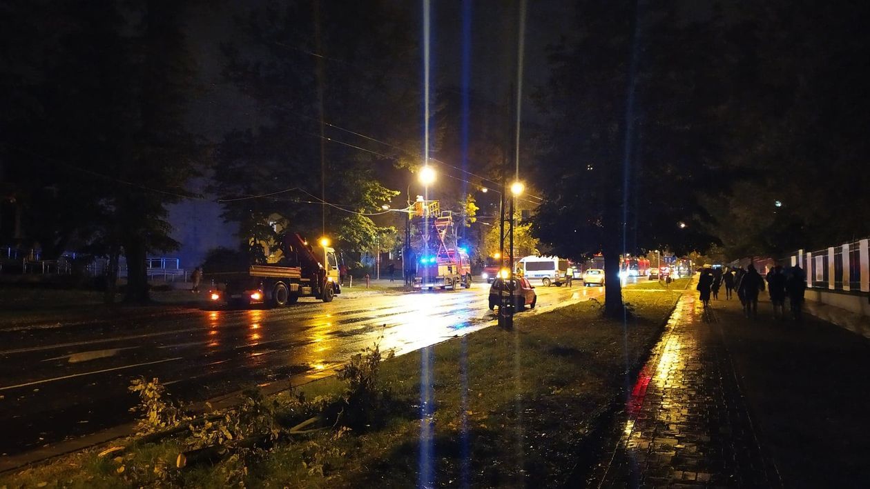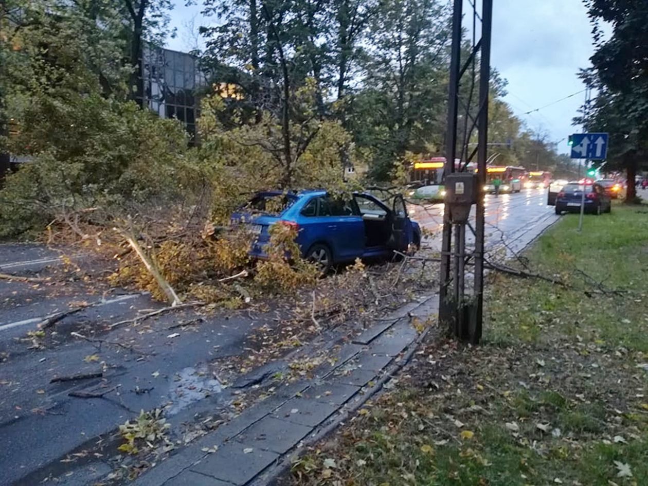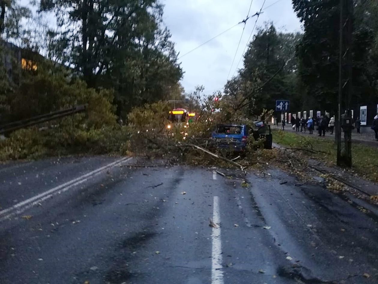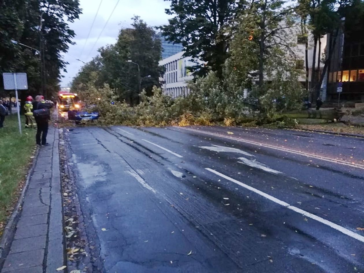 Powalone przez wichurę drzewo spadło na Al. Racławickie w Lublinie