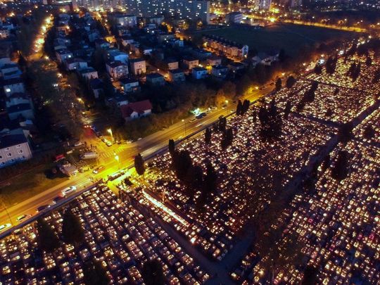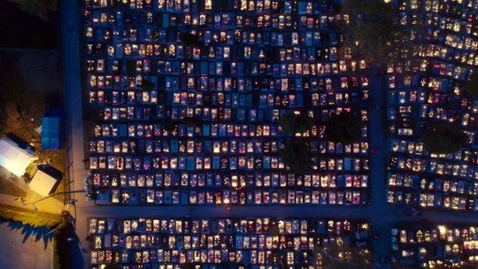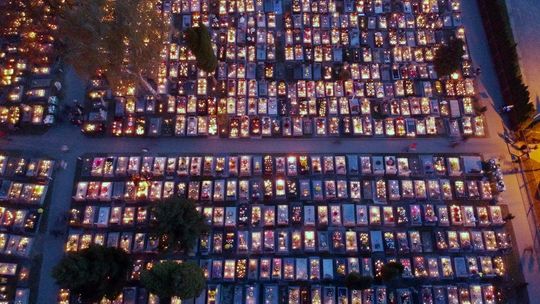 Cmentarz przy ul. Walecznych w świątecznej iluminacji