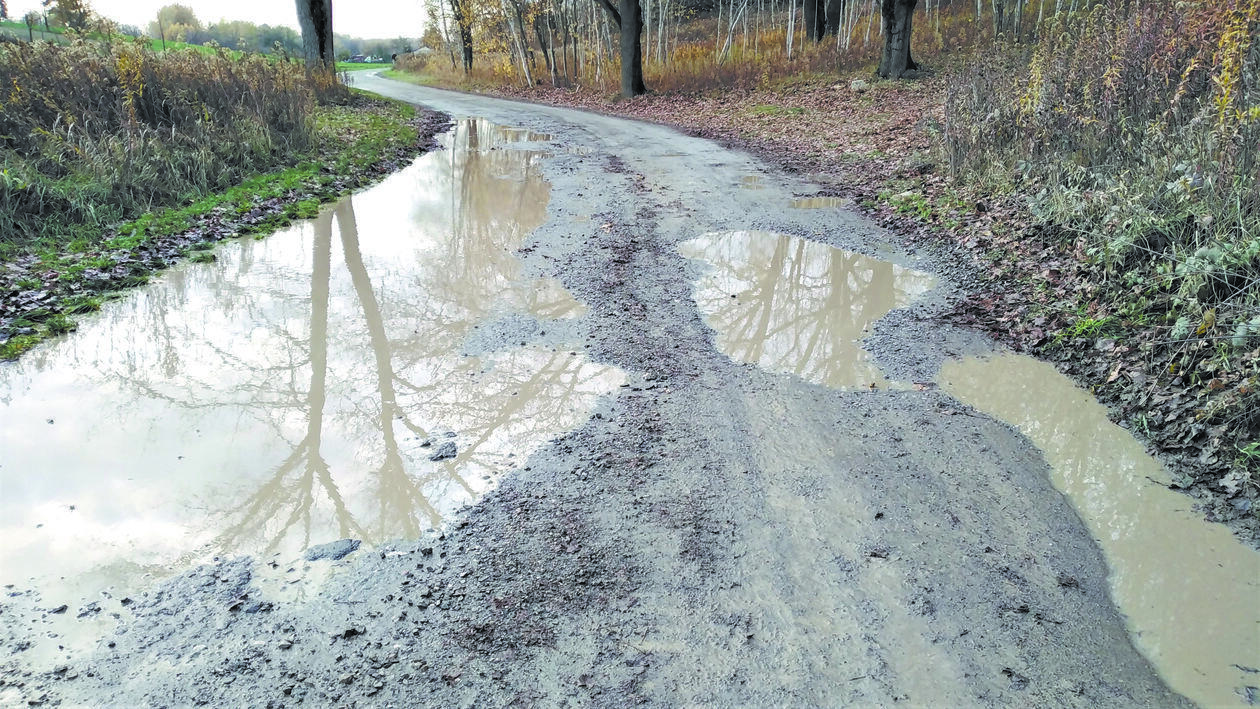 Asfaltu wciąż nie ma, jest tylko ubity tłuczeń powleczony warstwą rzadkiego błota