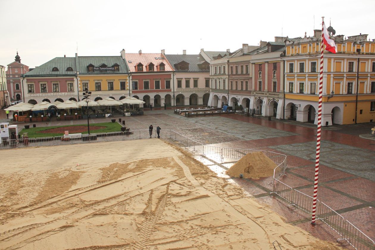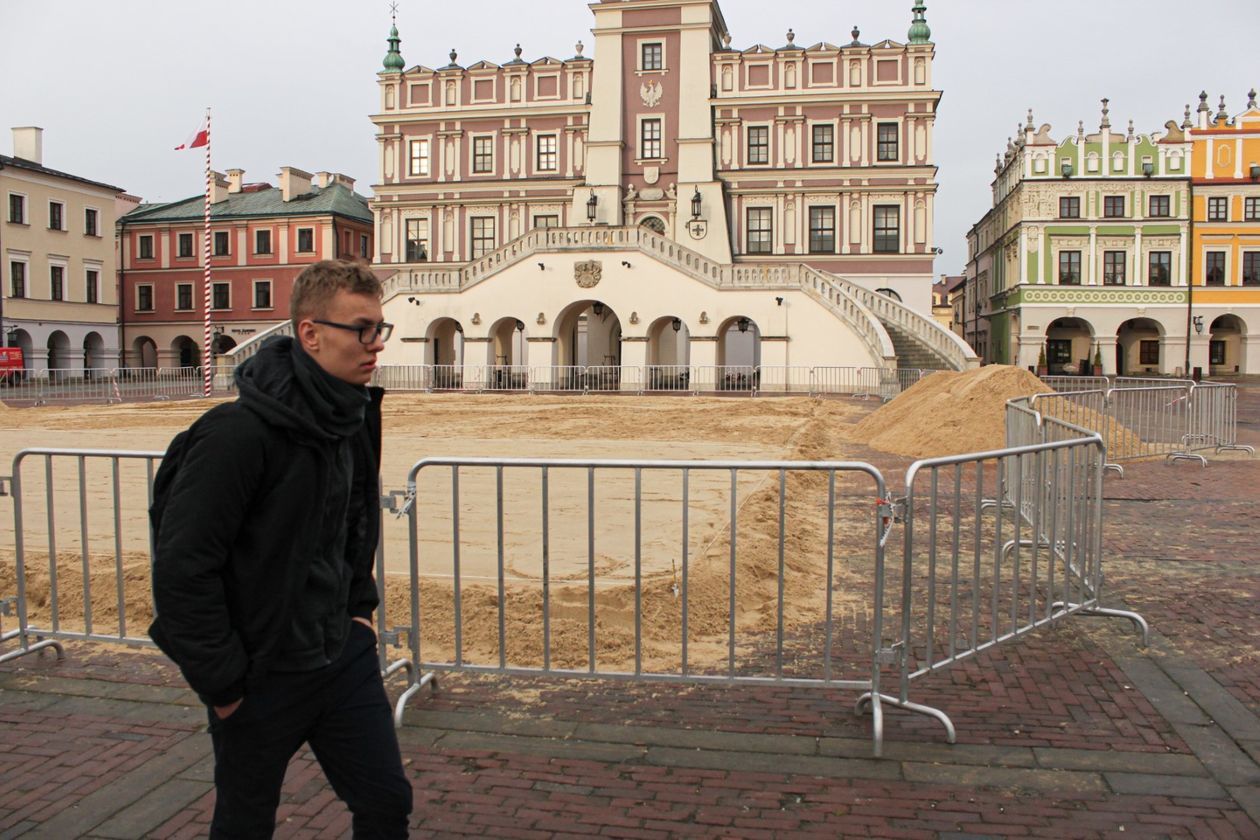 Ruszyły prace przy budowie lodowiska na rynku w Zamościu