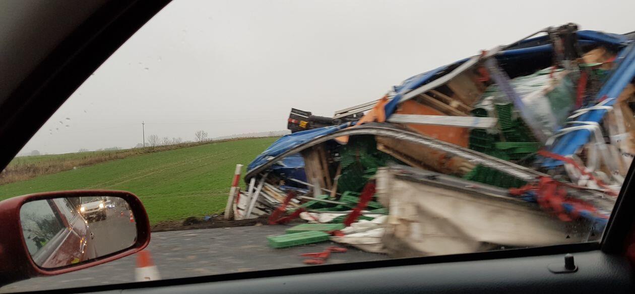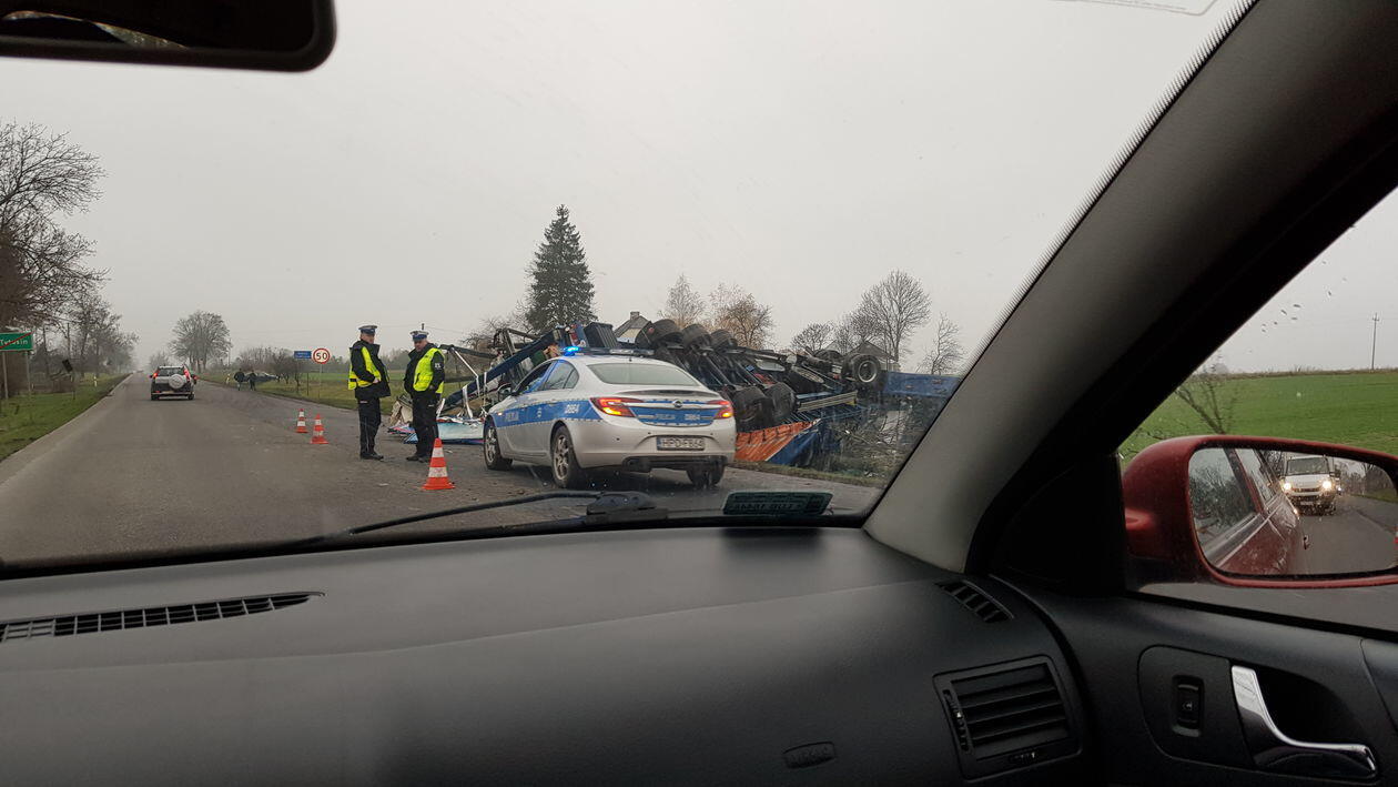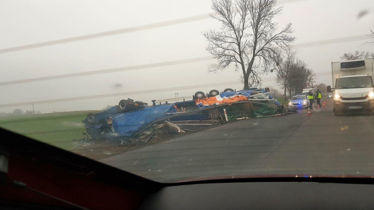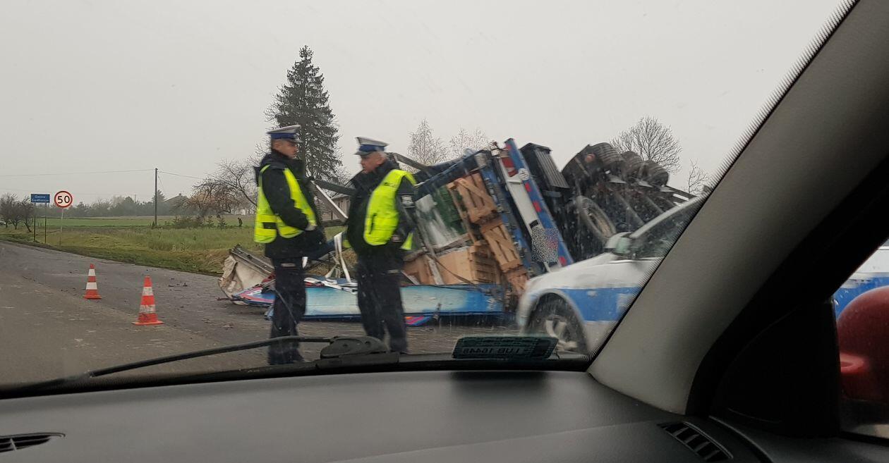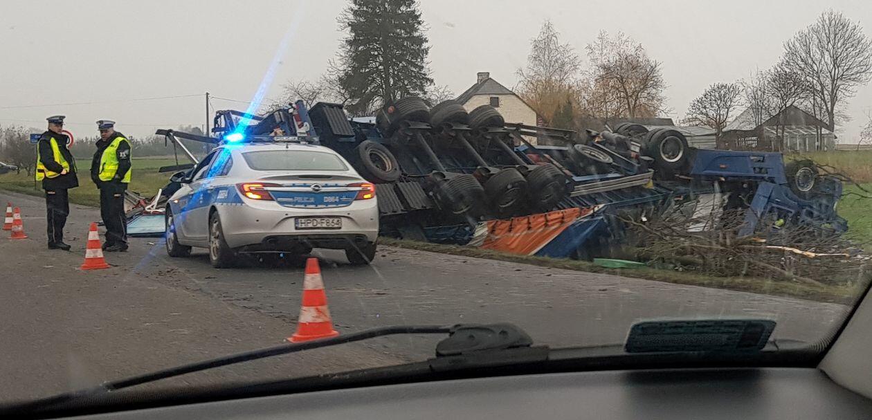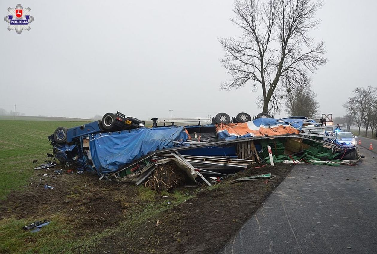 Wypadek na DK12. Ciężarówka wypadła z drogi