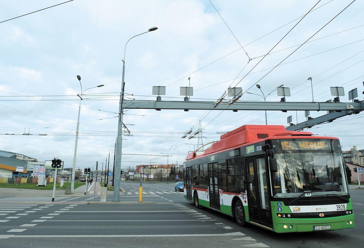 Na rondzie Lubelskiego Lipca ’80 podłączone zostało już zasilanie trakcji trolejbusowej, ale jeszcze w sobotę wieczorem ekipy MPK pracowały przy sieci nad skrzyżowaniem koło Targów Lublin (na zdjęciu) i tutaj trolejbusy mogły wczoraj przejechać wyłącznie korzystając z baterii lub agregatu prądotwórczego.