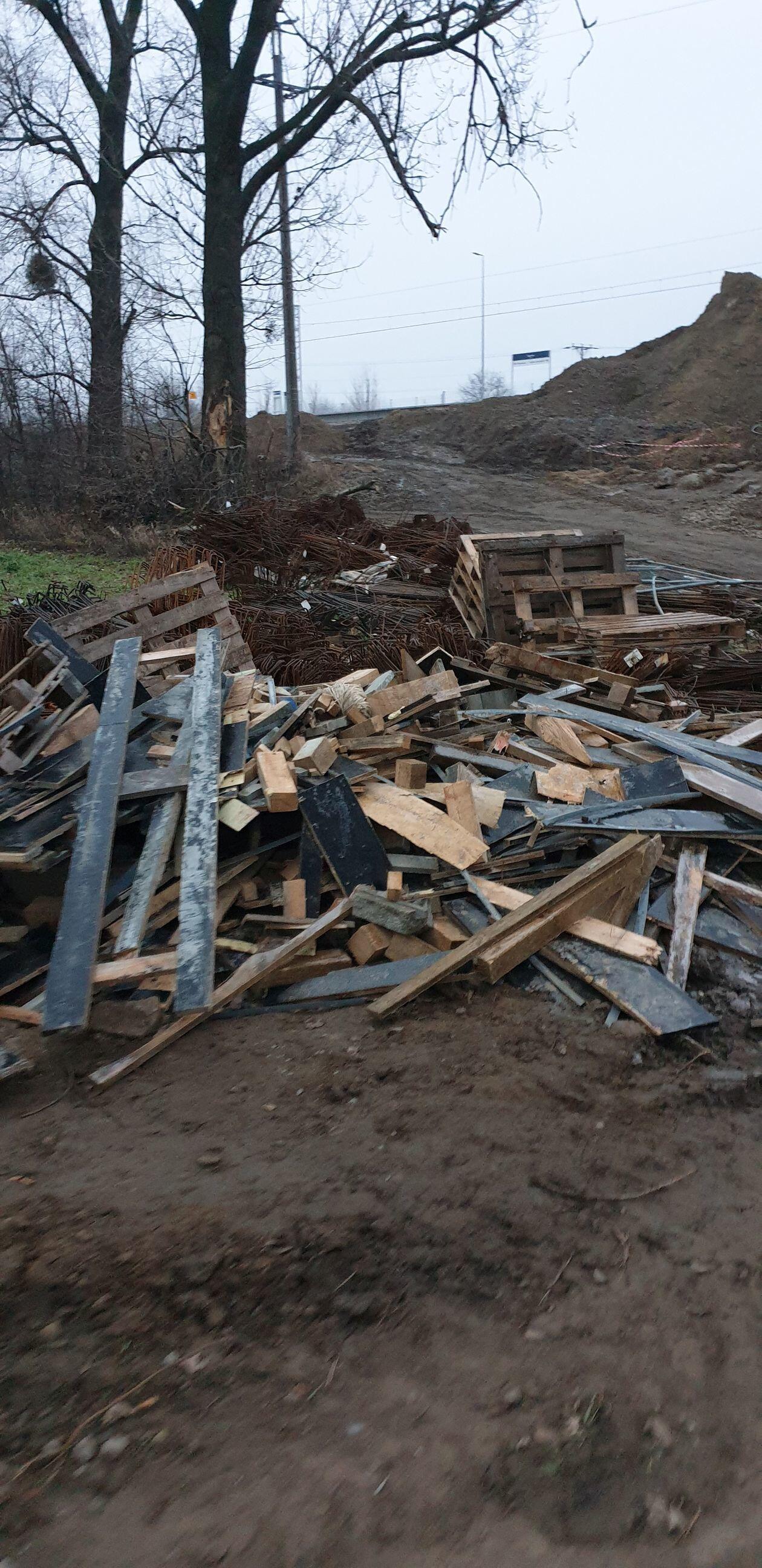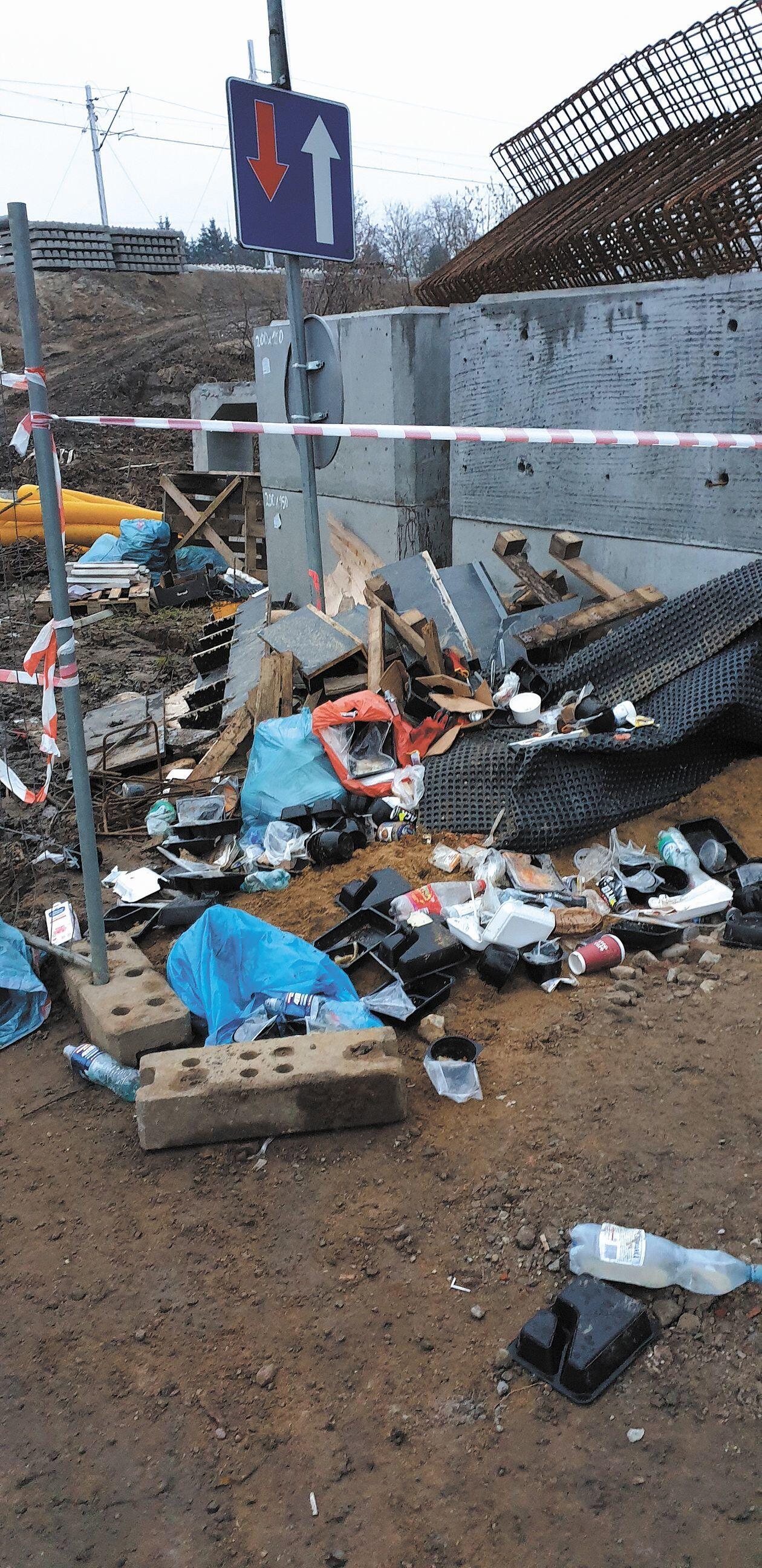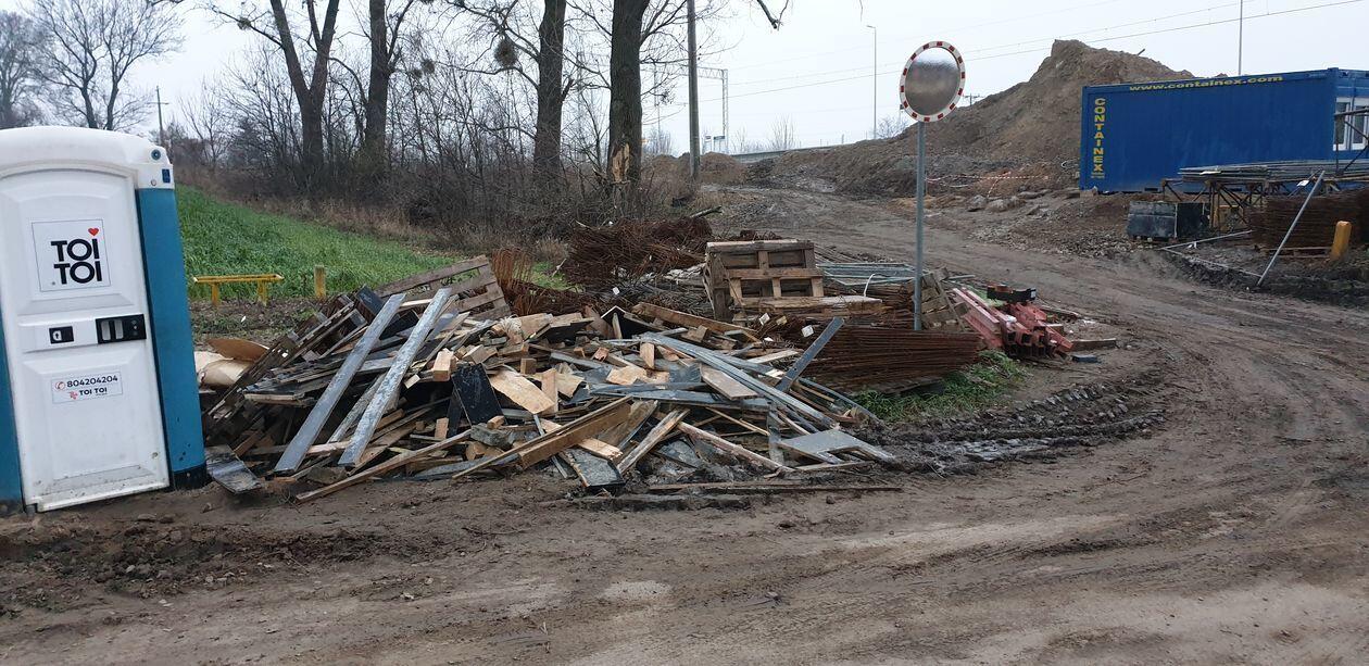 Śmieci na budowie wiaduktu w Czesławicach