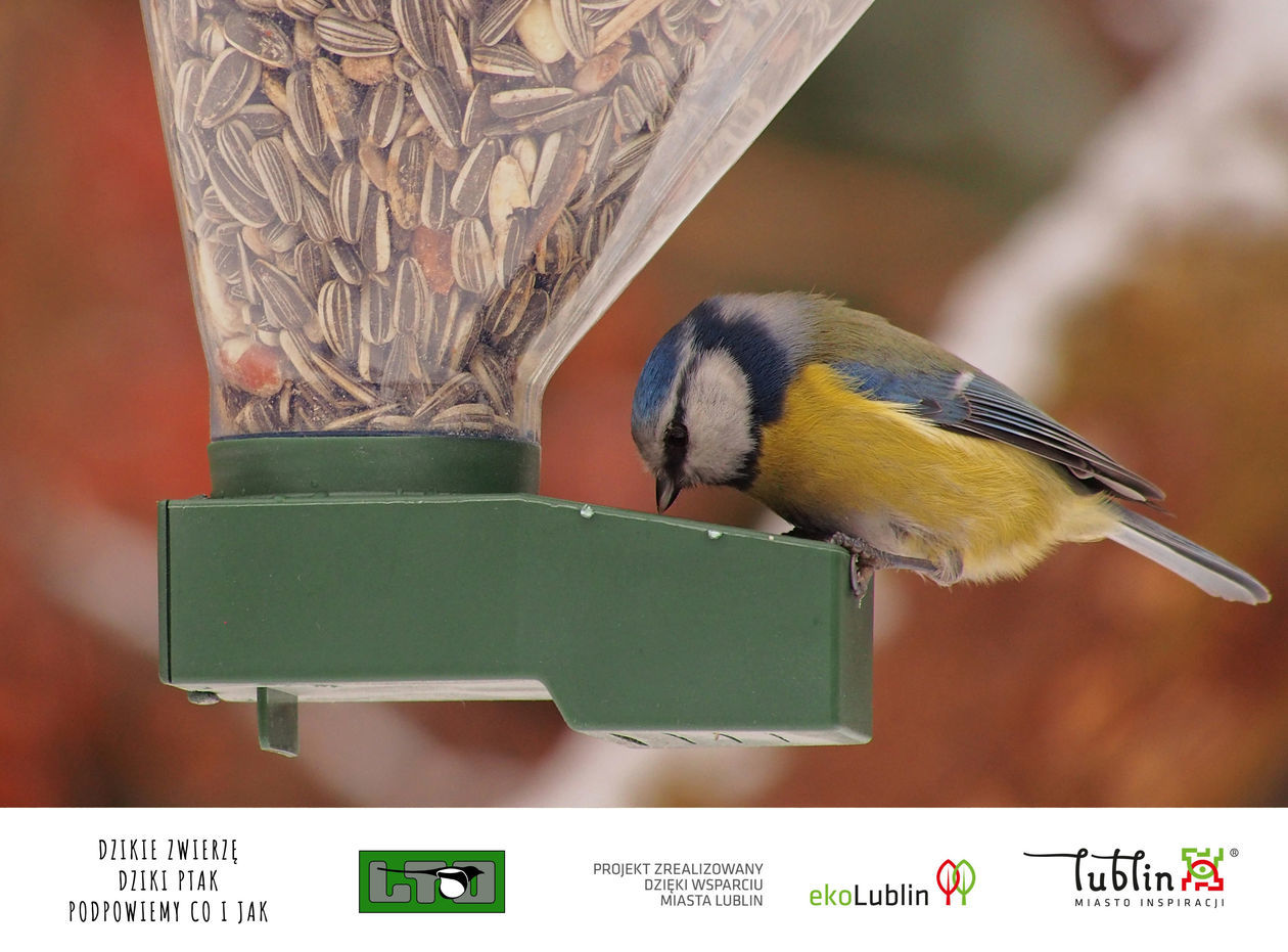 Modraszka. Razem z sikorkami bogatkami czy sosnówkami są częstymi gośćmi w miejskich karmnikach