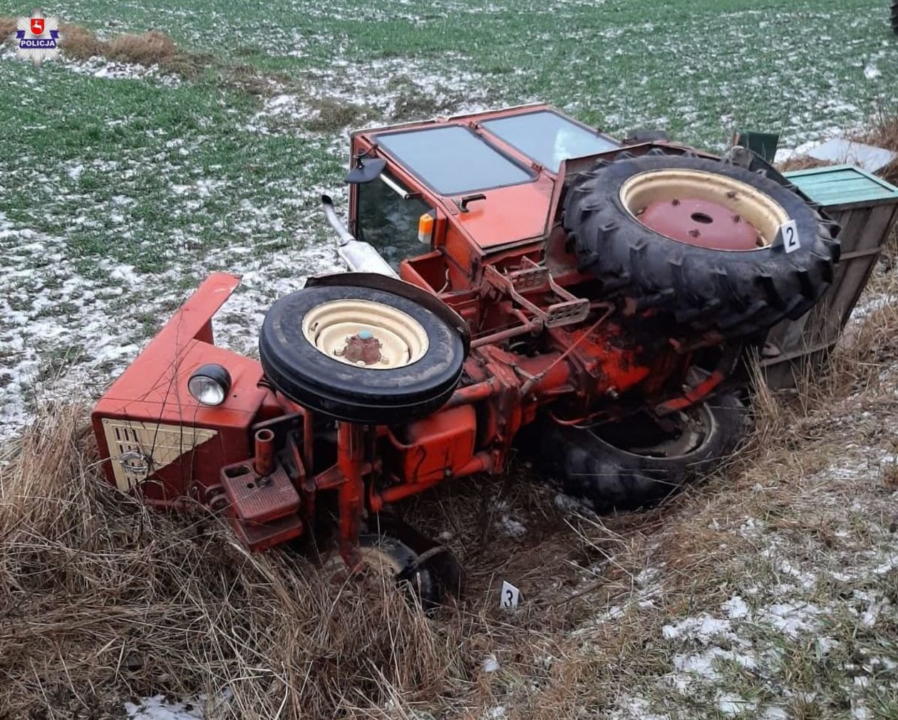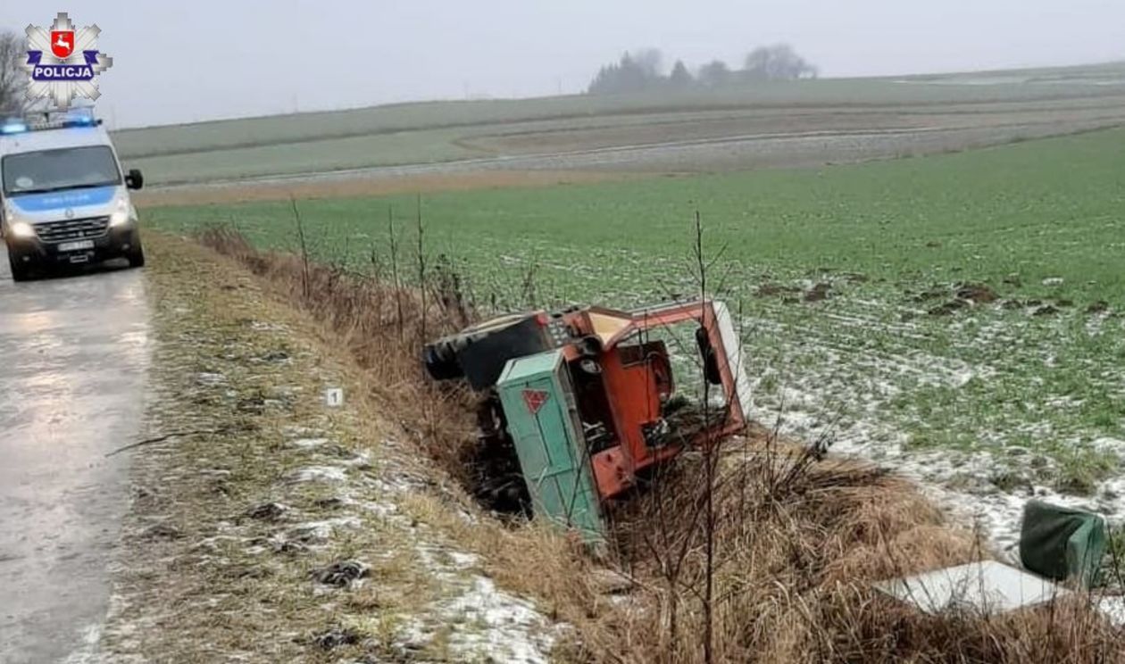 Lubelskie: Wpadł w poślizg ciągnikiem i wjechał do rowu