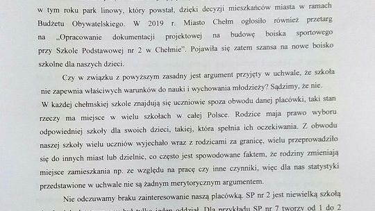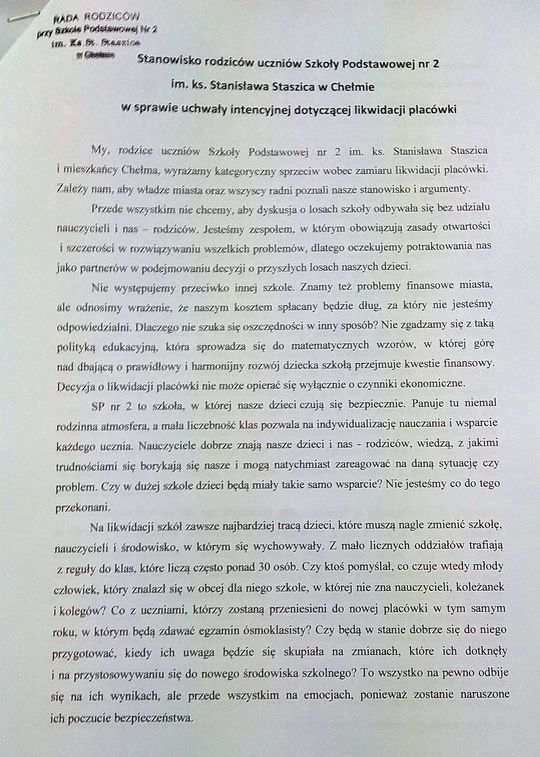 Stanowisko rodziców uczniów SP 2 w Chełmie