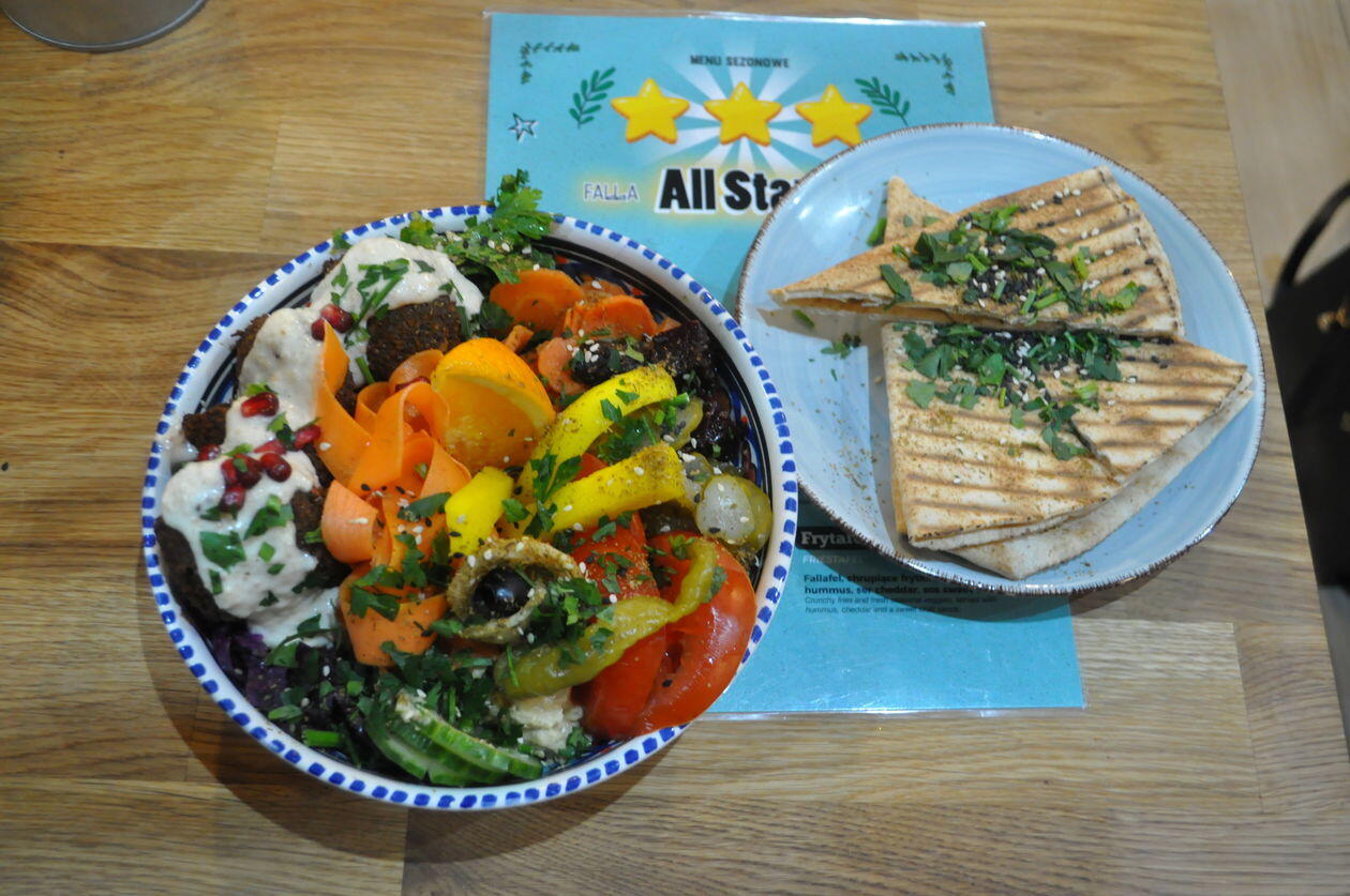 To, czym Falla wyróżnia się na tle innych wegetariańskich lokali (oprócz orientalnych smaków, które ciągną nasze głowy w stronę Egiptu czy Libanu) jest rozmiar porcji. Są ogromne. Jednym daniem mogą najeść się nawet dwie osoby. Nie jest tanio, ale doznania smakowe po zjedzeniu hummusu (14–16 zł), szakszuki (19– 26 zł) czy wrapa (18–26) są warte każdej ceny.