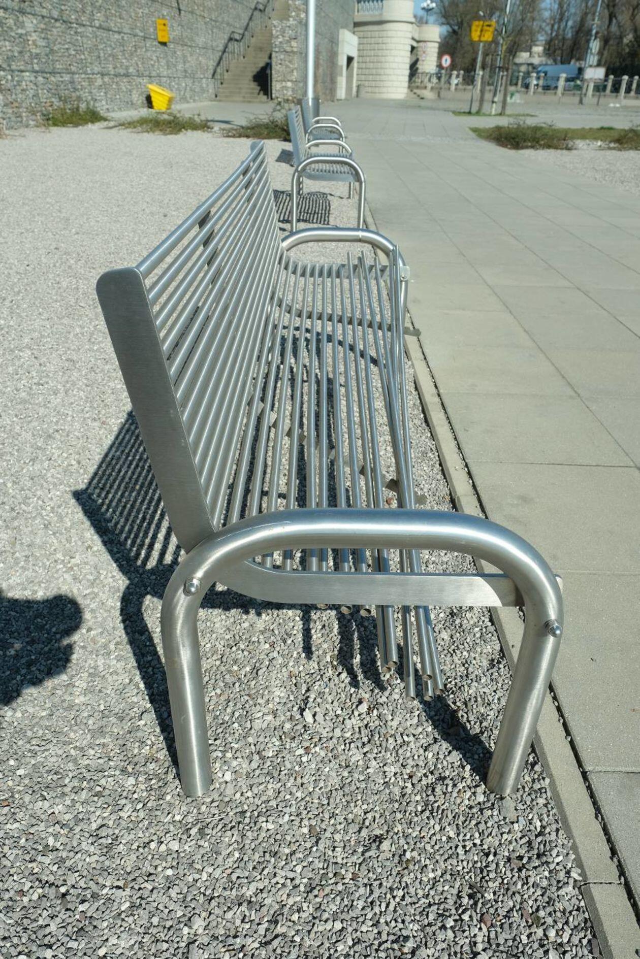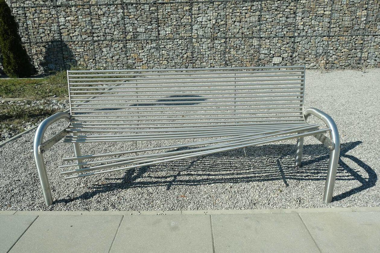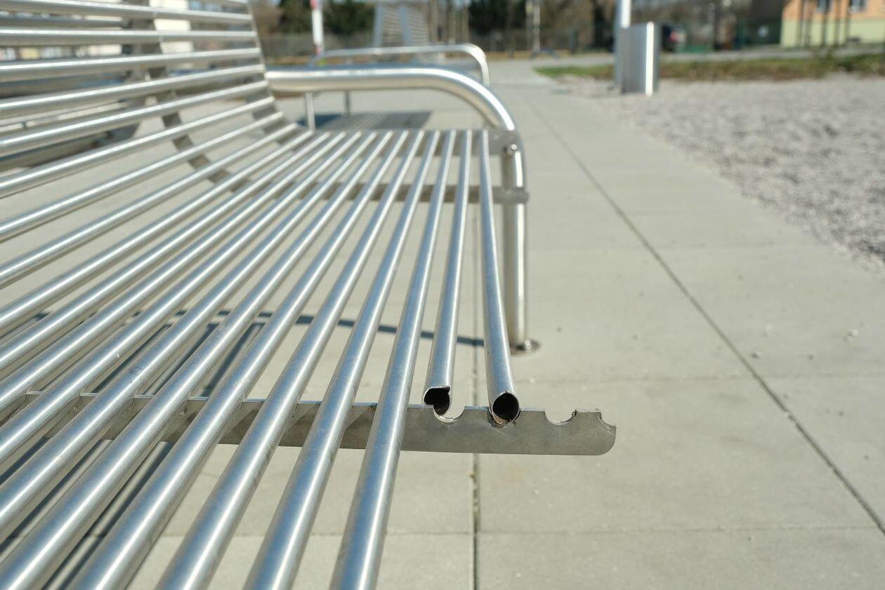 Zdewastowane ławki na skwerze im. Grażyny Chrostowskiej