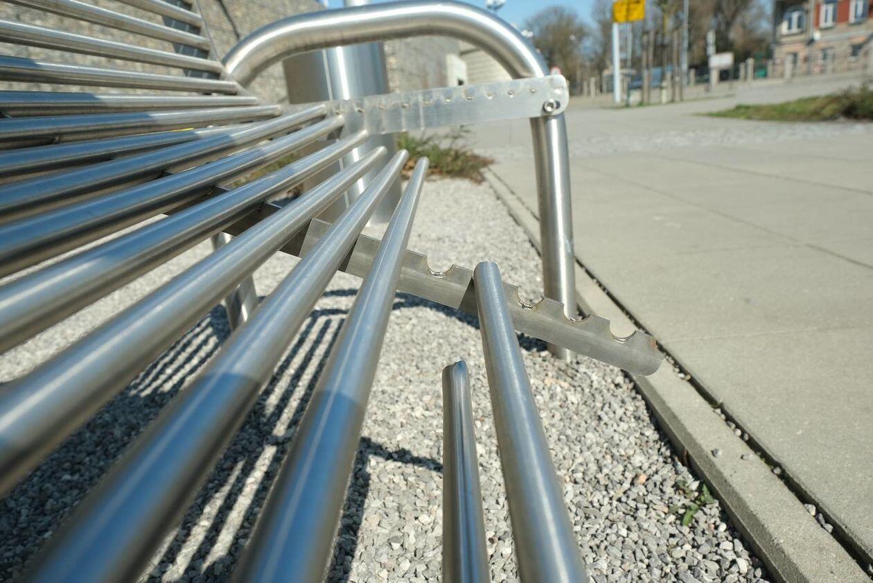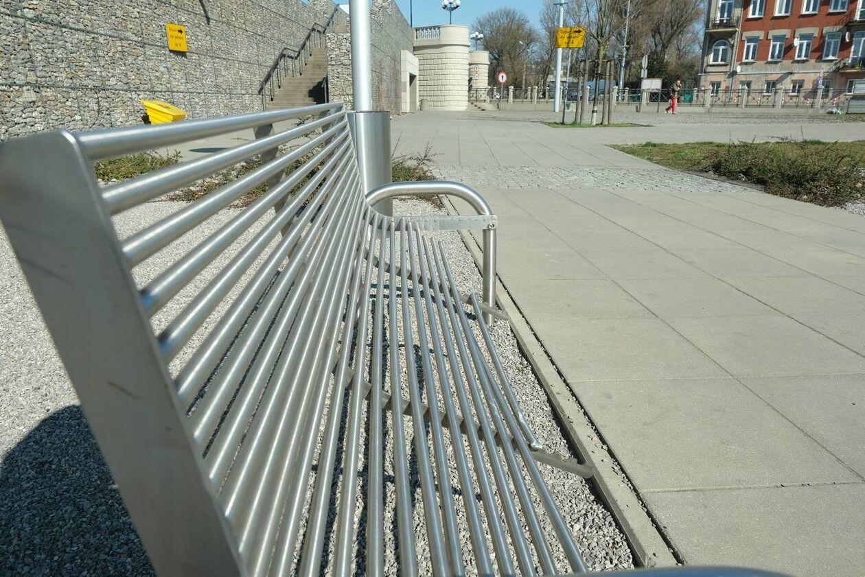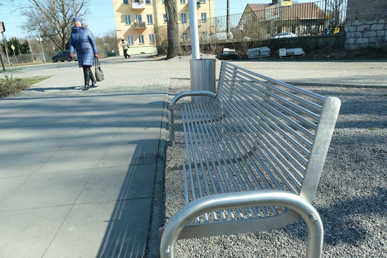 Zdewastowane ławki na skwerze im. Grażyny Chrostowskiej