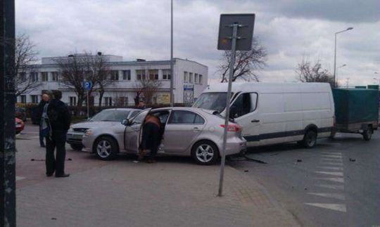 Do wypadku doszło około godziny 11.20. Zderzyły się cztery samochody - mitsubishi, ford, citroen oraz dostawczy renault .Na miejscu są dwa zastępy straży pożarnej, karetka pogotowia oraz radiowóz. Przejazd przez skrzyżowanie jest utrudniony.