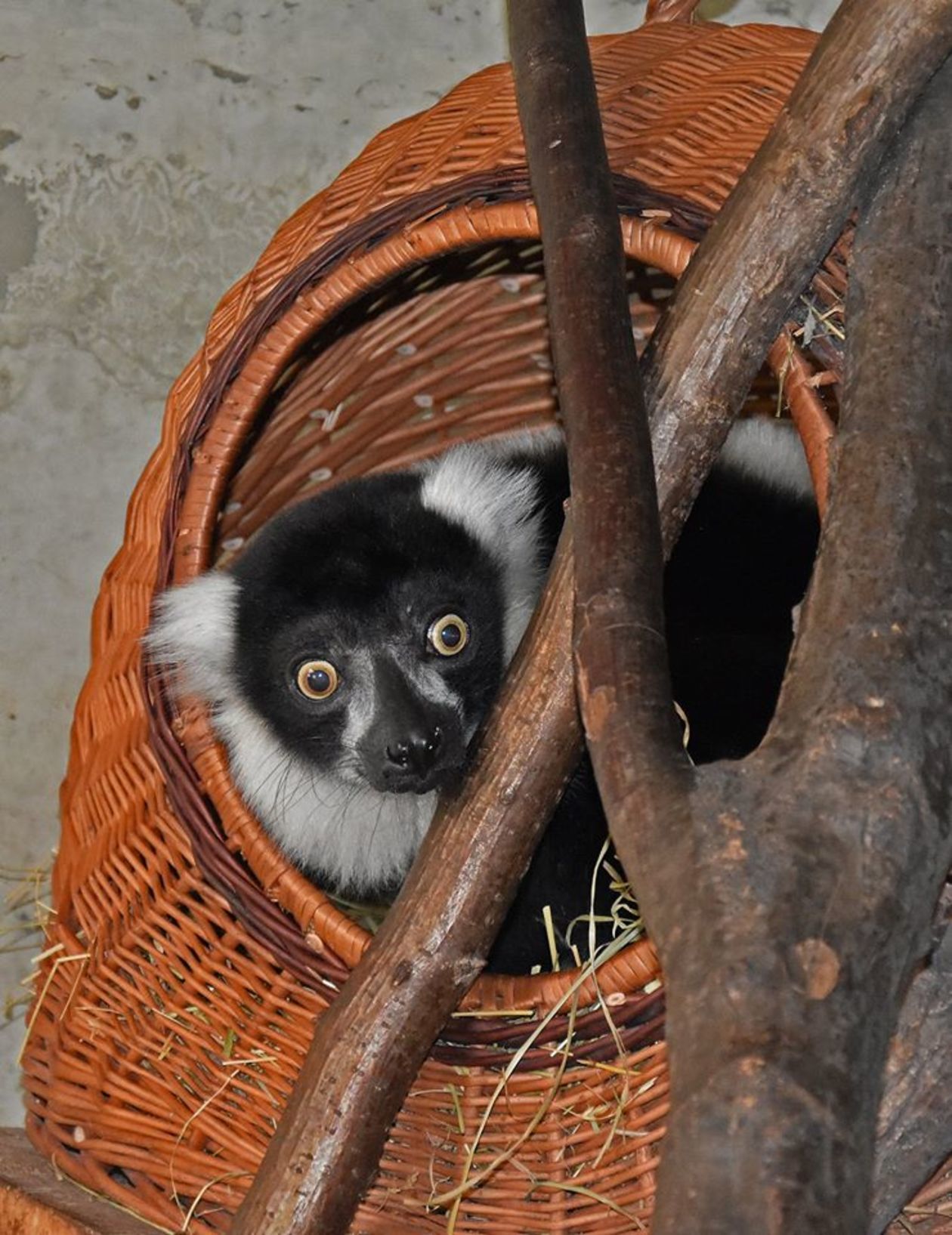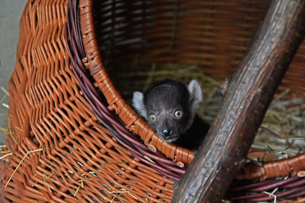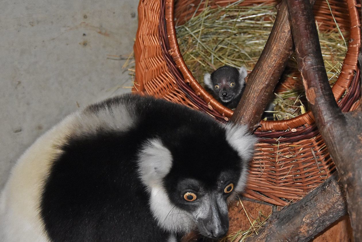 Samica lemura wari i jej potomstwo w zoo w Zamościu