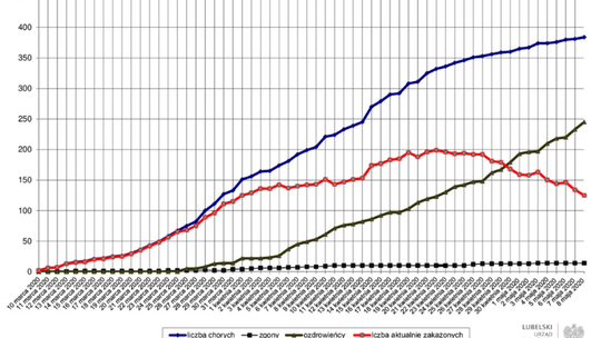 Krzywe obrazujące bieżącą sytuację epidemiczną na dzień 8 ma...