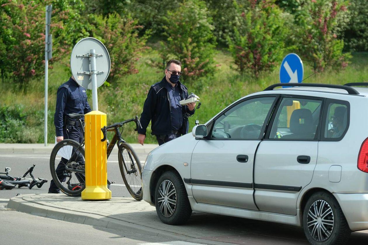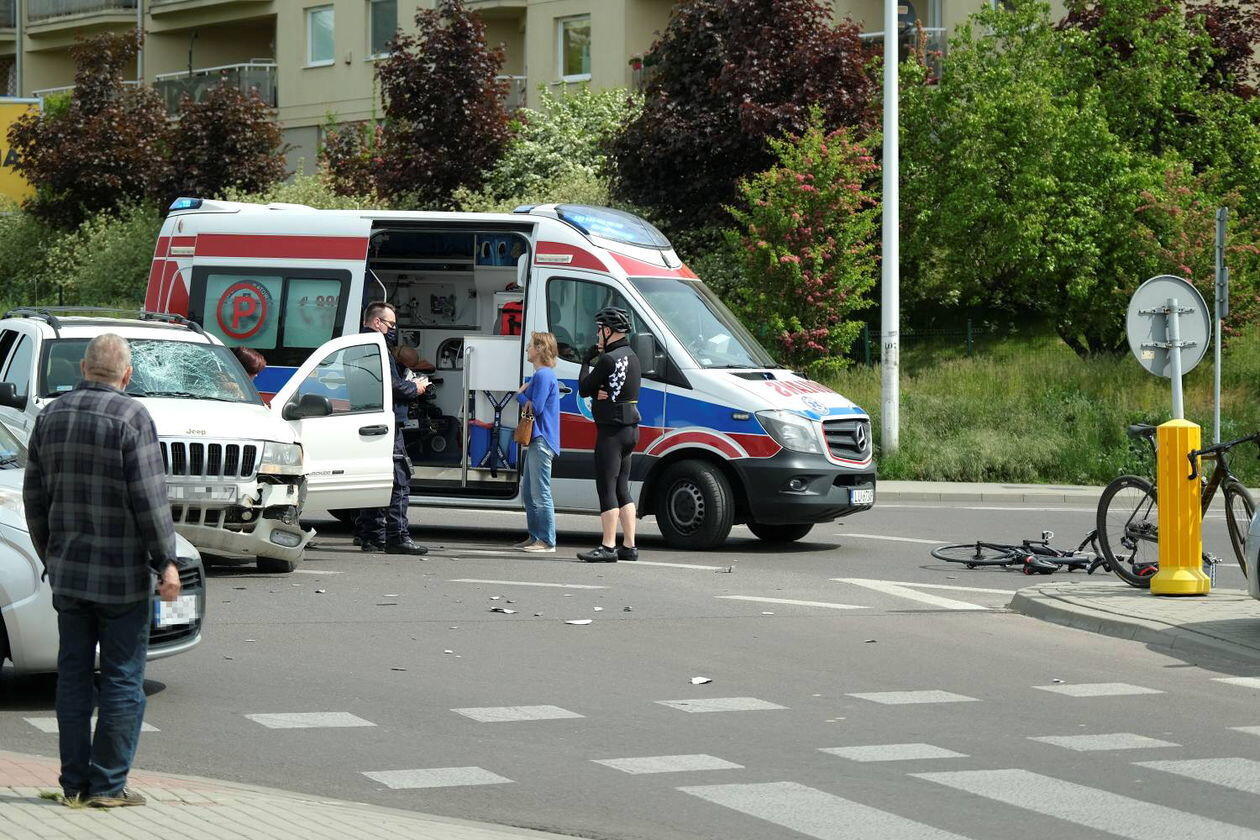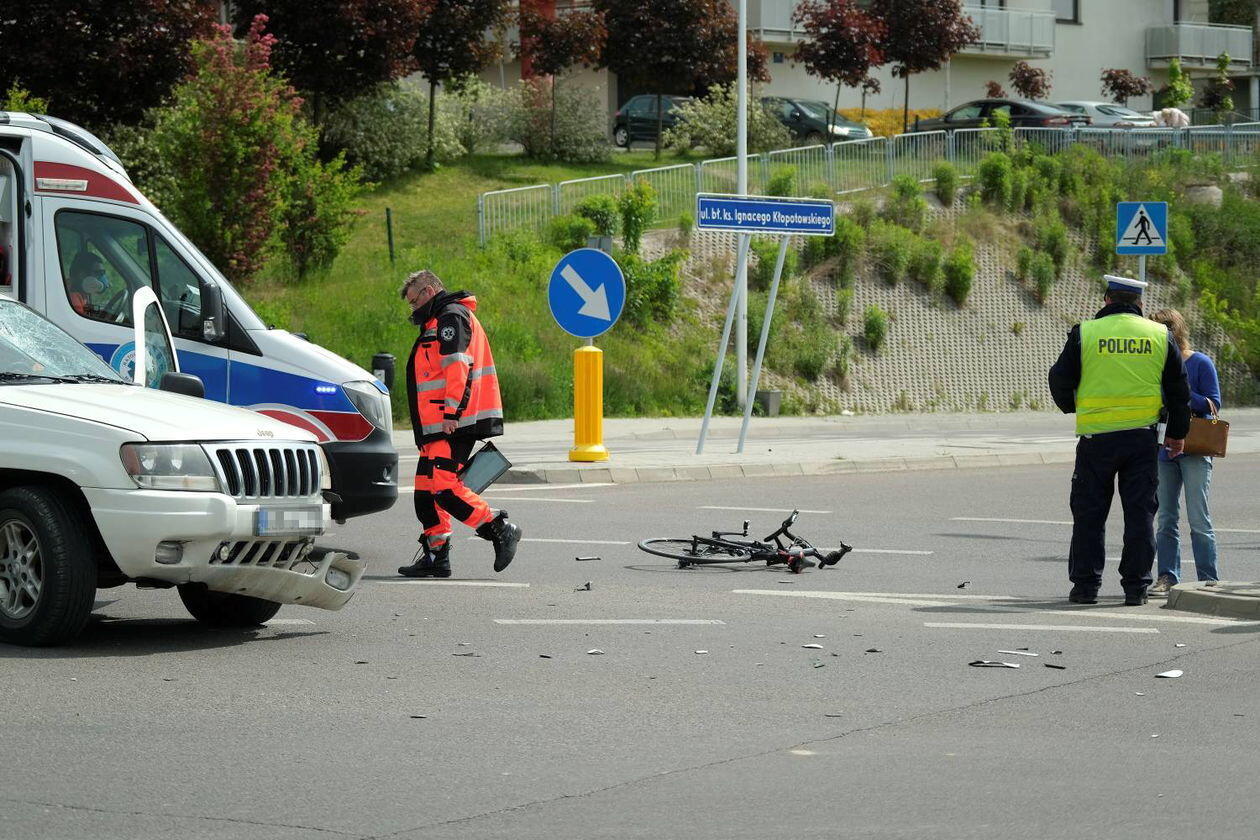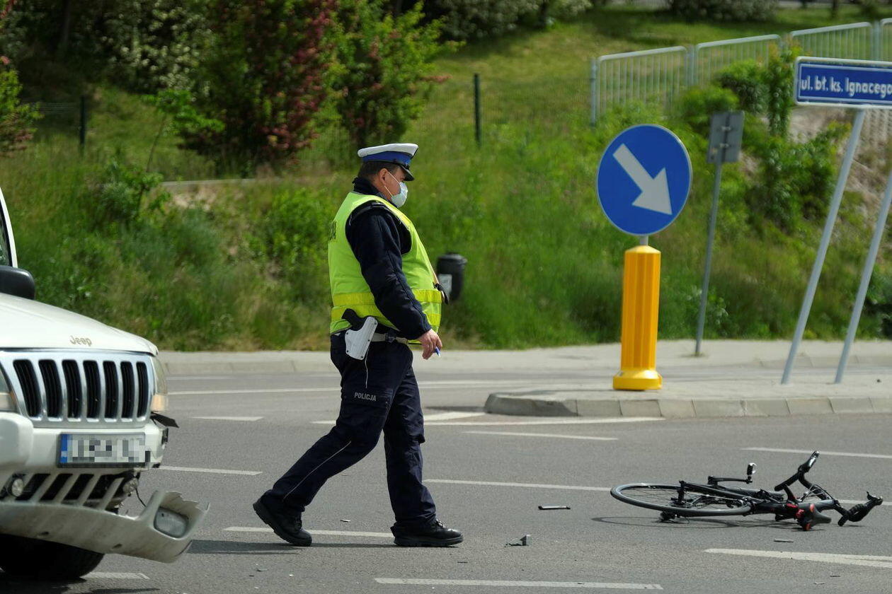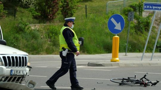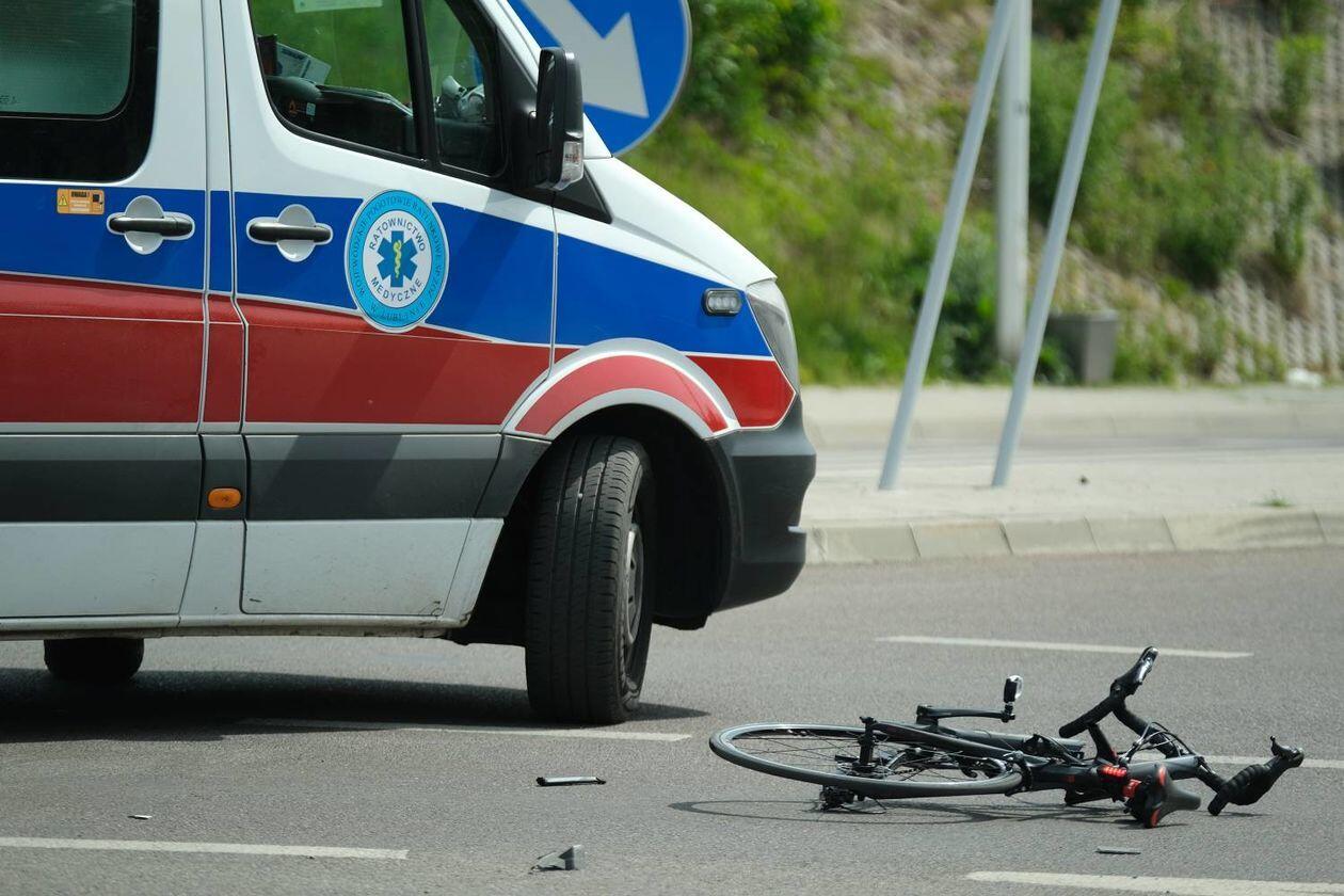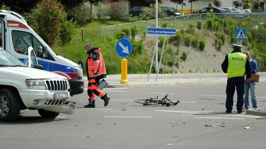 Potrącenie rowerzysty na skrzyżowaniu ulic Węgrarza i Walecznych