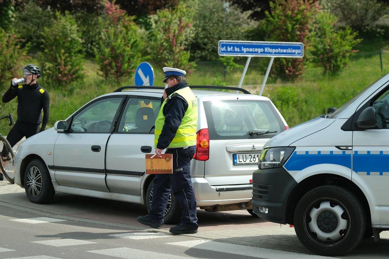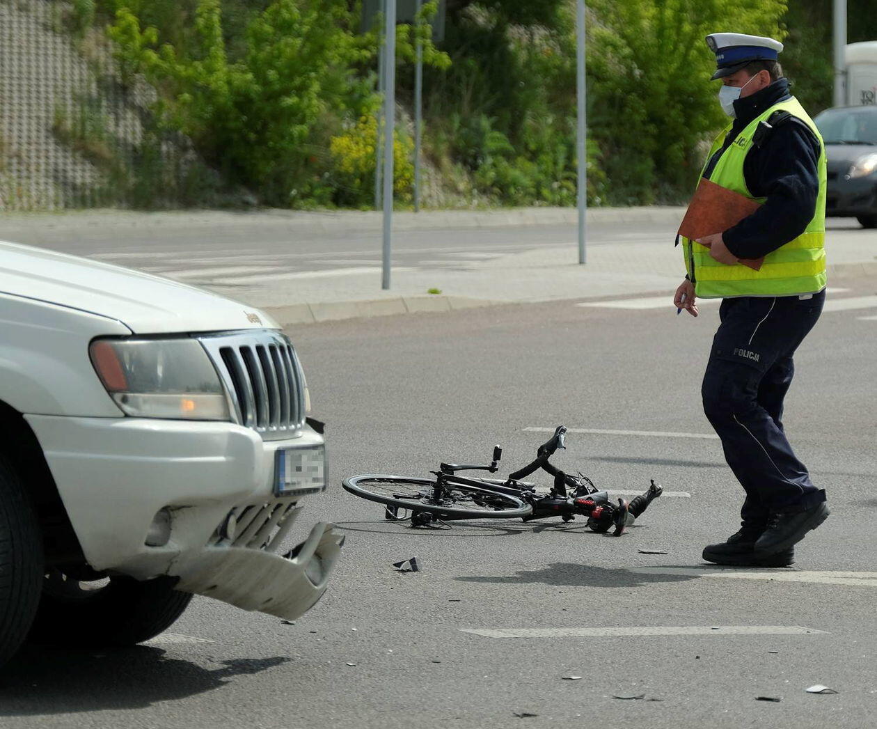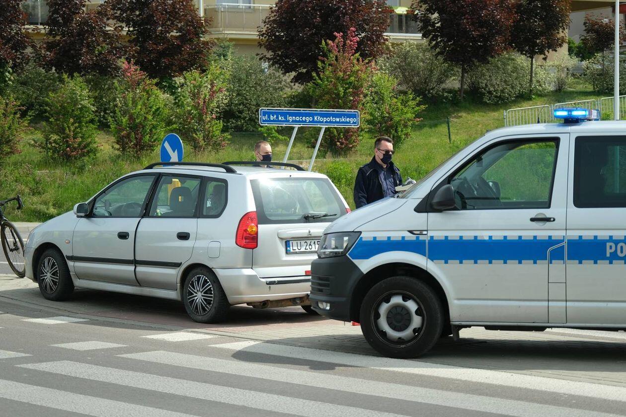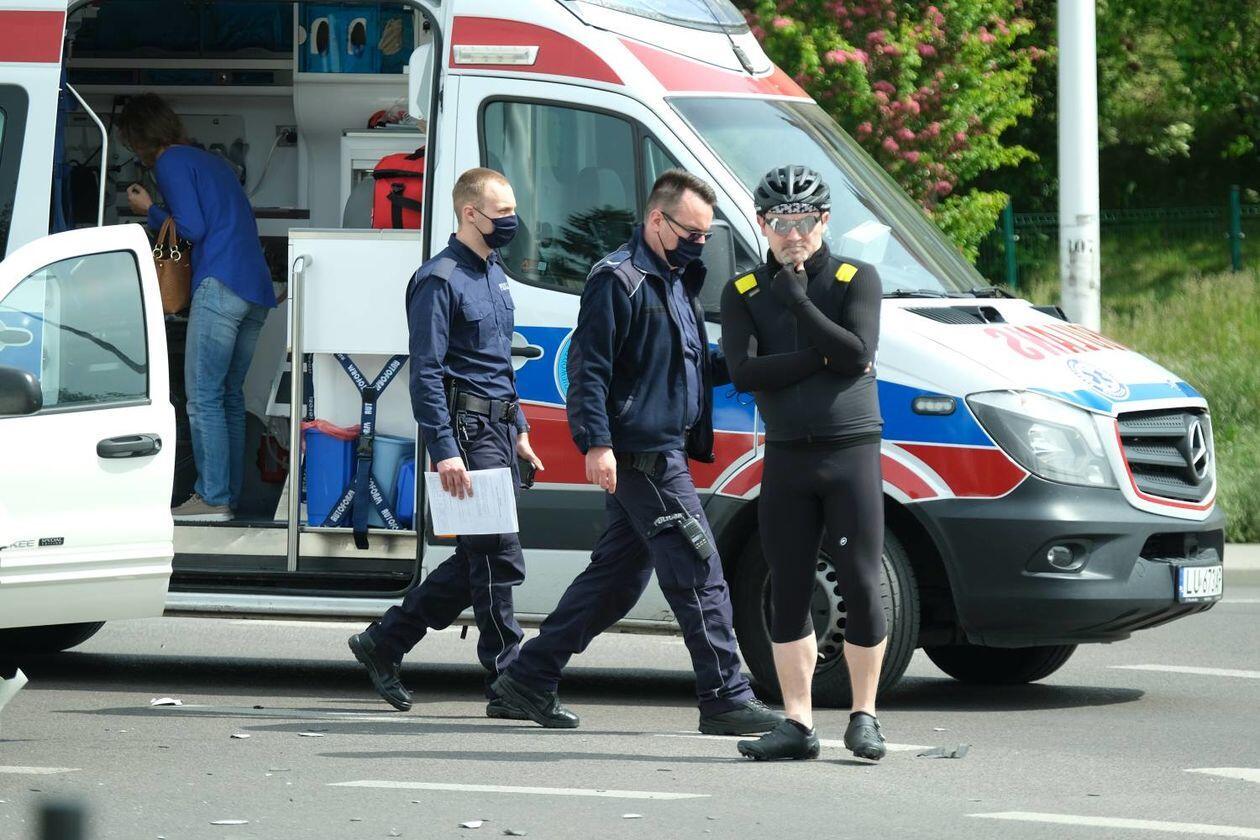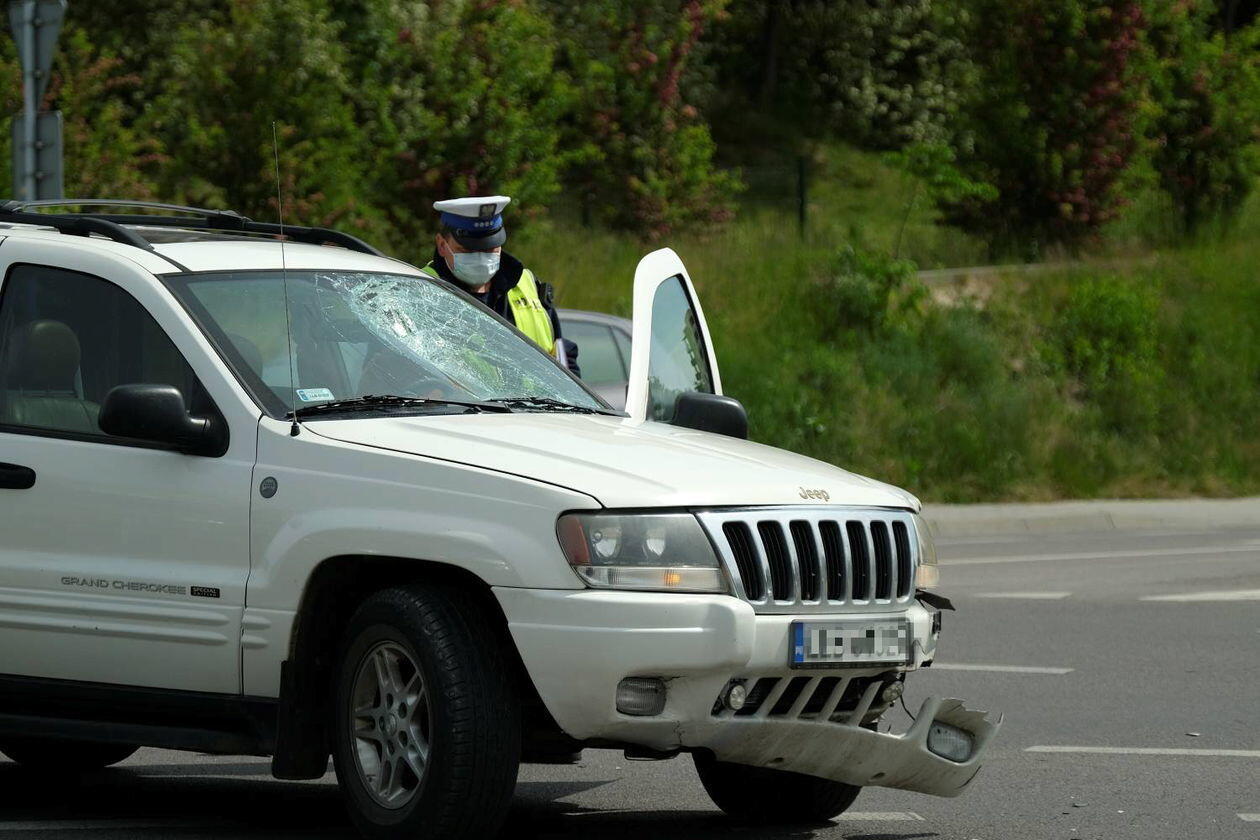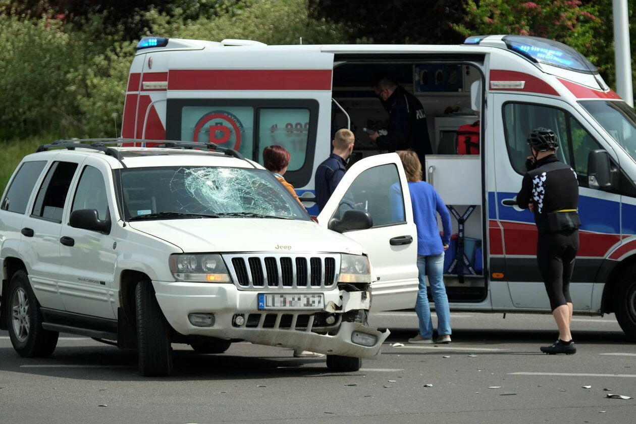 Potrącenie rowerzysty na skrzyżowaniu ulic Węgrarza i Walecznych