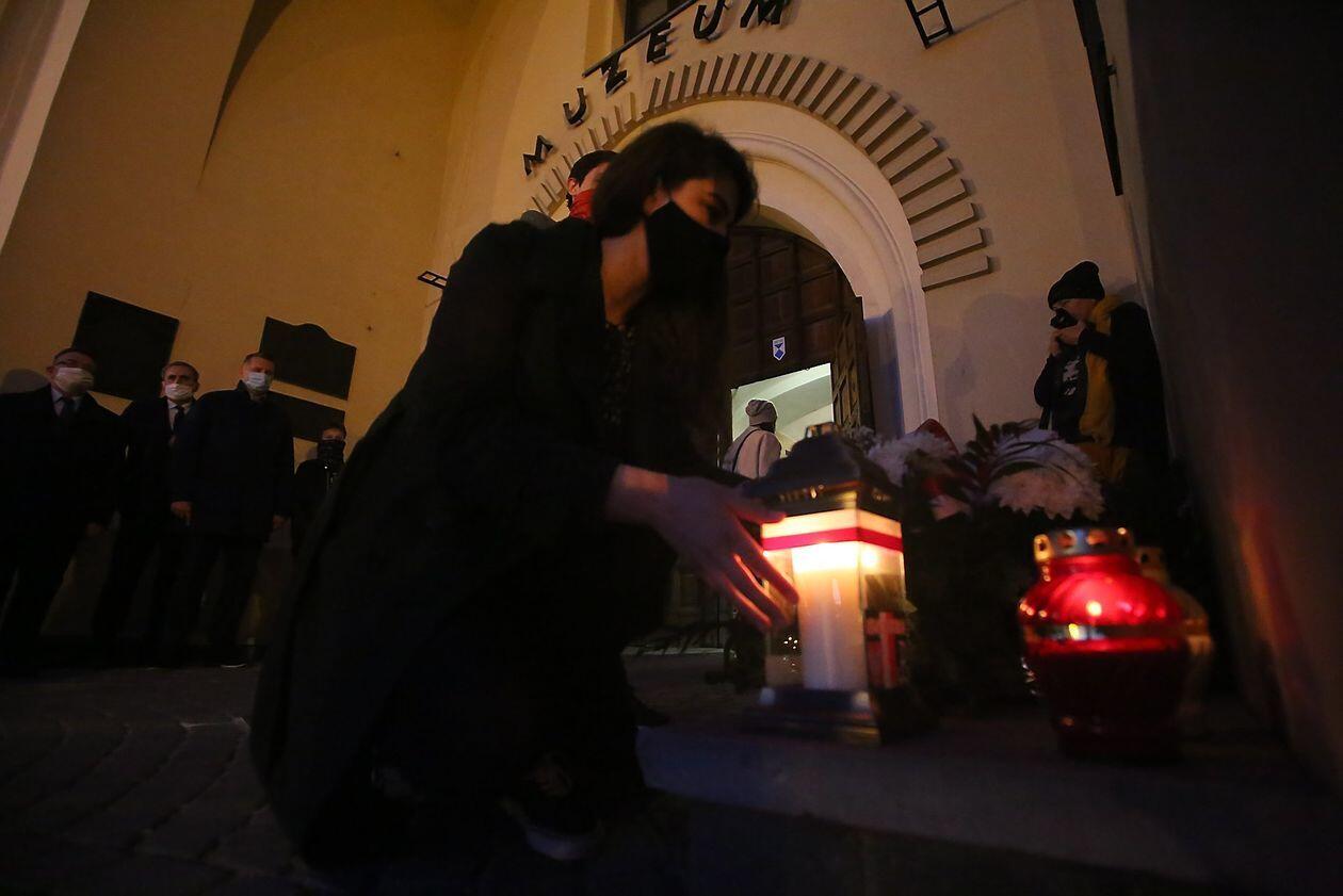 PILECKI - napis z biało-czerwonych zniczy na dziedzińcu Zamk...