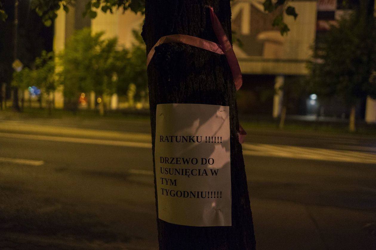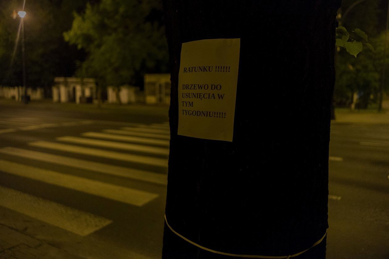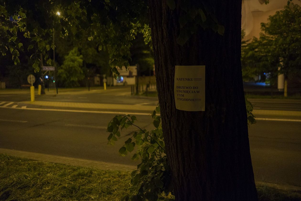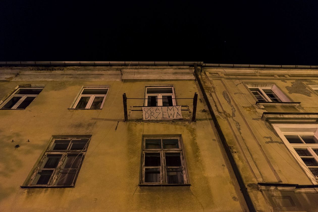 Transparenty w oknach, kartki na drzewach. Przeciwko wycince