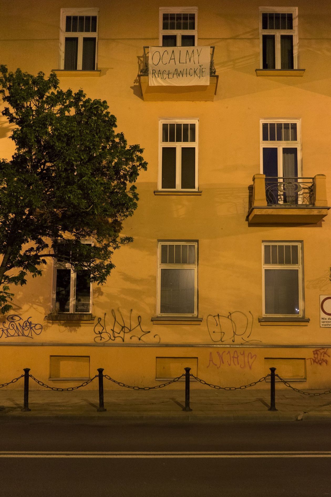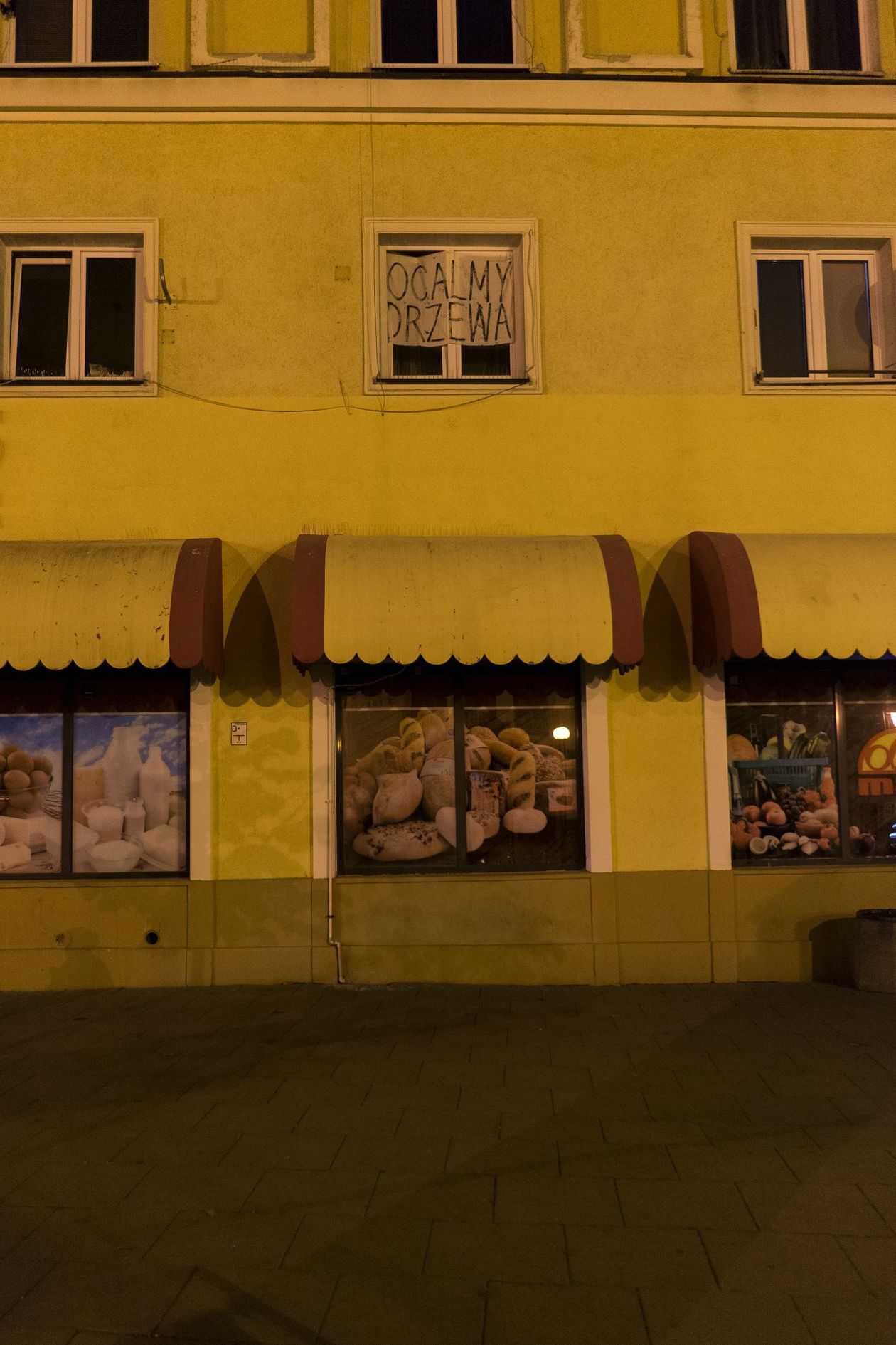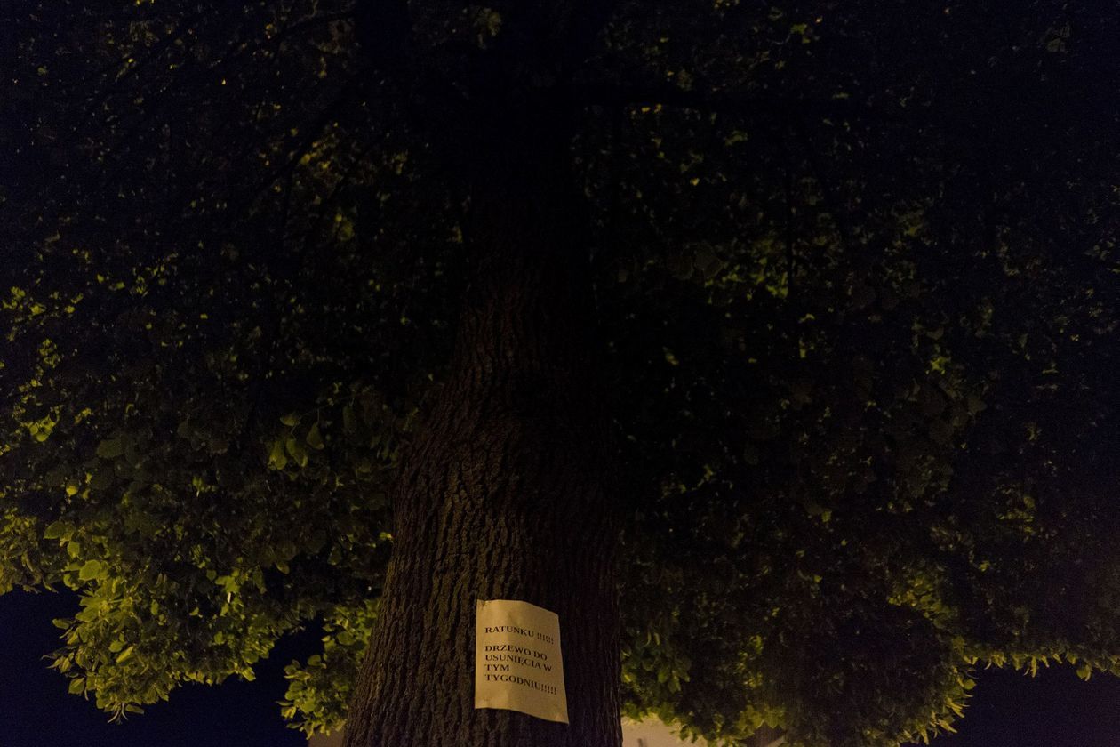 Transparenty w oknach, kartki na drzewach. Przeciwko wycince
