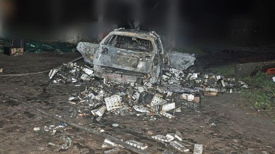 Auto przemytników w płomieniach
