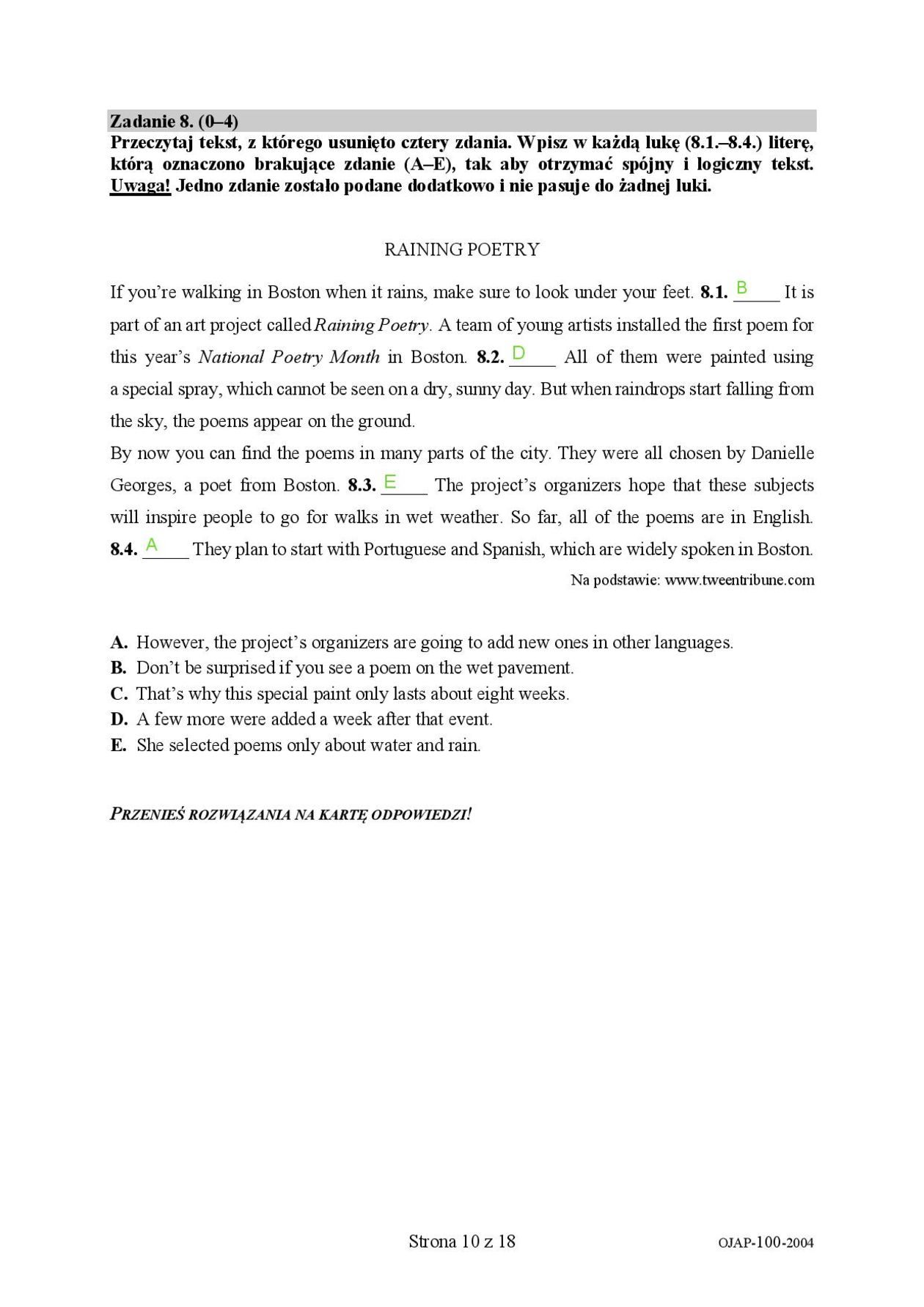 Egzamin ósmoklasisty z języka angielskiego. Rozwiązania
