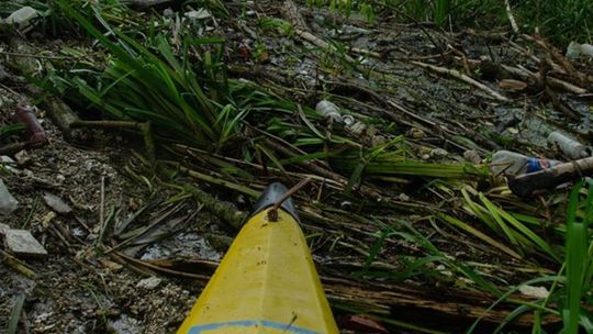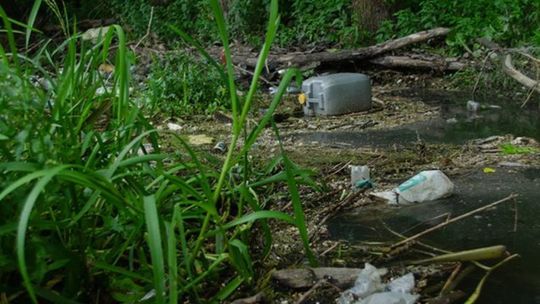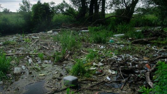 Zaśmiecona Bystrzyca na wysokości miejscowości Długie w gmin...
