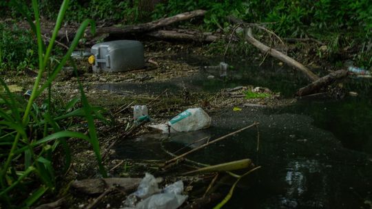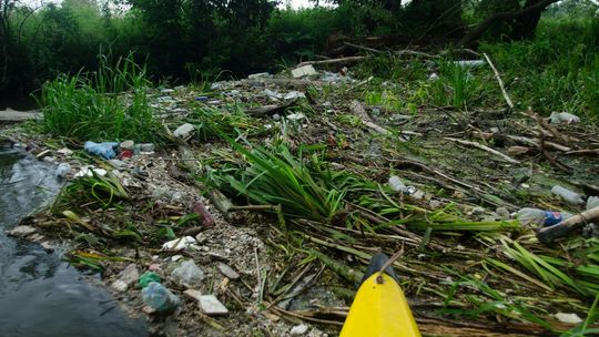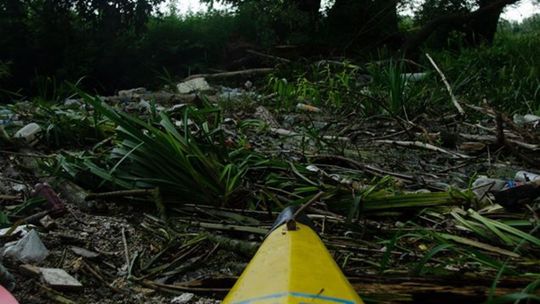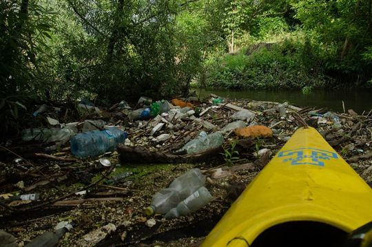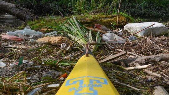 Zaśmiecona Bystrzyca na wysokości miejscowości Długie w gminie Wólka