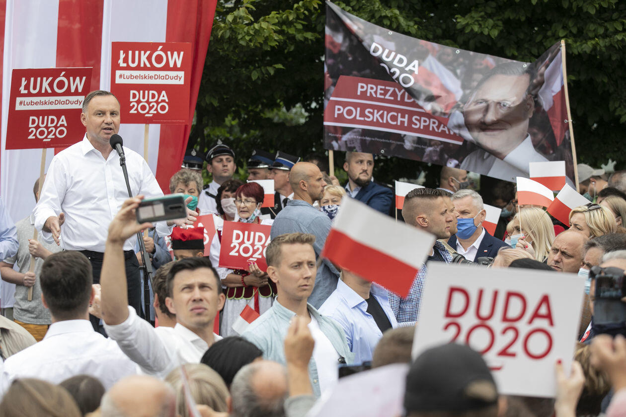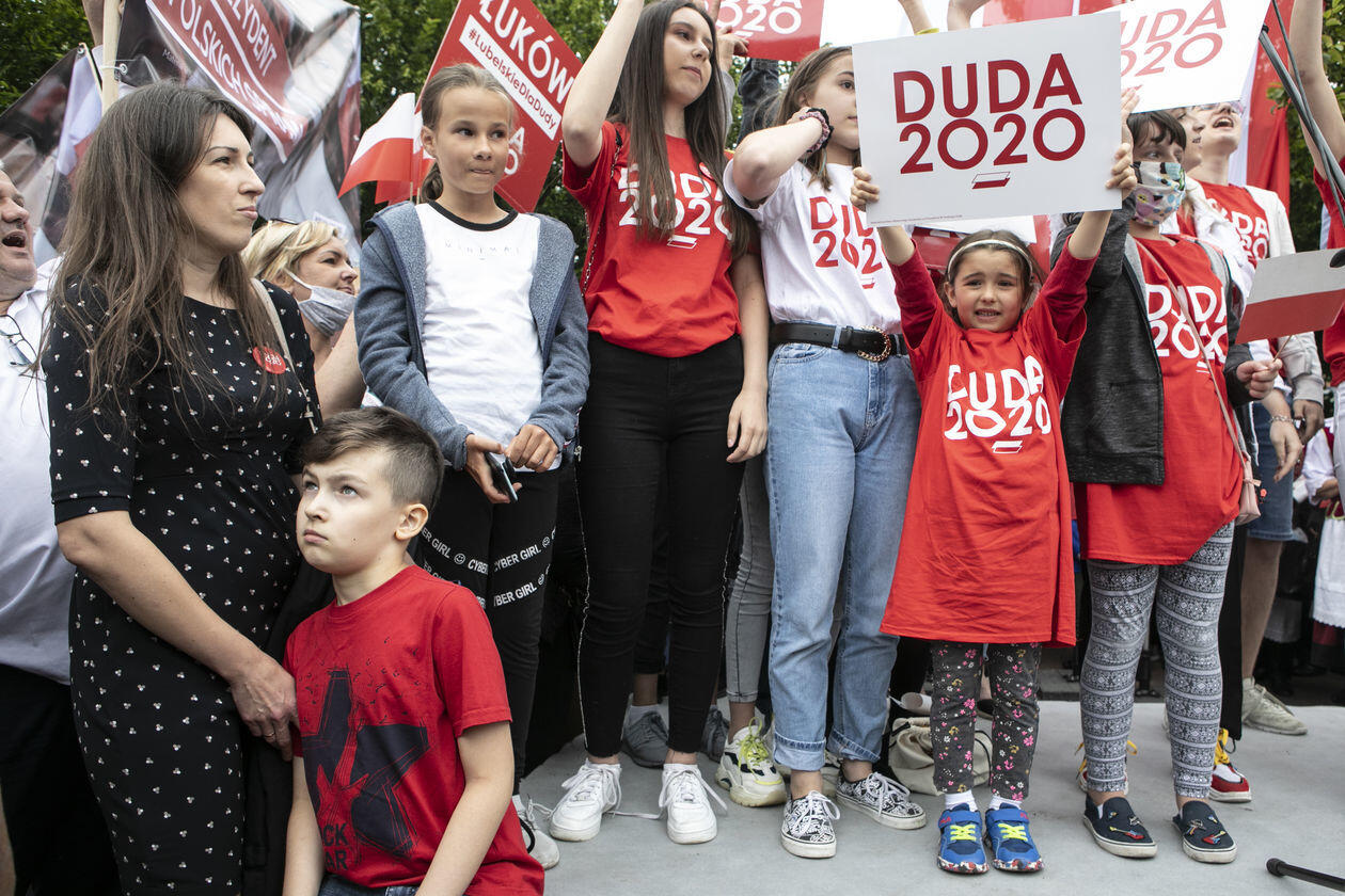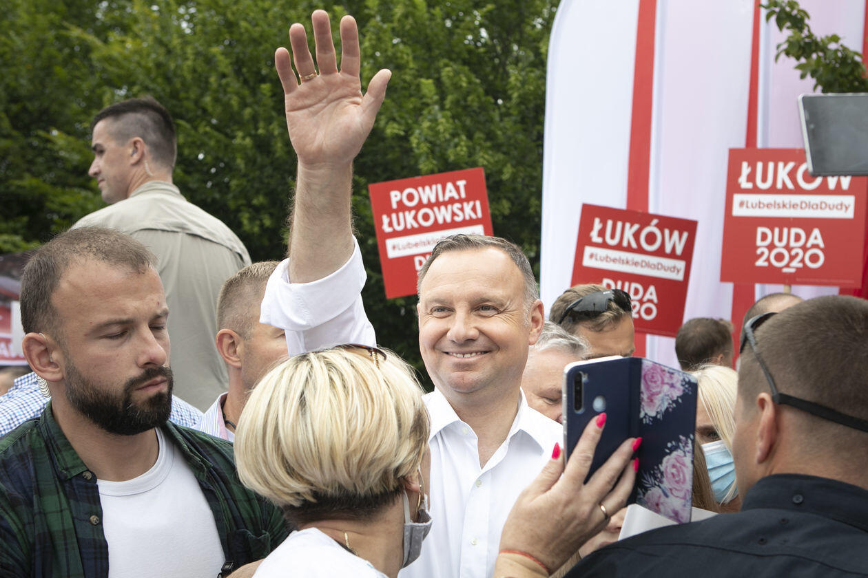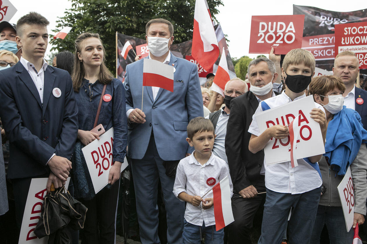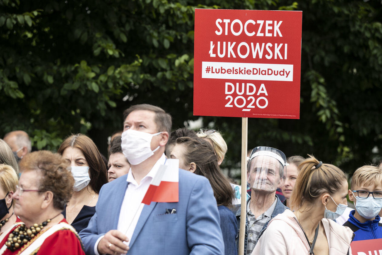 Andrzej Duda w Łukowie. Na wiec prezydenta przyszli też jego...