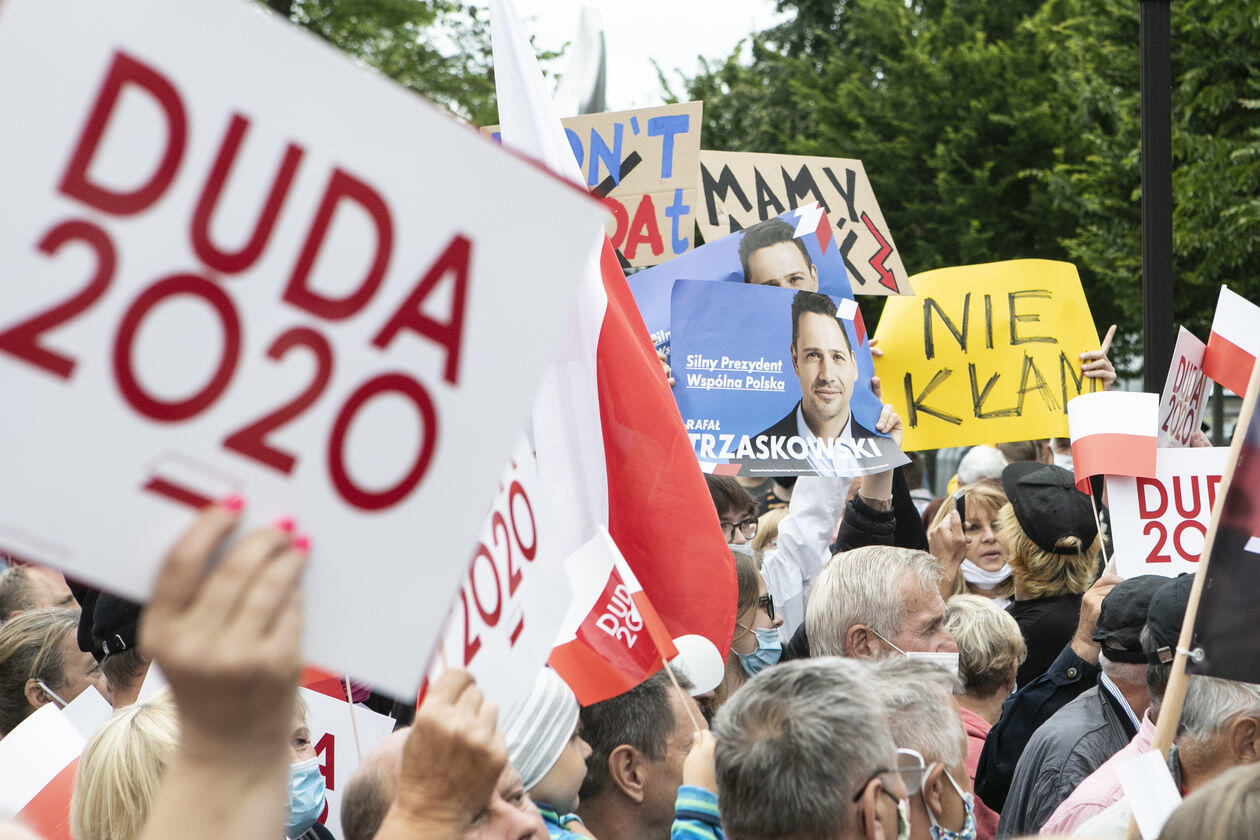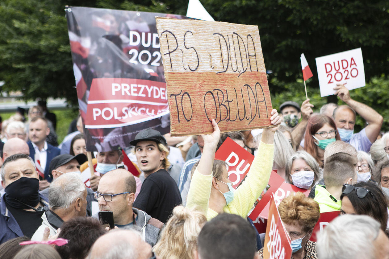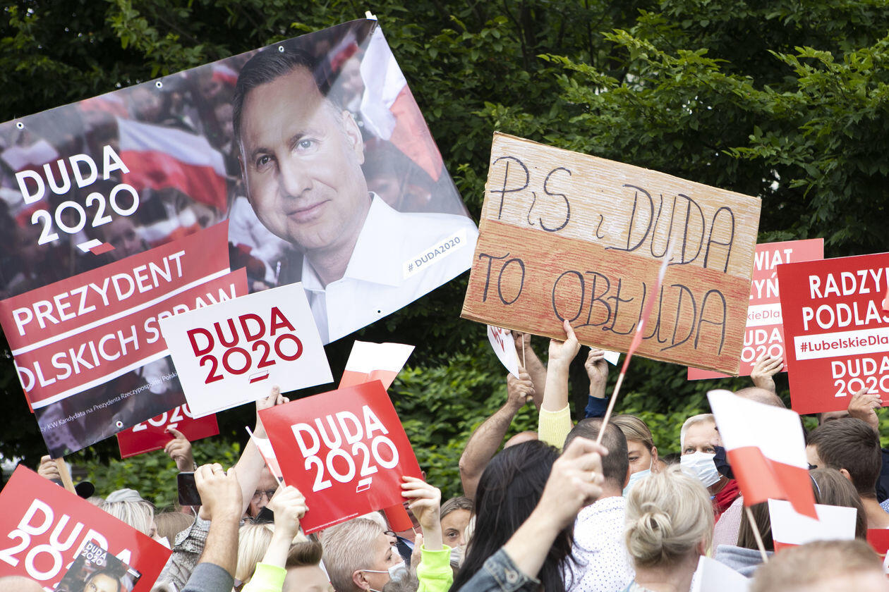 Andrzej Duda w Łukowie. Na wiec prezydenta przyszli też jego przeciwnicy