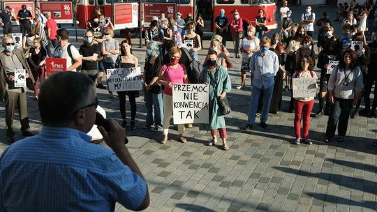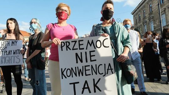 Protest kobiet przeciwko wypowiedzeniu przez Polskę Konwencji Antyprzemocowej