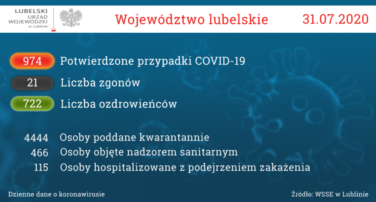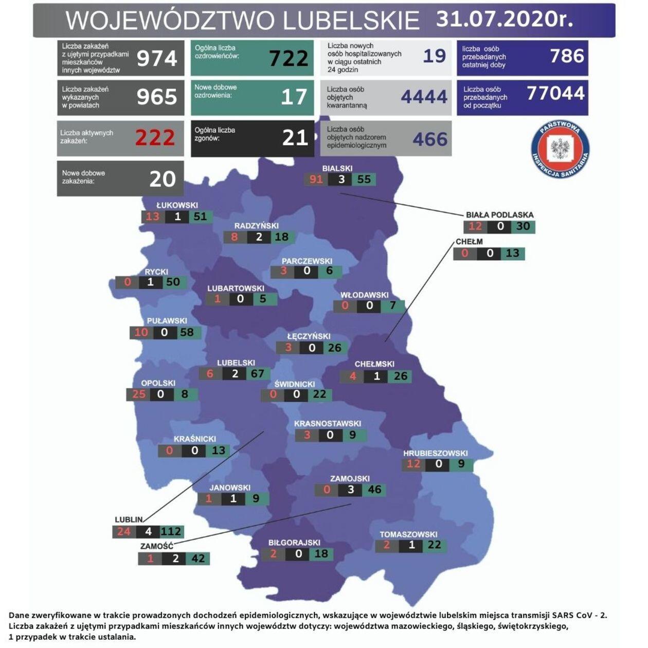 Koronawirus w województwie lubelskim. Stan na 31 lipca 2020 r.
