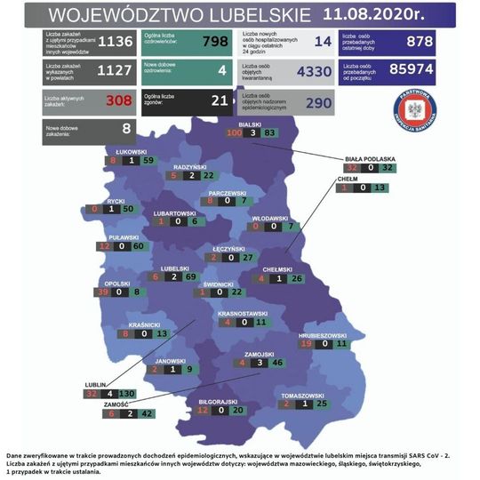Aktualna sytuacja epidemiologiczna w woj. lubelskim. Stan na 11 sierpnia