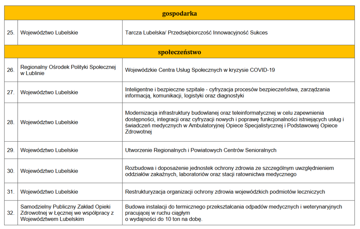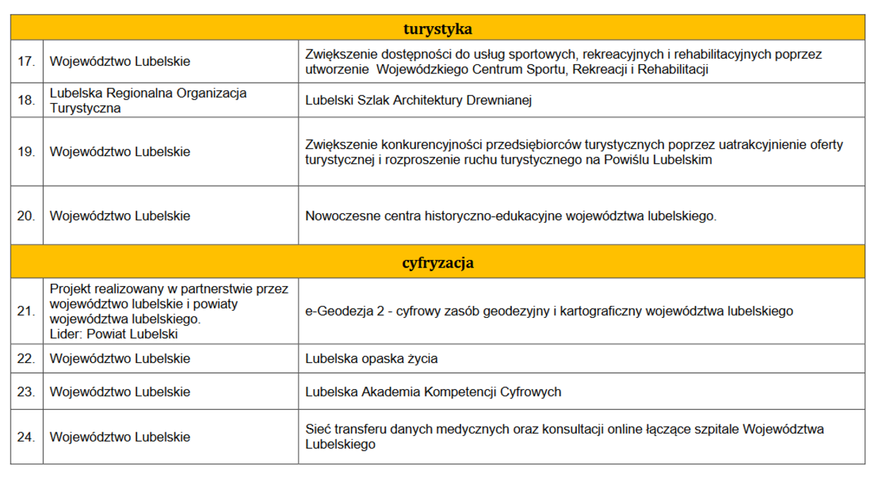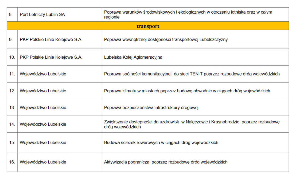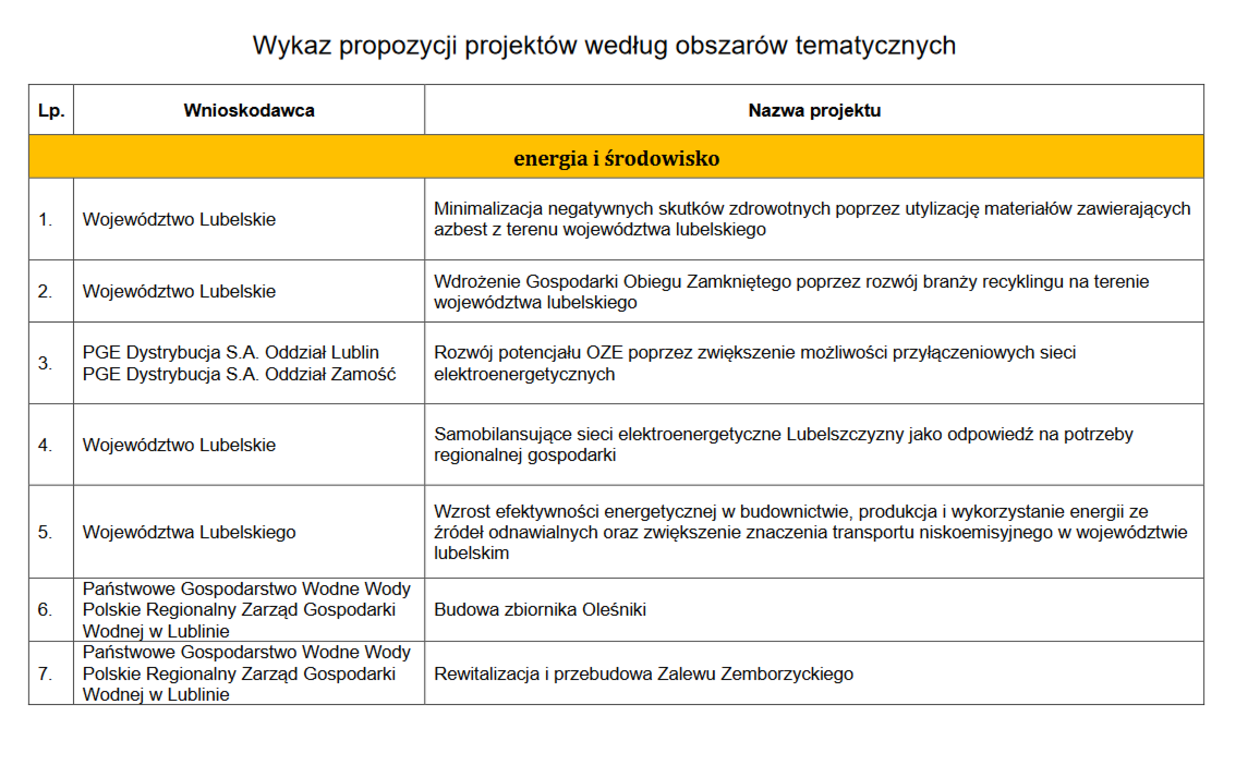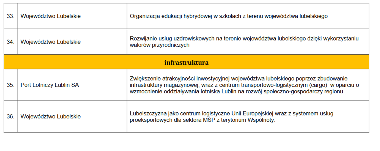Propozycje województwa lubelskiego
