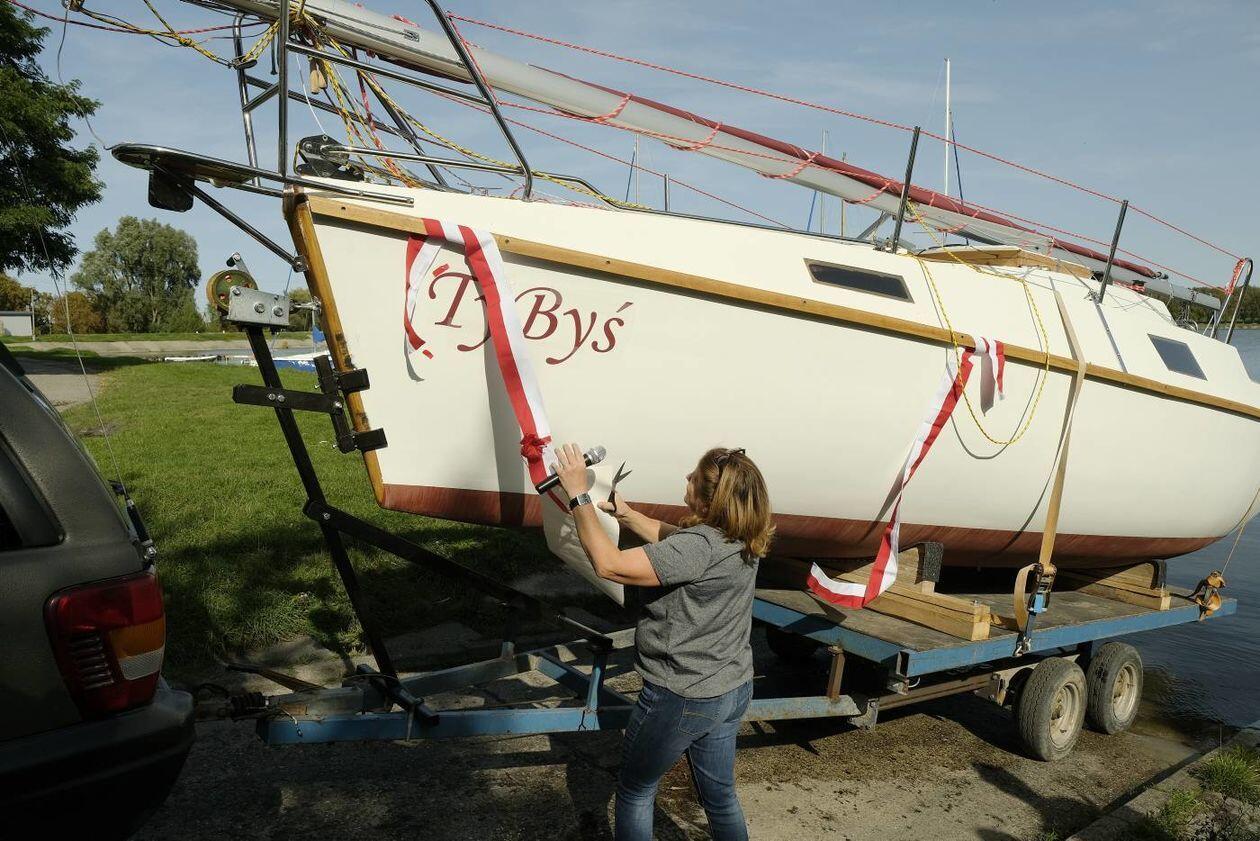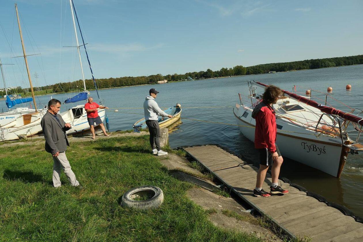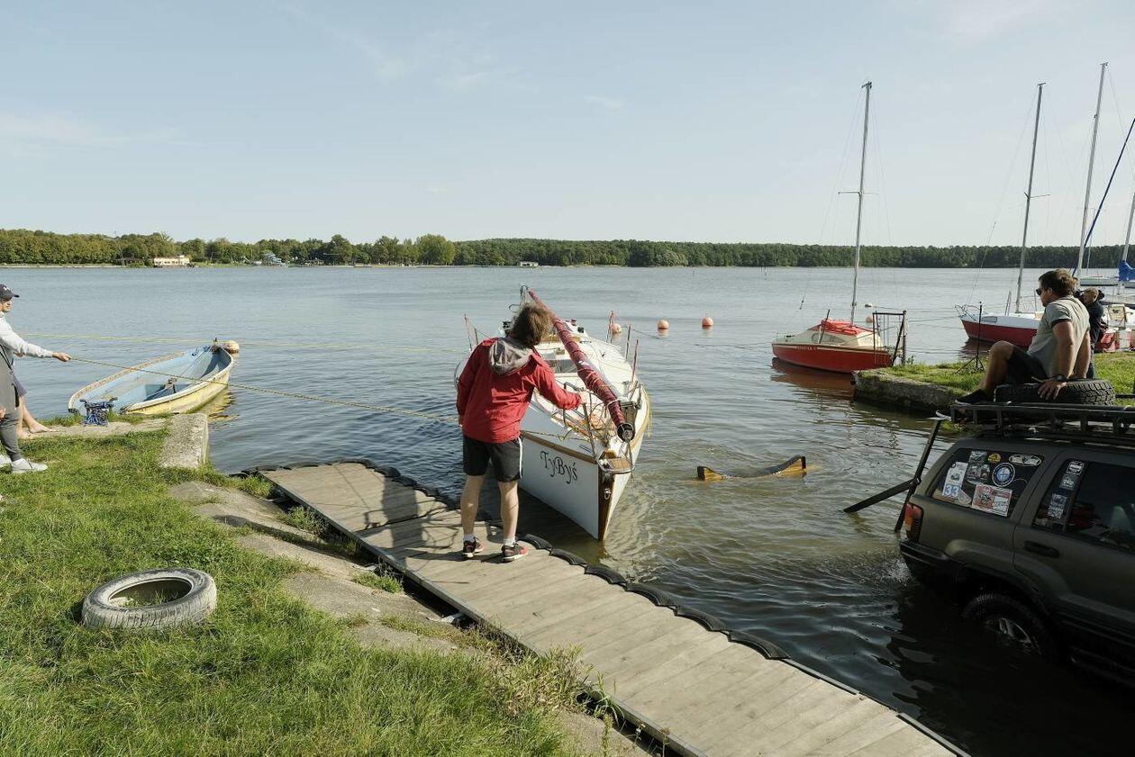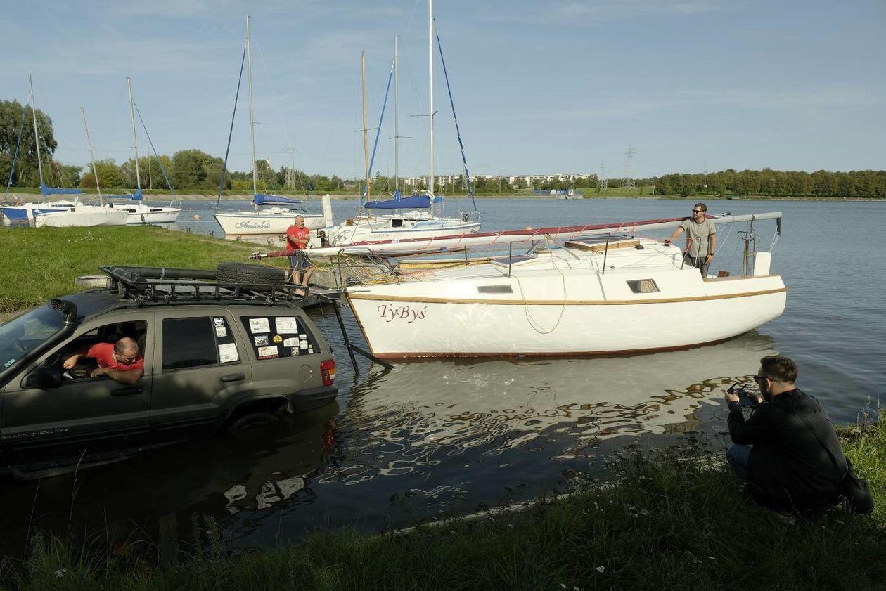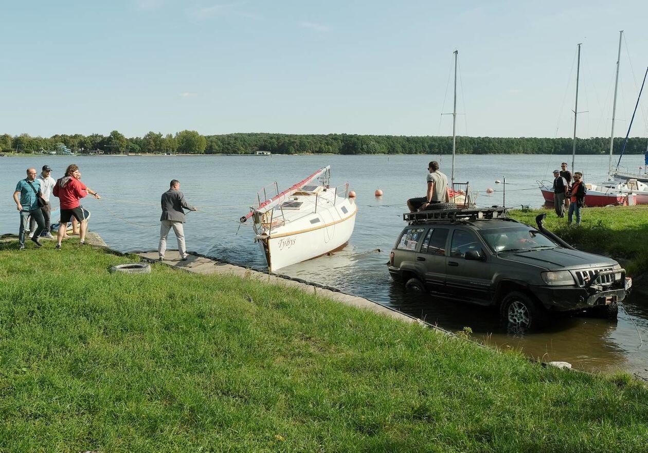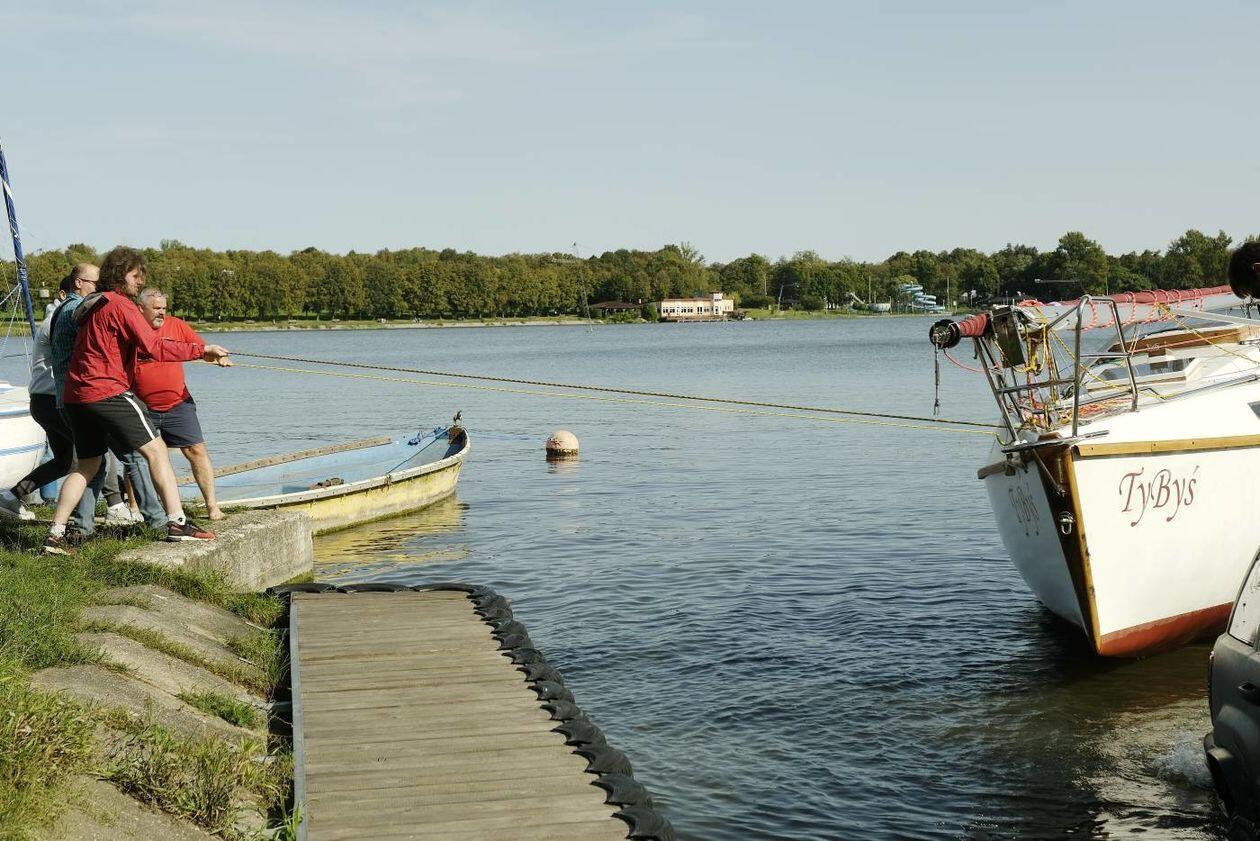 Wodowanie jachtu TyByś na Zalewie Zemborzyckim