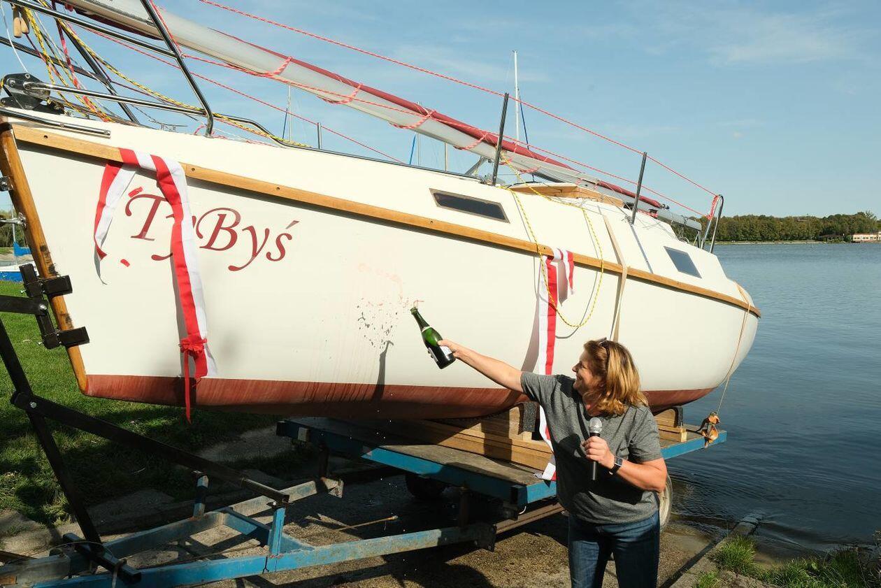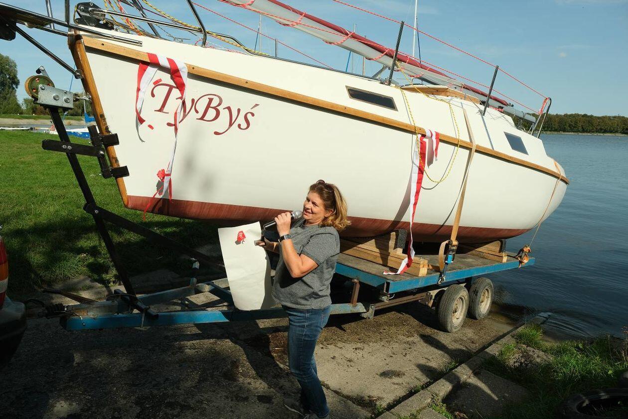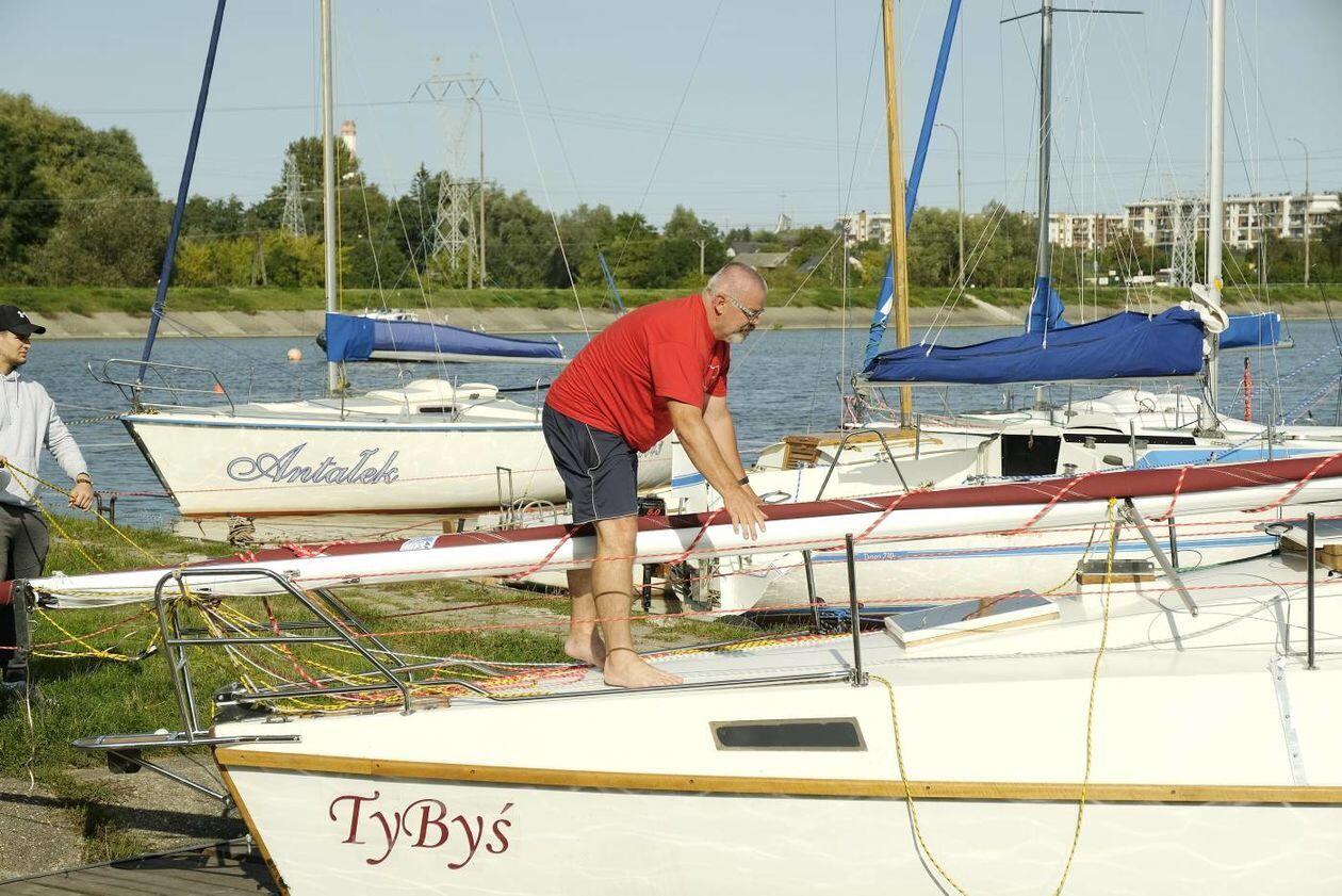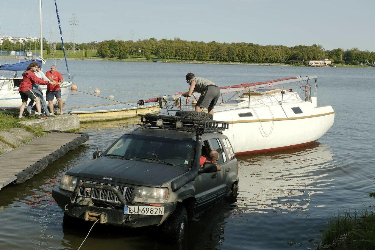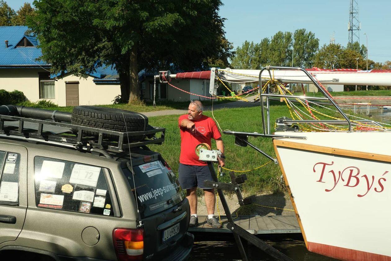 Wodowanie jachtu TyByś na Zalewie Zemborzyckim