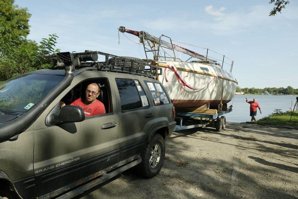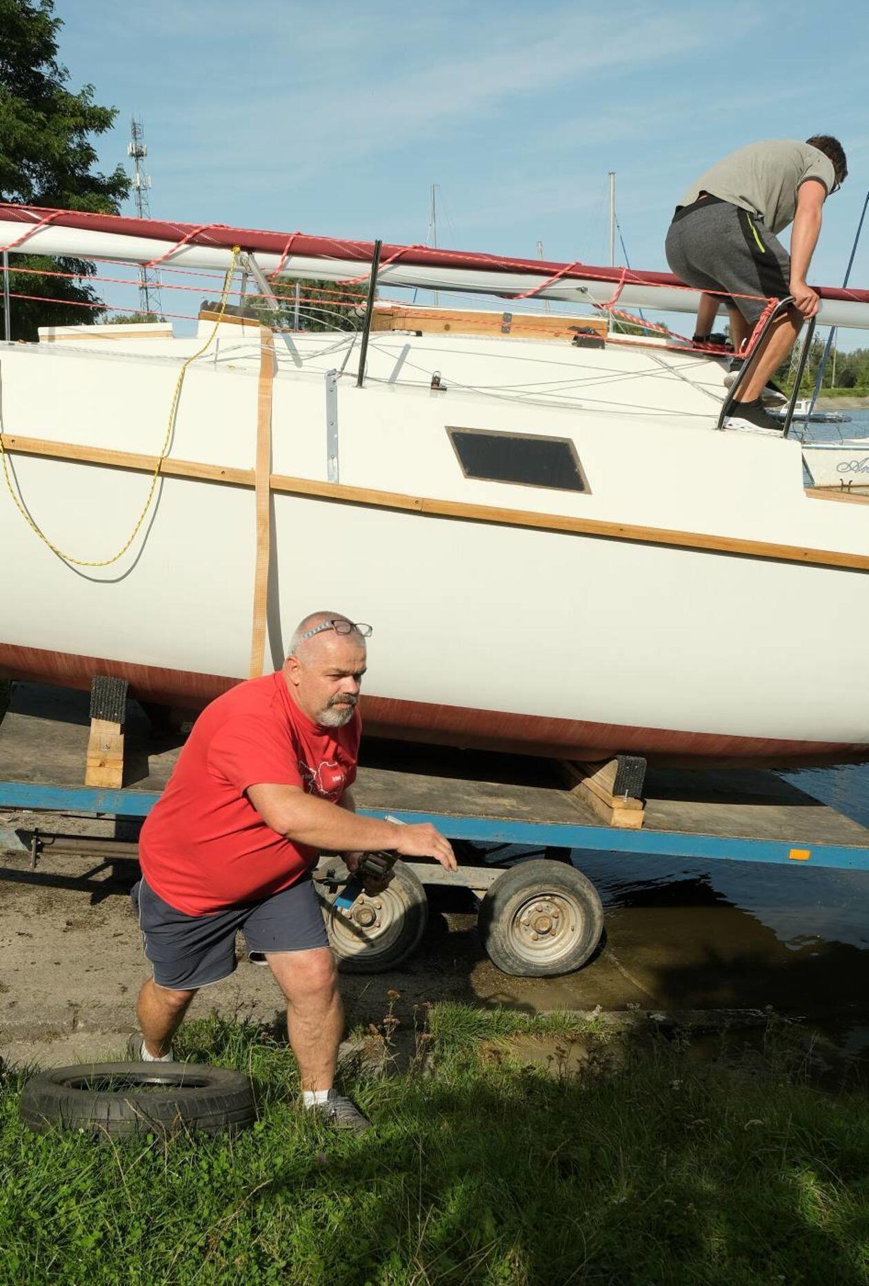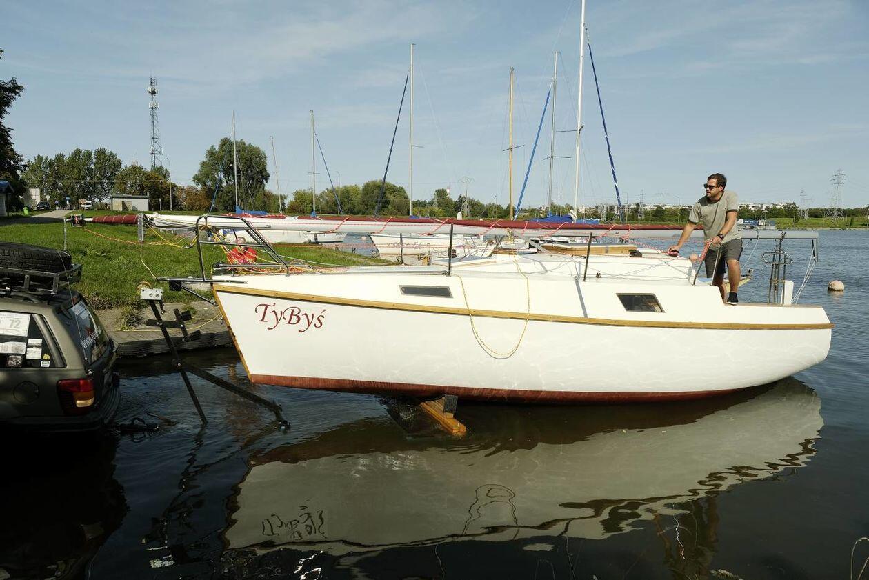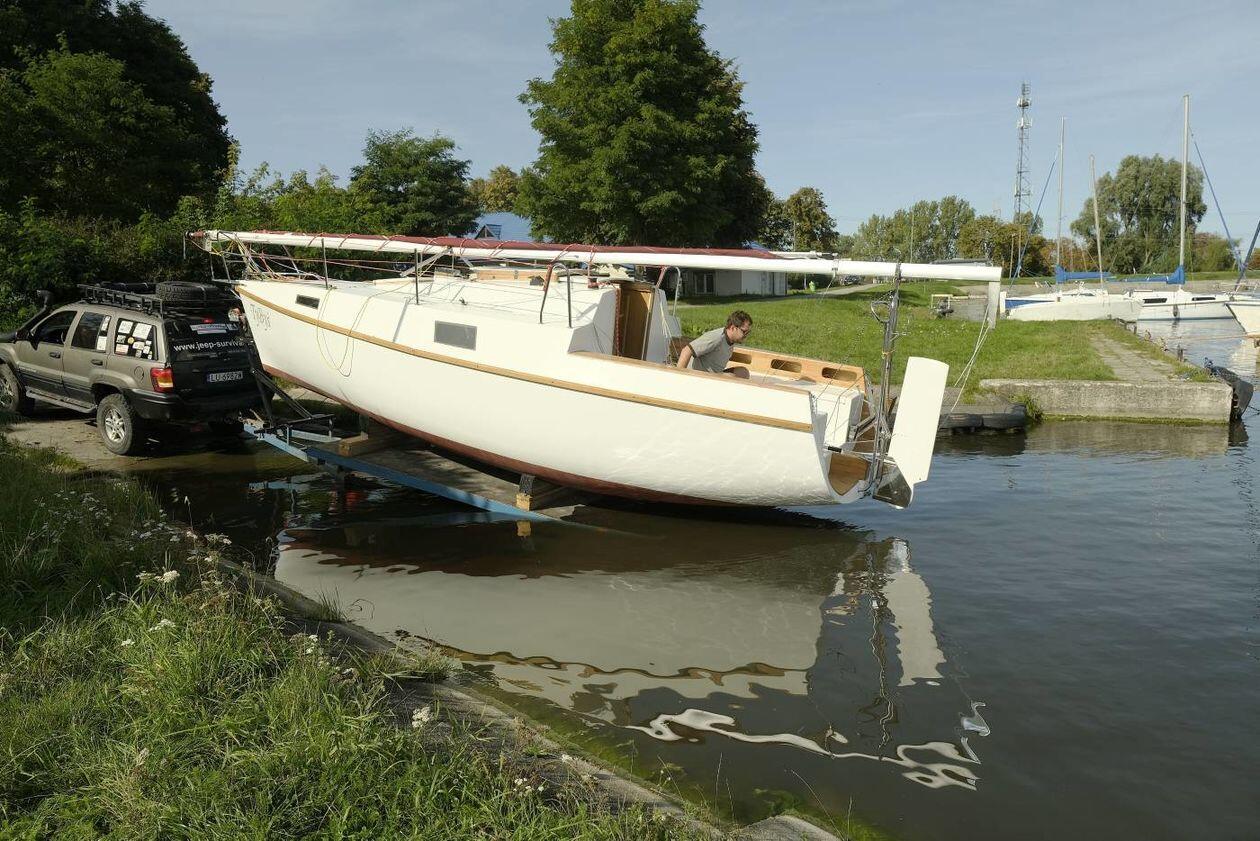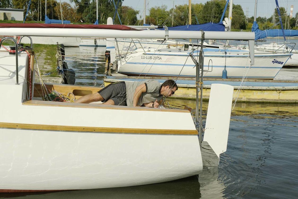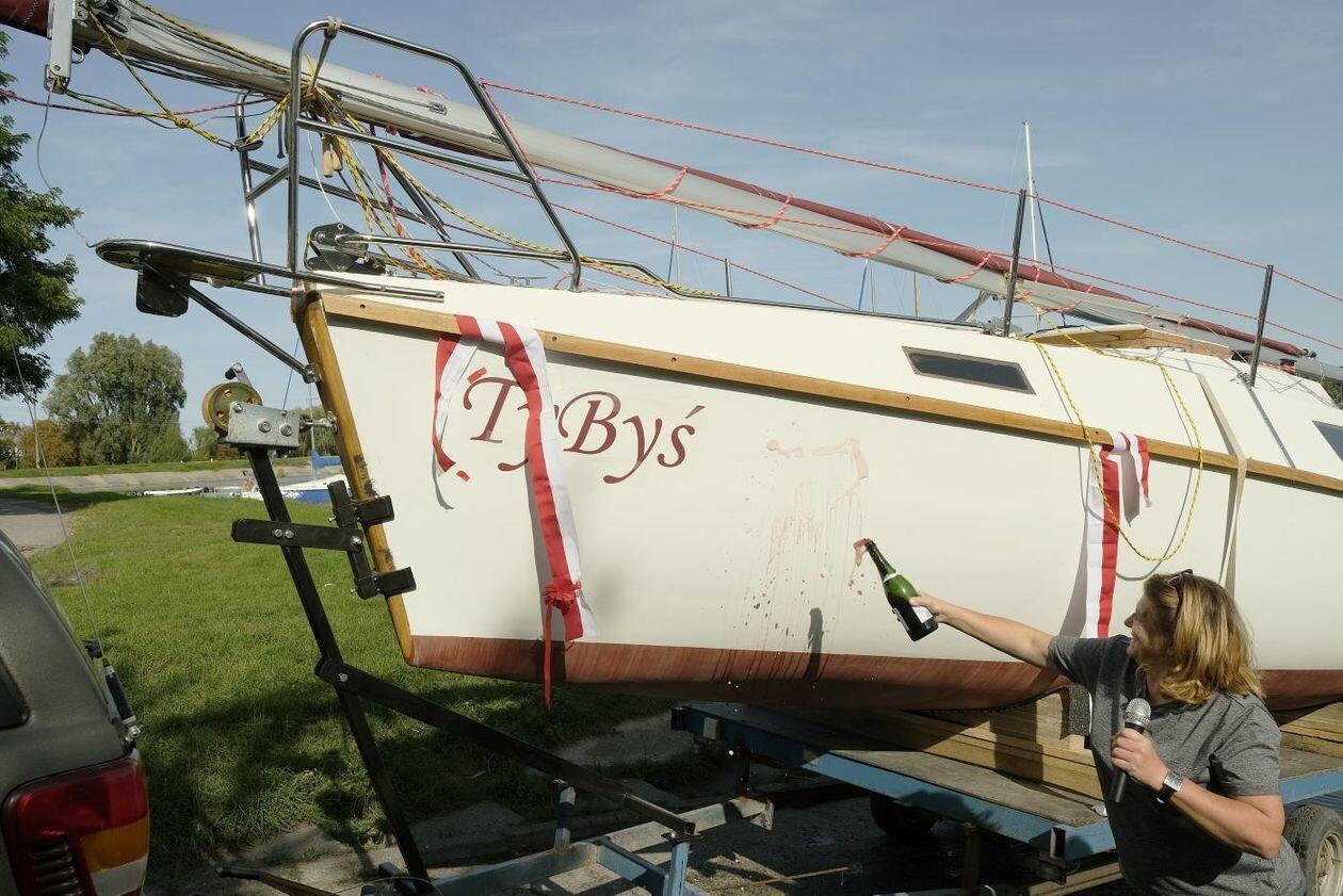 Wodowanie jachtu TyByś na Zalewie Zemborzyckim
