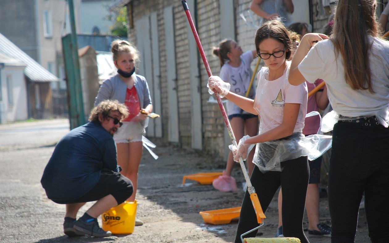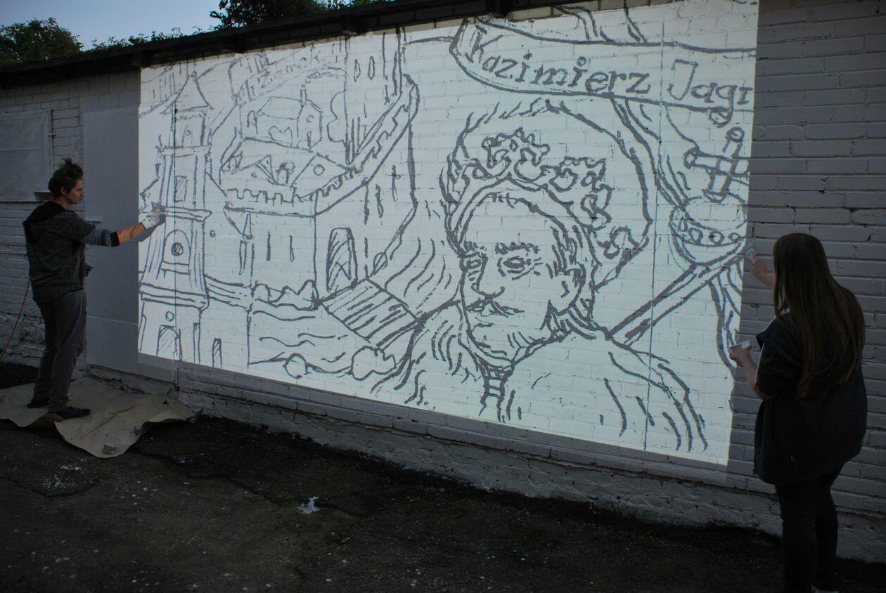 Prace przy muralu w Bełżycach